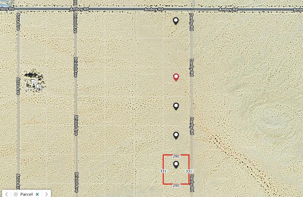 DANBY ROAD, 29 PALMS $14,000.00 - This 2.1 acre parcel is available in the desirable Wonder Valley area of Twentynine Palms. Dimensions 331 X 290 = 95832 sq. ft. The property is ideally located near amenities such as the Wonder Valley Community Center Park with restroom and off roading areas. This level land is ready for construction. Electricity runs along the street. No water. This is the 4th lot south of Amboy Rd so very near a paved road. Also available are two 2.2 acre parcels adjacent the 2nd & 3rd lots south of Amboy Rd. Owner Will Carry Loan with 20% down $2,800.00 a 1st Trust Deed of $11,200.00 @ 7% interest amortized over 5 years payable $221.77 monthly + $15.00 monthly loan service fee. DIRECTIONS: From Downtown 29 Palms go east on Amboy Road about 8 miles to where Community Center Park is go just past it to right on Danby Road. APN0625-372-04-0000.