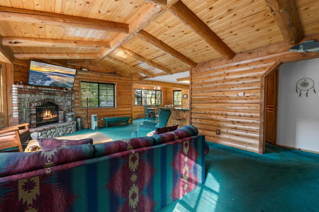 Great price on this woodsy log style mountain cabin. Great layout with a wide open great room. Highwood ceilings with log beams. Floor to ceiling rock fireplace. Wide open kitchen with ample cabinets and counter space. Three bedrooms and two bathrooms. Nice front deck with log railings and a big private back deck. Big lot with lots of trees. Close to Bear Mountain Ski Resort and the national forest. Only a short distance to the lake and the village. Currently a licensed short term rental. Don't miss out on this opportunity.