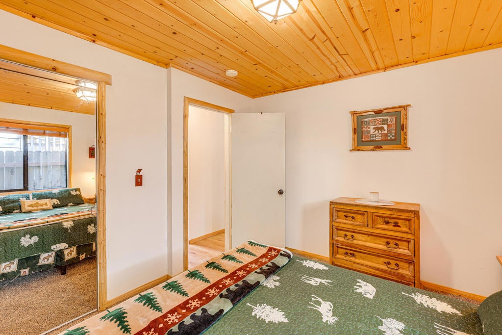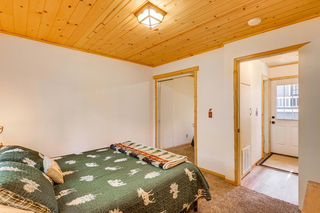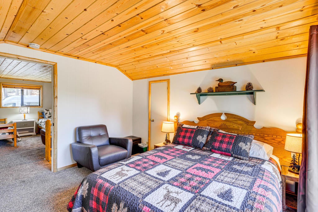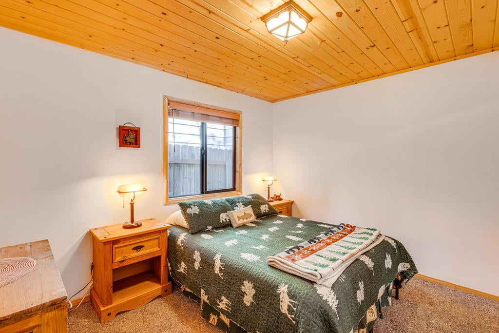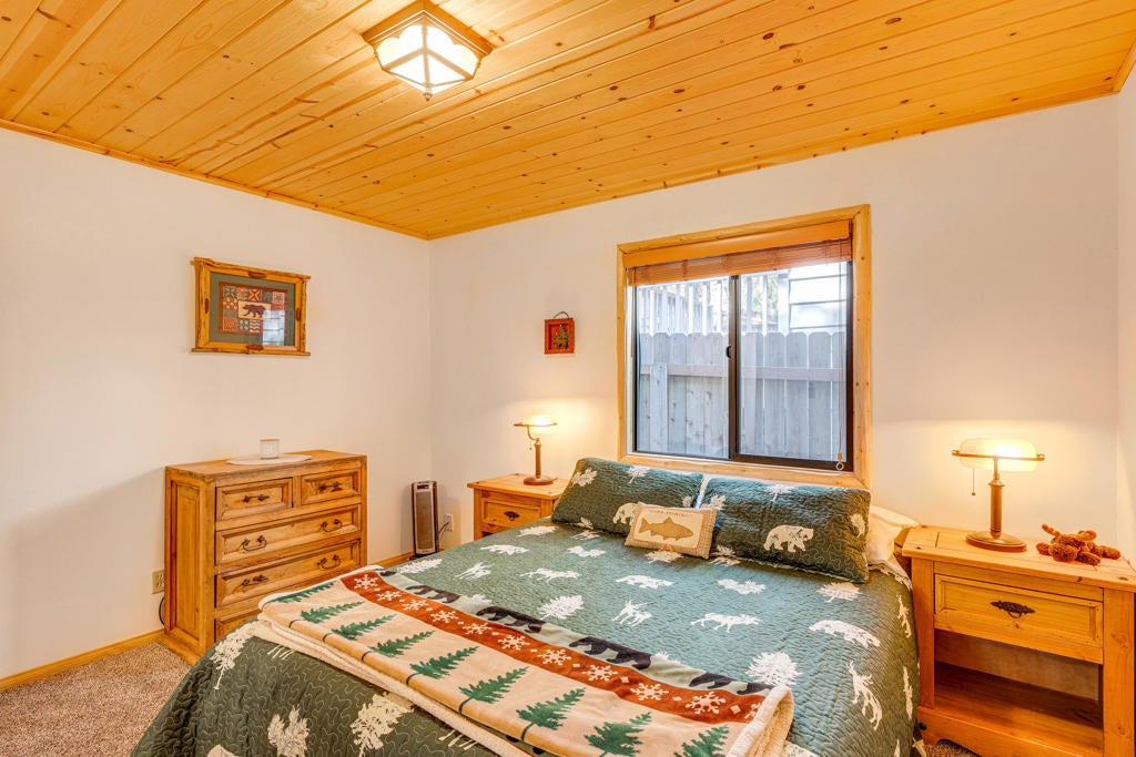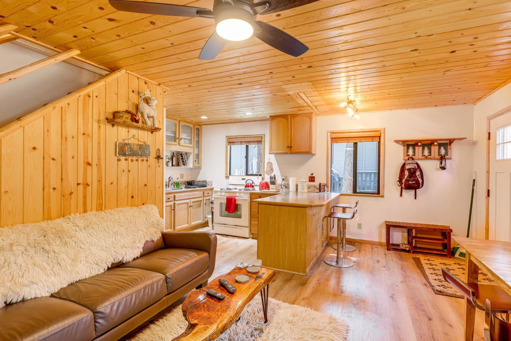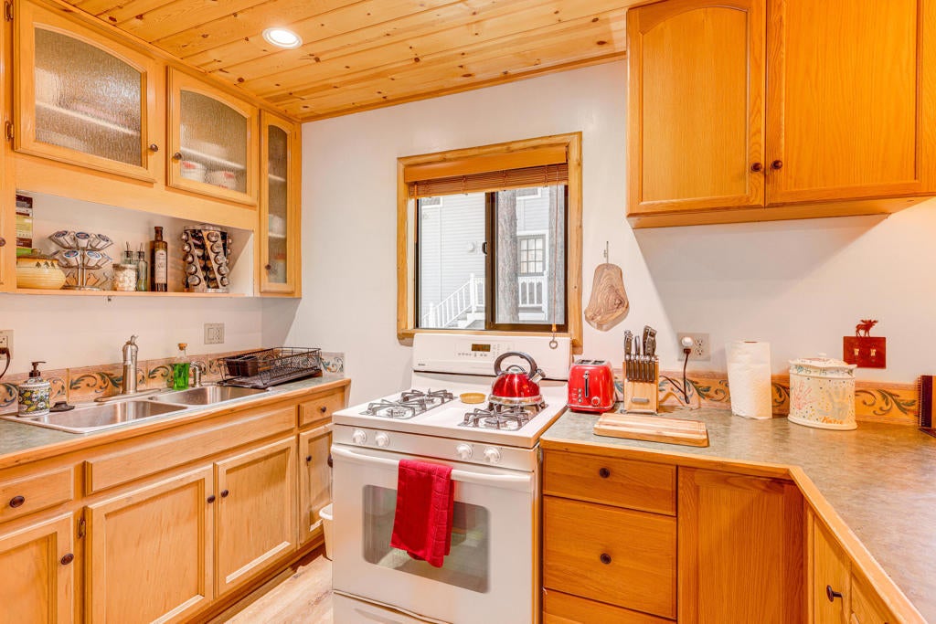 Such a sweet mountain setting! This beautiful log sided, remodeled, turn-key, gambrel offers 3 bedrooms and 1 bath and is situated among the trees in a great location of Big Bear City, just minutes from the lake, ski slopes, and shopping! Fantastic open floorplan with lots of log trim and that cozy mountain feel! The living room offers T&G ceilings and a beautiful wood burning stove to cozy up to on those chilly mountain evenings. The kitchen is open to the living room, great for entertaining, and offers new stainless-steel appliances! One bedroom is located on the main level next to a beautifully remodeled bathroom, and upstairs you will find another bedroom with a slider leading to a large deck, and a third loft style bedroom. Relax and enjoy the fresh air, sunshine, and peace on your expansive decking in the side yard under strung lights in the trees. Large lot allows for lots of room for activities and fun! Plenty of parking with two parking pads. Would be a great escape, rental, or full-time home! Comes fully furnished down to the linens! Just bring your toothbrush! Come enjoy all that beautiful Big Bear has to offer!
