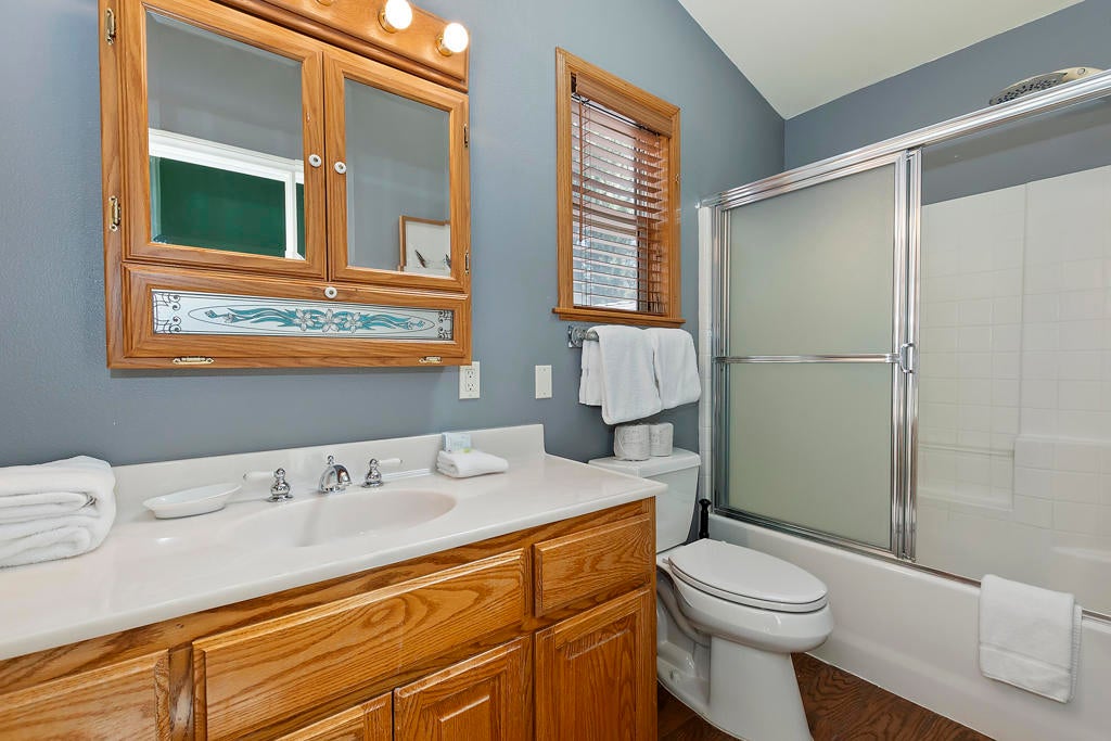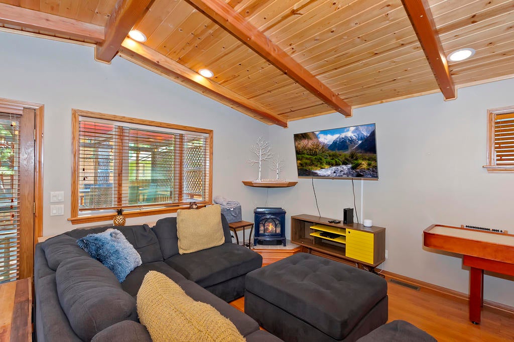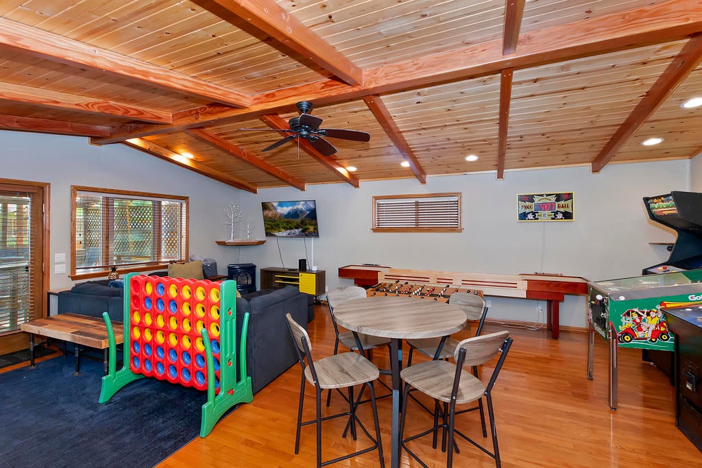 A Centrally Located Big Bear Property In Eagle Point That Offers So Much. 4 Large Bedrooms; 2 Are Downstairs With 2 Baths And Upstairs Are 2 More With 2 Full Baths (One Is Ensuite In The Bunk Bed Room). The Open Floor Plan Includes A Living Room With Fireplace, Updated Kitchen, Dining Area And Big Game Room, Also With Fireplace And Plenty Of Room For Games, Watching Movies And Has Direct Access To Back Deck With Hot Tub, Entertainment Area And A Separate Creative Shed. Separate Laundry Room With Folding Area, Sink, Ironing Board And More Cabinets, Wood Floors, Updated Windows, Newer Appliances, Skylights, Direct Access Garage And Big Closets With Plenty Of Storage. Fenced Backyard And Unbelievable Location For The Lake, Parks, Big Bear Lake Village, Slopes, Golf Course, Etc. The Front And Back Yards Are Low Maintenance And Ready For Summer Fun.