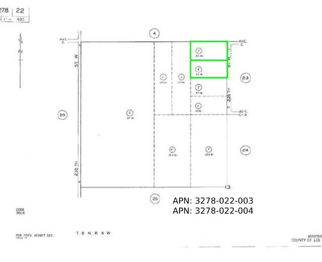 2 legal 5 acre lots totalling 10 acres with power and road frontage. Zoned Rural Agriculture. County may allow for two houses on each lot with guest houses. zoning is LCA12. LC means Los Angeles County, The ''2'' means 2 acre minimum lot size. and the ''A1'' means the following 22.24.070, light agriculture rules presents opportunities for a variety of commercial uses too. County rules may offer many uses such as animal shelters, breeding farms, cattle, horses, hogs. Potential for film sets, theatre, festivals, motion picture studios. Cabins, hotel, motels. Electrical producing facilities such as wind, solar, and other energy production. Private setting. Just 3 minutes to The Neenach Market and Cafe. 32 Minutes to Lancaster. 50 minutes to Santa Clarita. 1 hour to Bakersfield. 80 minutes to Los Angeles. For all questions on building and use buyers must contact the county planners. For all questions on utilities buyers must contact the utilities agencies. No water so go with a well. APNS: 3278-022-004 & 3278-022-003 Maps don't show address use GPS: 34.788913, -118.529777