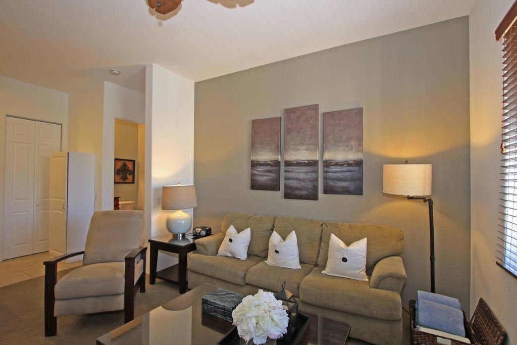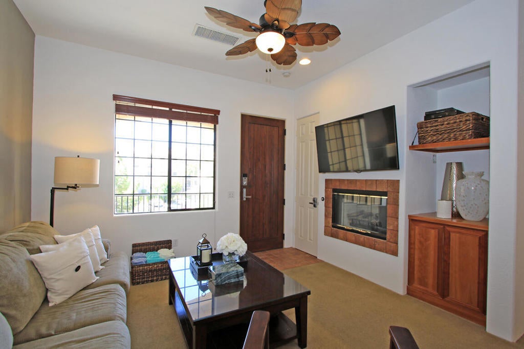 Now Available. Long-Term Lease at $1950/MonthWelcome to Casitas Las Rosas in the heart of La Quinta! This luxury top-floor 1BD/1BA villa is turnkey furnished and ideally located next to Embassy Suites and just steps from the shops, restaurants, and charm of Old Town La Quinta.Enjoy a spacious, open layout with a comfortable family room featuring a sleeper sofa, TV, and ample space to unwind. The fully equipped kitchen makes dining in a breeze--perfect for everything from quick bites to cozy dinners.The primary suite boasts a king bed, walk-in closet, and easy access to the full bathroom with a tub/shower combo. A private balcony with outdoor seating offers south-facing sunshine--perfect for morning coffee or evening relaxation.Additional features include in-unit laundry with oversized stackable washer/dryer, and access to community pools and spas.No smoking, no pets.