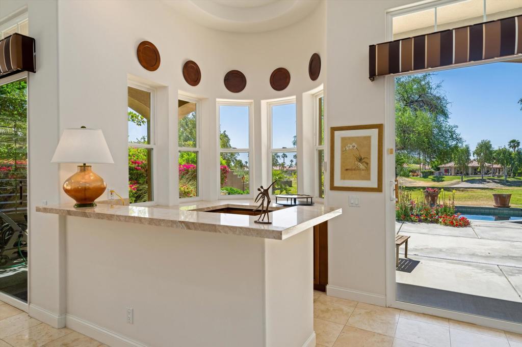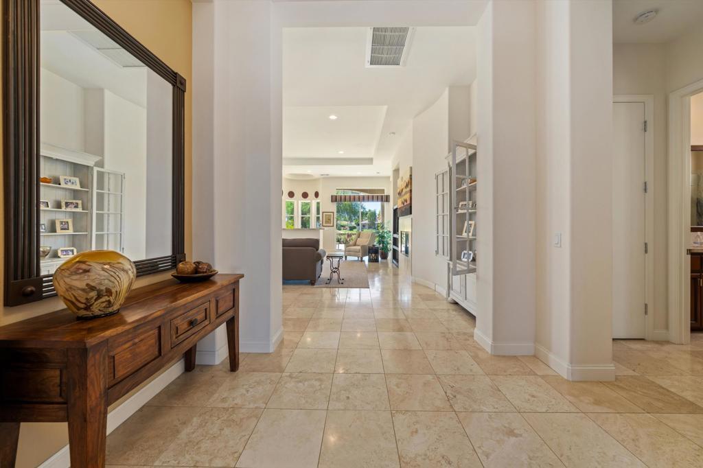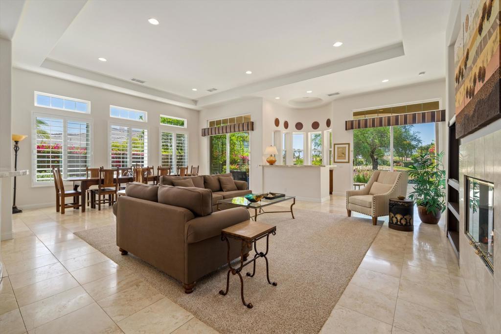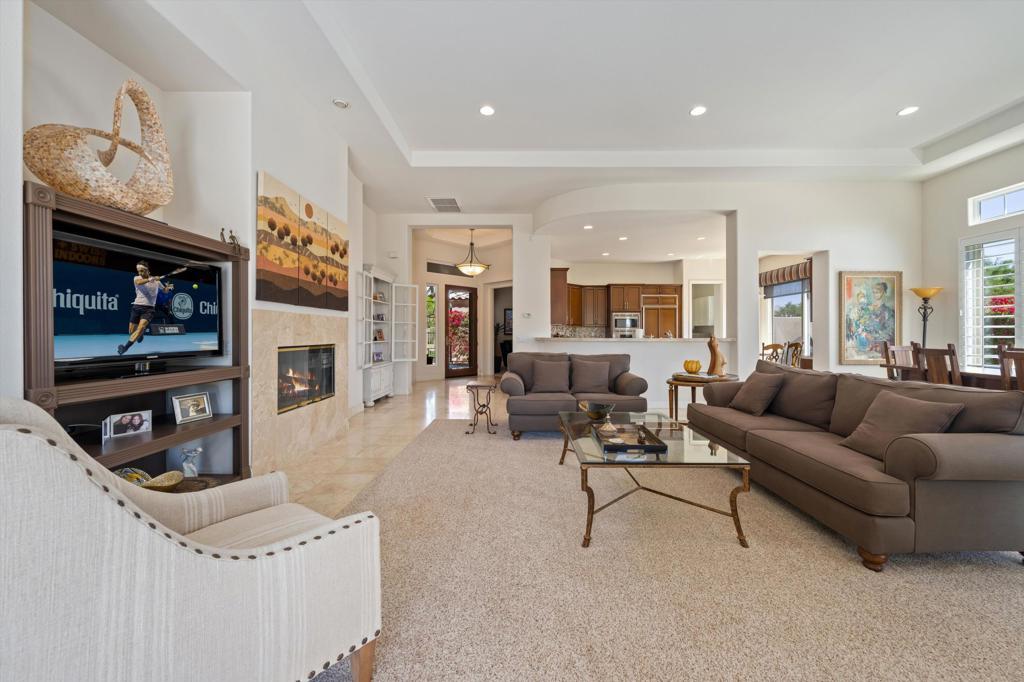 Welcome to Mira Vista located in the city of Rancho Mirage. Our beautiful Escondido plan offers 2 bedrooms, 2 baths and a den, golf course and mountain views and with privacy for the pool area and back patio. Upon entering, you will love the travertine flooring leading to the large great room with 12' ceilings and a fireplace, with plenty of space for it's gorgeous dinning room table. The open concept kitchen offers top of the line appliances, granite counter tops and a large sitting/serving bar. The primary bedroom shares the great Southern fairway views. Has a large walk-in closet, separate shower and tub. The guest bedroom is large and offers an en suite bathroom. The den/TV room is located at the front of the home and large enough for you and your guests to relax and watch TV. The deep rear yard features a saltwater pool and spa and lots of patio area and privacy. The community offers 2 lighted pickle ball courts and 1 lighted tennis court.Available November 2025 through January 2026 at $5,500.00 Also available for Summer Rental, call listing agent for information. Not available Feb. & Mar. 2026