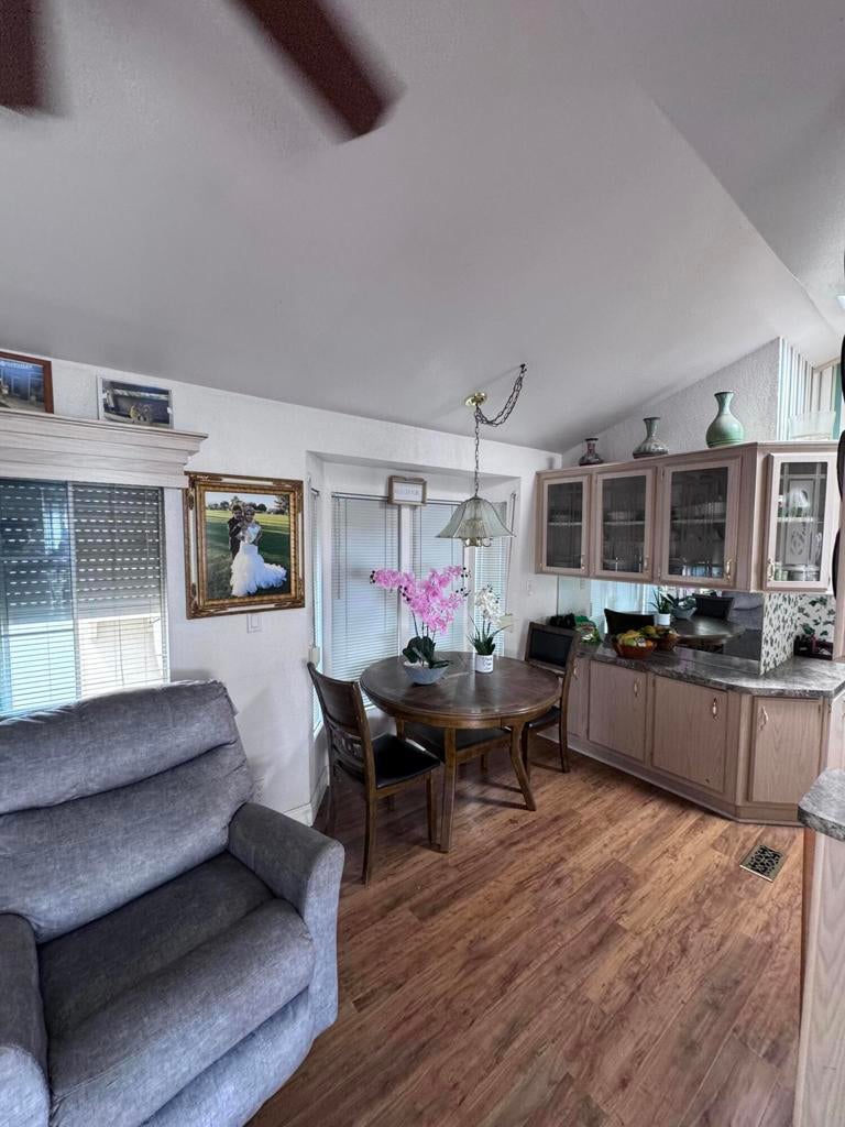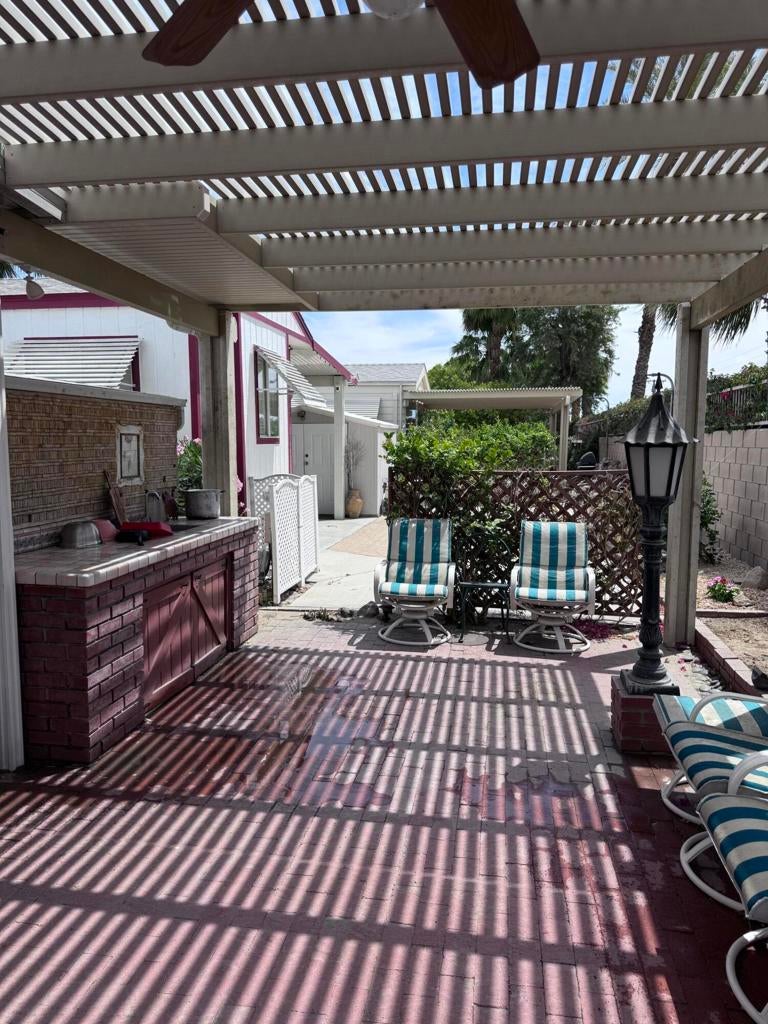 Located in the beautiful Desert Aire resort. Desert Aire is an over 55, pet free, 9 month park. Desert Aire does not permit full time residency. This park is primarily used by snow birds looking to spend the winters in our warmer climate.This 1993 park model is located on the south wall with lots of potential. Just steps from one of the bathrooms / laundry / pool areas. This is a great park model and priced to sell. This park model features high ceilings with an open floor plan and lots of natural light. The kitchen is open and very functional and features a dishwasher. New laminate flooring has been installed throughout the park model for easy maintenance. All of the furniture, bedding and kitchenware is included in the price and is ready to move in.The outside features lots of upgrades with a large storage shed, and huge covered patios. The patios provide lots of privacy and have two large entertaining areas complete with wet bar. You will enjoy entertaining this great space. There is custom red brick skirting around the entire park model.