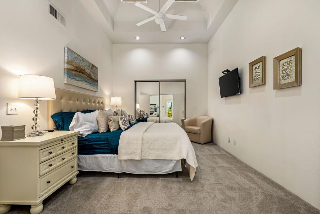Incredible West facing Santa Rosa mountain views from this Champion 9 Plan located in PGA West! The dining room has been converted to a 4th bedroom and has an attached bathroom with private shower! This home overlooks the stunning views of the 8th green of the Private Palmer Course! Entryway leads to the living room with fireplace, sliding doors that bring in the views, and offers a great entertaining space! The kitchen has ample cabinetry with quartz counters, stainless appliances, walk in pantry, all looking over the dining area! The large primary bedroom offers its own private patio, bathroom with walk in shower, soaking tub, water closet, oversized walk in closet, and double vanity! All 3 of the guest bedroom have en-suites for your family & friends to enjoy! There is a separate laundry room that leads to the attached garage. You will have access to several community pool & spas located throughout PGA West! This home is offered furnished!