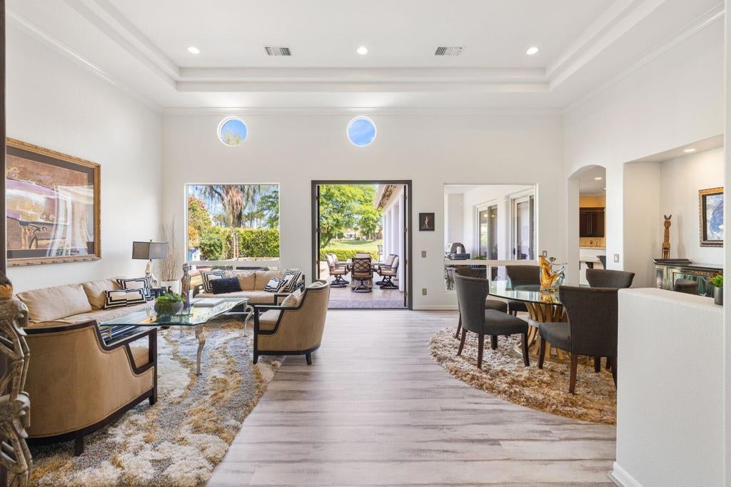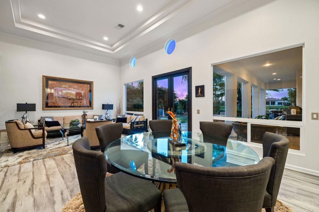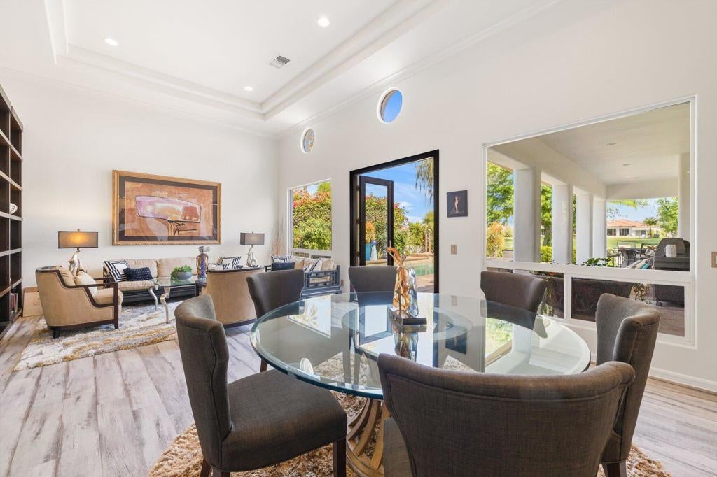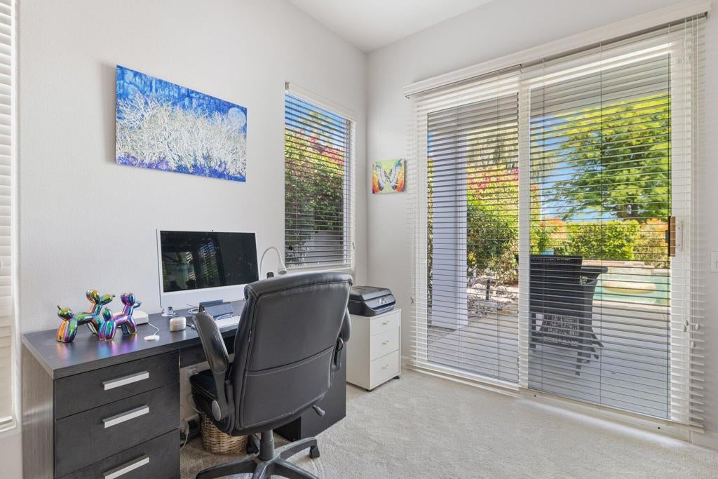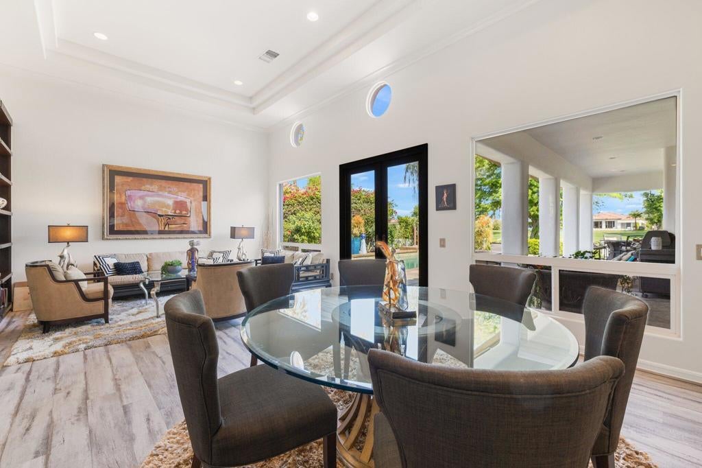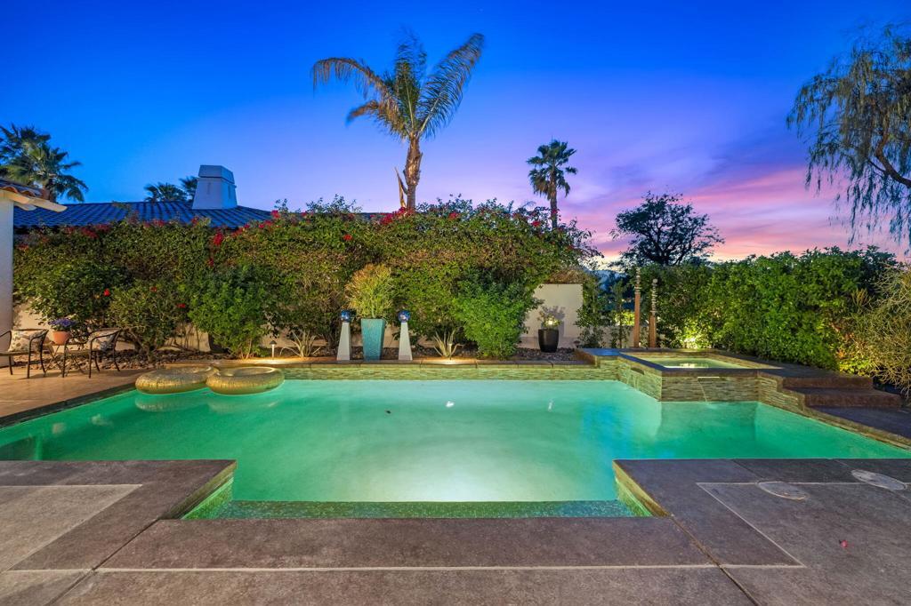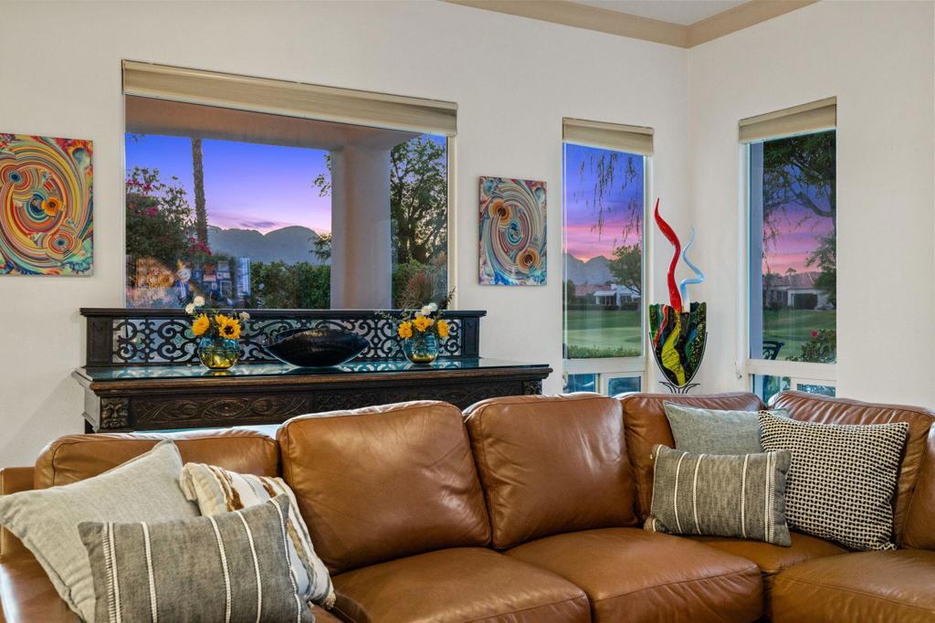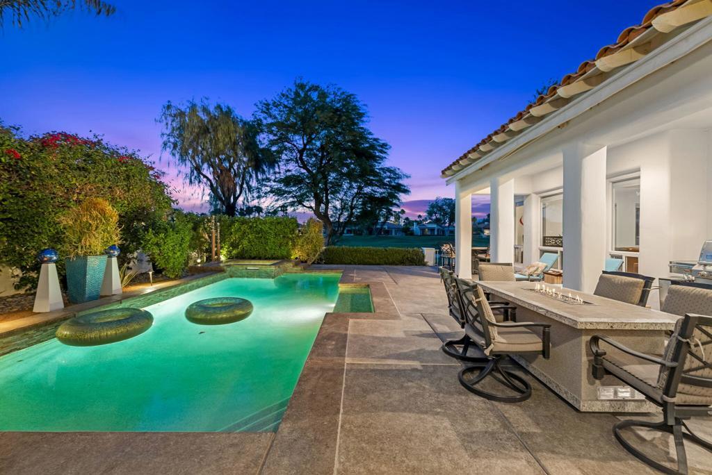 THE CITRUS: Fully furnished. This beautifully upgraded home offers stunning fairway views along The Citrus Club's 12th fairway and delivers the ideal desert lifestyle. High ceilings and walls of windows in the kitchen and family room fill the space with natural light and showcase unobstructed golf course views. French doors open to a spacious patio with a custom saltwater pool and spa, fire pit table, electric awning, and ample seating--perfect for entertaining or relaxing in style.The open floorplan flows seamlessly from the living and dining areas to the chef's kitchen, creating a true indoor-outdoor experience. The luxurious primary suite features its own cozy fireplace, a private sitting room/office, and an oversized spa-like bath with a soaking Roman tub, walk-in shower, and dual vanities.Located in the highly desirable Citrus Club, this home combines resort-style living with thoughtful design and timeless elegance. 2 new HVAC units were installed in May 2024. Experience the ultimate in desert lifestyle!
