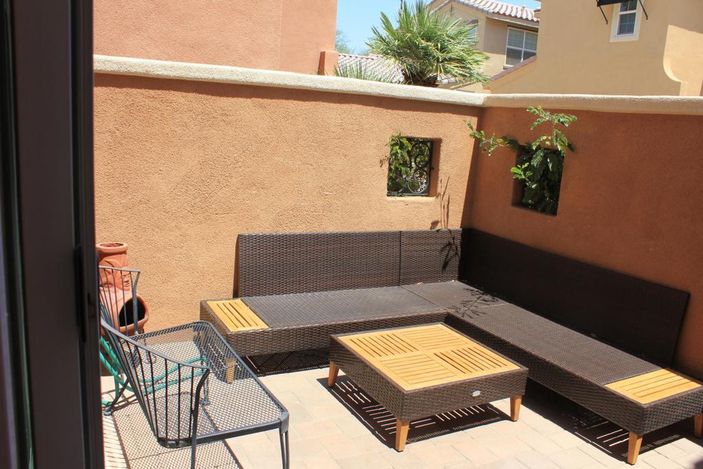 All Dates Available! Charming 2 bedroom, 2 bathroom (1 King Bed, 1 Queen Bed, each with private baths) upstairs. Seasonal lease in gated enclave of homes Cordoniz located off Ave 52 & Jefferson in La Quinta, just a quick trip to Silver Rock Resort & shopping and dining in Old Town La Quinta. Community amenities include Pool/Spa, outdoor fireplace and BBQ in gated Pool area, Tennis courts, and Fitness center. This turnkey home offers a nice floor plan. Living area with a large flat screen TV, Sleeper Sofa. Powder bath downstairs. Dining area with a Kitchen that has Granite counter tops and custom back splash. Stainless Steel appliances, pantry, breakfast bar with Drop down accent lights and dining table. Laundry, downstairs. Sliding doors to East Facing patio area. basic cable and wi-fi included. 2 car attached garage. Also, available Long Term Furnished.