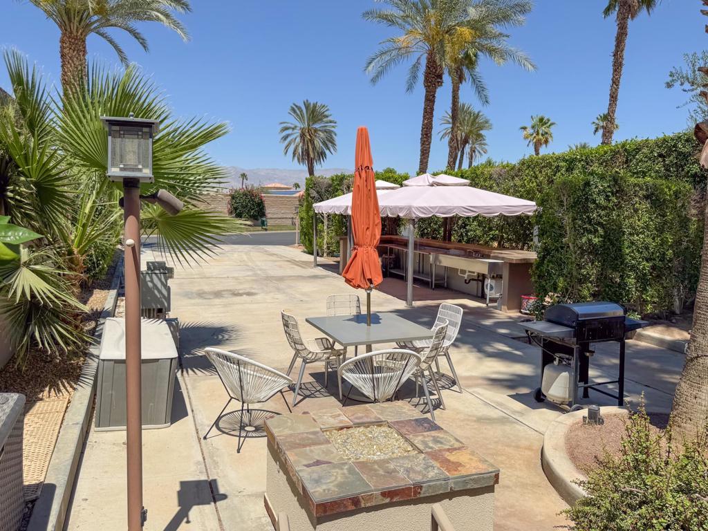 This oversized 3,920 sq. ft. luxury RV lot at Outdoor Resort Indio offers nearly twice the space of a standard lot and an unbeatable location just steps from the satellite pool, hot tub, sauna, and laundry. Designed for Class A motorcoach owners who enjoy the RV lifestyle, this unique property is full of delightful surprises--including an arched golf cart parking area and a secluded, hedge-enclosed 'room' perfect for outdoor dining or private entertaining. A small hidden grass lawn offers a space for pets or future personalization, while two sun shelters shade the expansive stainless kitchen area. Additional seating at the rear of the lot provides a peaceful retreat with a glimpse of the golf course--ideal for relaxing after a swim or soaking in the sun. With generous parking and resort-style amenities all around, this lot is both a spacious retreat and full of potential.‍Outdoor Resort Indio is a Class A only RV resort in Indio, CA.