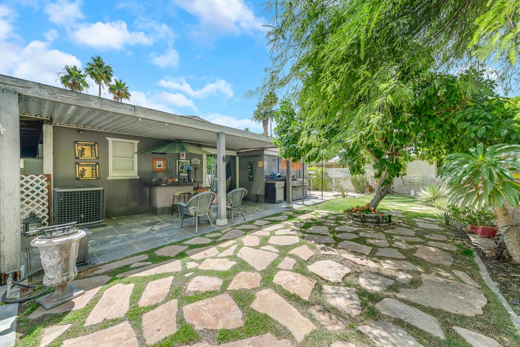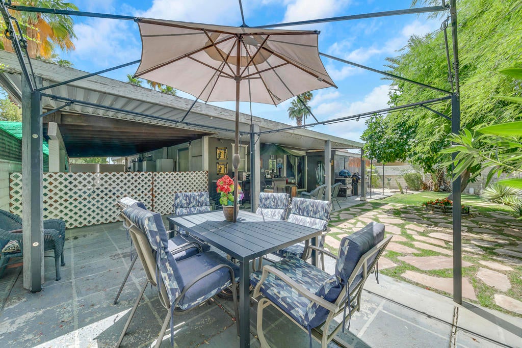 Welcome to The Colony, where comfort meets entertainment! Located in a gated community, this 2-bedroom, 2-bath home features an open floor plan and one of the most remarkable backyards in the neighborhood. Inside, a custom-built wet bar serves as a stylish and functional centerpiece for your gatherings. Outside, enjoy a fully equipped kitchen and bar--perfect for entertaining or relaxing in your private oasis.The Colony offers a wealth of amenities, including a clubhouse, fitness center, community pool and spas, library, billiard room, tennis and pickleball courts, basketball courts, BBQ area, and even an on-site hair and nail salon. This home offers the perfect blend of indoor-outdoor living and resort-style amenities you won't want to miss!