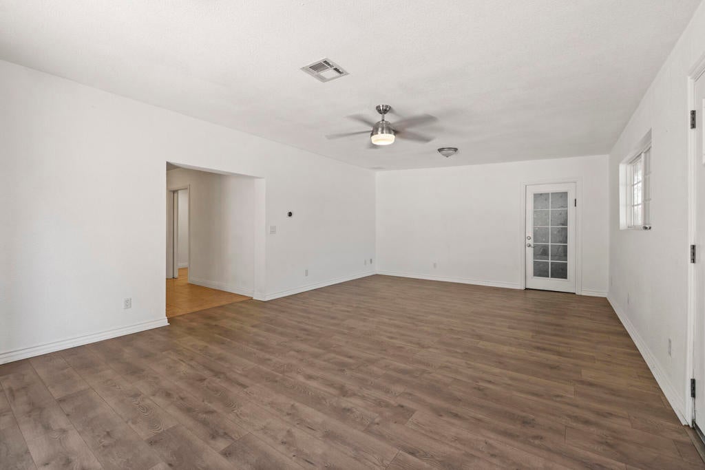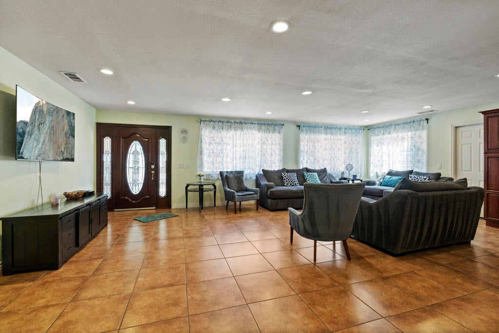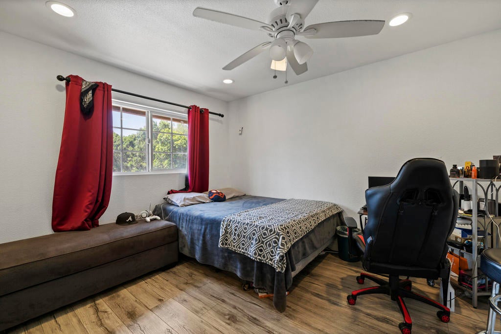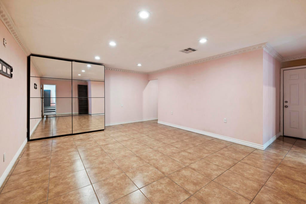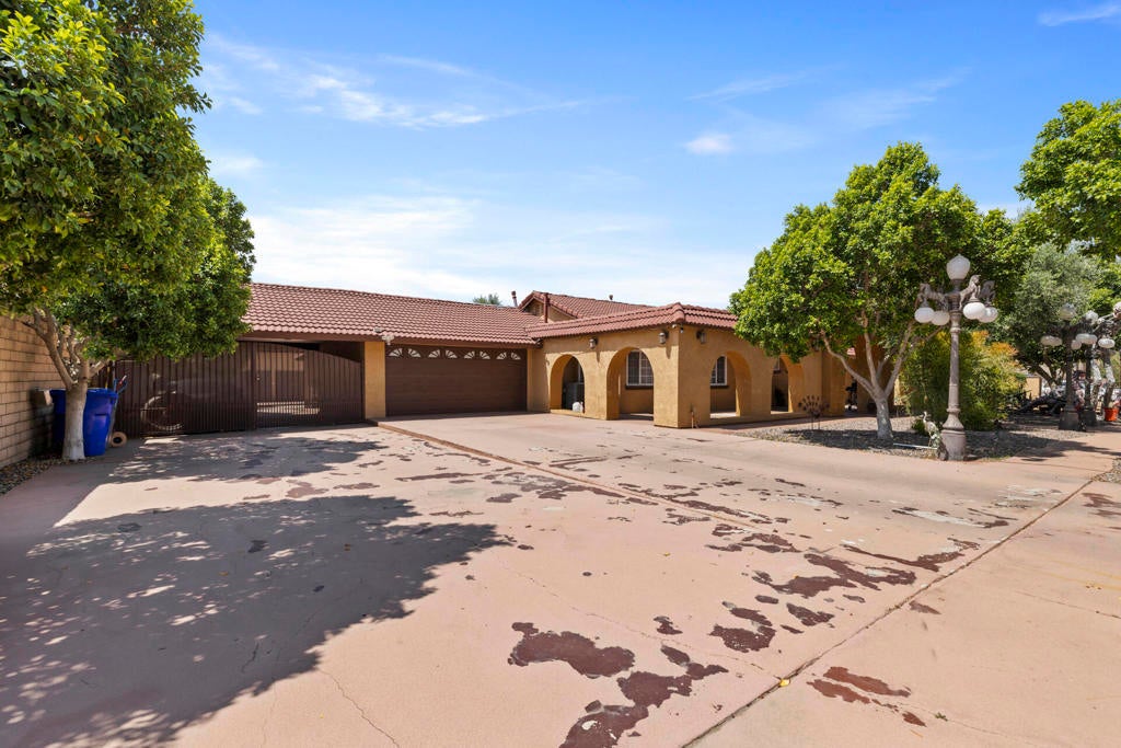 End-of-cul-de-sac privacy meets business flexibility at this gated Hacienda compound on a fully fenced, A-1-zoned 0.67 acre--three miles to Hwy 60, seven miles to Costco, and a quick stroll to the playground. The 4 bed/3 bath main residence features a red-tile roof, graceful arches, owned solar that slashes utility bills, and a shaded olive-citrus courtyard for alfresco dining. A 2017 renovation delivered a granite-island chef's kitchen with upgraded cabinetry and stainless accents, a dining-living core, luxury plank/tile floors, and spa-style baths with LED mirrors. At the rear, an approx. 2,000 sf auxiliary building pairs a full apartment (kitchen + bath) with a separate flex wing and second bath--ideal for multigenerational living, rental, studio, gym, or office. Heavy-duty asphalt blankets most of the parcel, gating 20+ cars, fleets, boats, or a 40-ft coach, all served by an on-site RV dump with grinder. A covered carport plus roll-up workshop bays corral tools and toys. A-1 Light Ag lets you keep horses or hobby livestock, plant orchards, add barns or an ADU, and run farm-stands with minor permits--country freedom without giving up city convenience. No HOA, low taxes, sunset views, and fast-rising Inland Empire values make this versatile compound a future-proof investment.