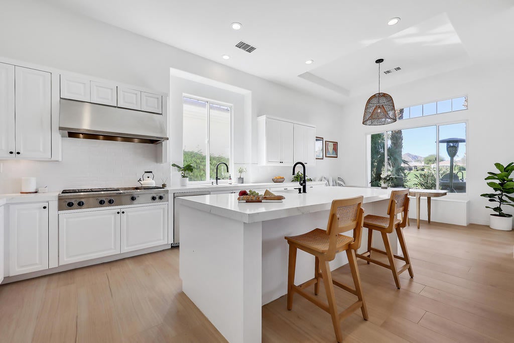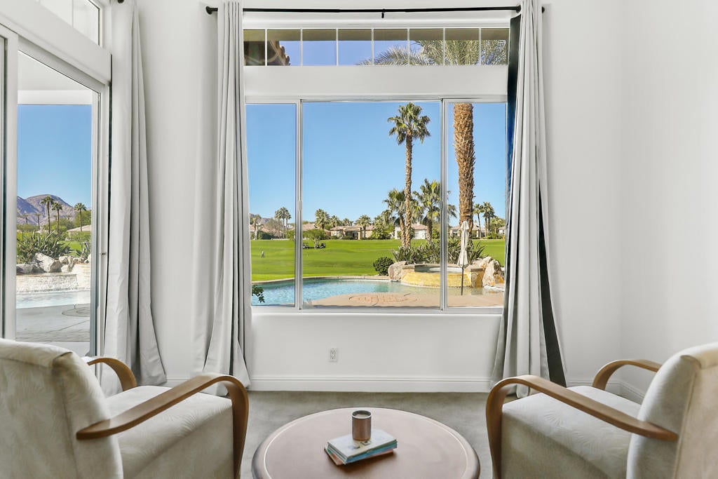 Enjoy resort-style living in this beautifully remodeled home overlooking the green at Mountain View Golf Course, with sweeping mountain views as your daily backdrop.This spacious 4-bedroom retreat includes a private-entry casita, ideal for guests or extended stays. Recent upgrades feature new flooring, countertops, and more throughout the home.An oversized great room, dedicated media room, and separate pool room offer plenty of space to relax and entertain -- the ultimate setup for your Palm Springs/Coachella Valley getaway.