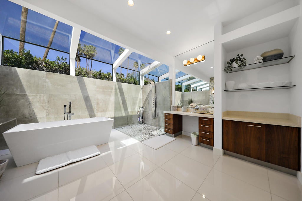 Presenting an Indian Wells - Mid Century 4 bed 4 bath including a private casita that is a true masterpiece. Every detail of this meticulously designed property has been carefully considered, from the reimagined chef's kitchen to the expanded dining room and awe-inspiring master bath. Step inside and be greeted by brilliant white porcelain floors that perfectly complement the walls of glass, seamlessly merging the indoor and outdoor spaces. Prepare to be captivated by the breathtaking views of the lush backyard, adorned with Meyer lemon, lime, and pink grapefruit trees, a glistening pool, and a majestic mountain backdrop. The patio is a haven of tranquility, ideal for unwinding and hosting memorable gatherings.Adjacent to the pool and fire pit area, an attached casita offers a private retreat. Additional highlights include two guest suites, a double car garage, and a golf cart garage, ensuring convenience and ample space. The home effortlessly harmonizes modern aesthetics with the timeless allure of its era, creating a stylish and inviting atmosphere.As a tenant, you will relish in the exclusive privileges of Indian Wells, encompassing world-class shopping, exceptional dining experiences, rejuvenating spas, and access to prestigious golf courses. With its irresistible charm and remarkable features - make this is your perfect vacation getaway.