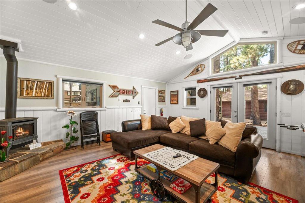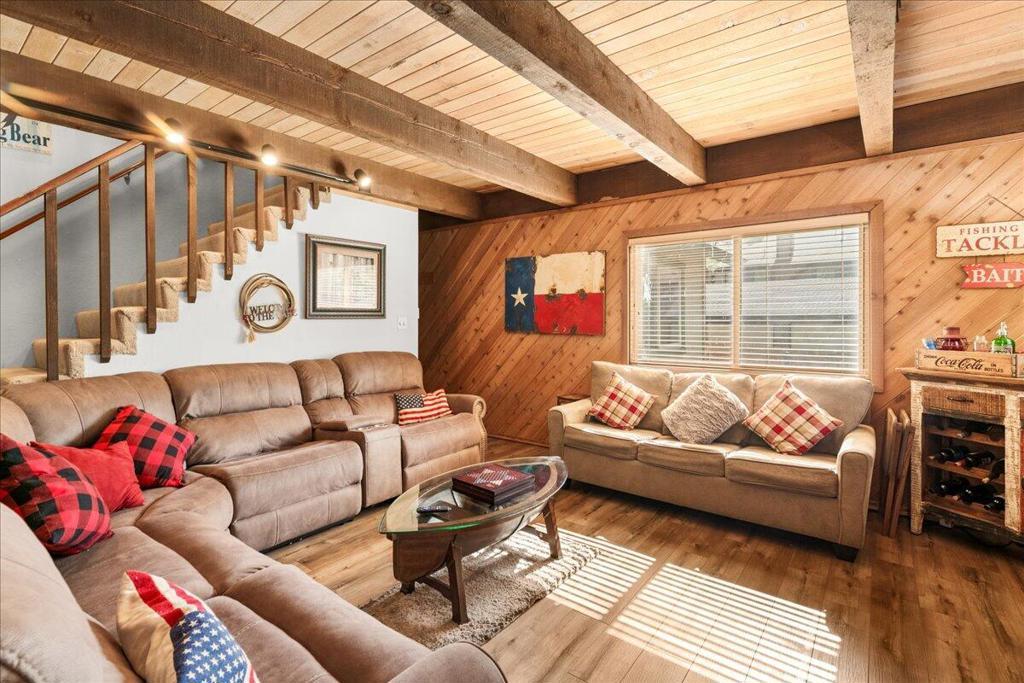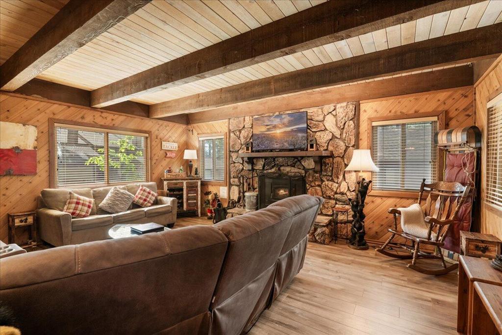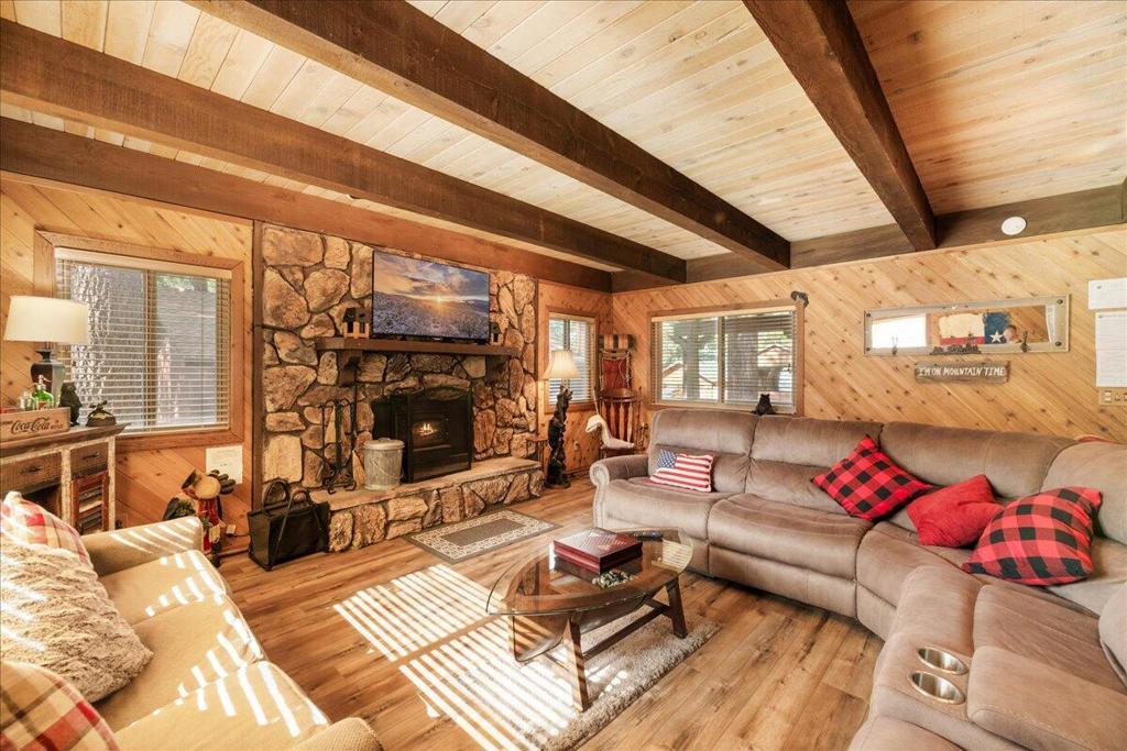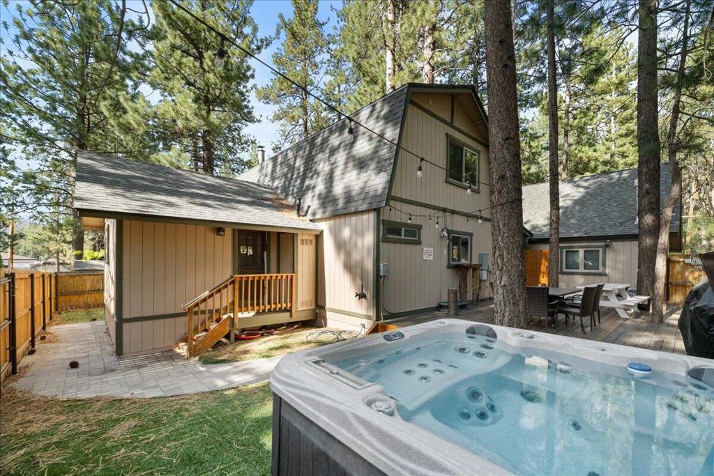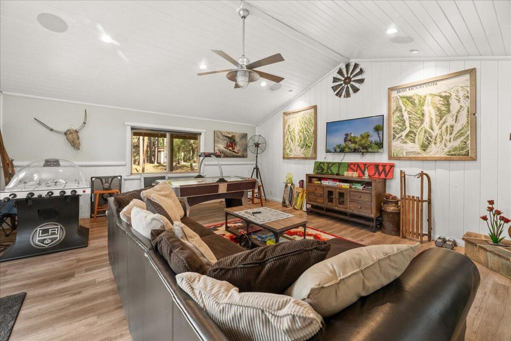 Beautifully updated mountain retreat in a prime location! This stunning mountain home offers the perfect blend of comfort and convenience, boasting 4 spacious bedrooms (including one on the main level), 3 well-appointed bathrooms (one on the main level), and a versatile game room with a fireplace in the converted two-car garage. The warm and welcoming living room boasts a stunning wood-burning fireplace, creating a cozy atmosphere for gatherings. The kitchen seamlessly flows with the dining area, offering an ideal space for entertaining and everyday comfort. Step outside to your peaceful covered front porch, or enjoy your fully fenced backyard, featuring an 8-person spa, horseshoe pit, BBQ area with a grill, and a putting green--ideal for relaxation or entertaining. Recent upgrades, including a new roof and fresh exterior paint, make this home move-in ready and primed for enjoyment. Located within walking distance to Snow Summit, this property provides unbeatable access to skiing, snowboarding, mountain biking, hiking, and year-round outdoor adventures. Whether you're seeking a primary residence, vacation getaway, or investment rental, this spacious and inviting mountain cabin is a rare find in the heart of Big Bear. Don't miss it!