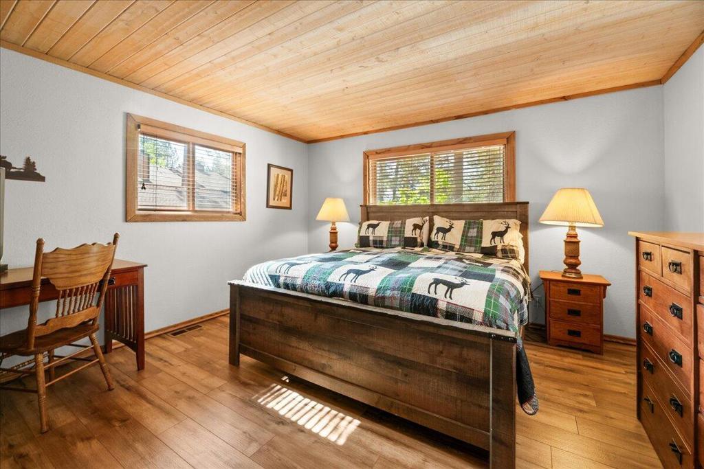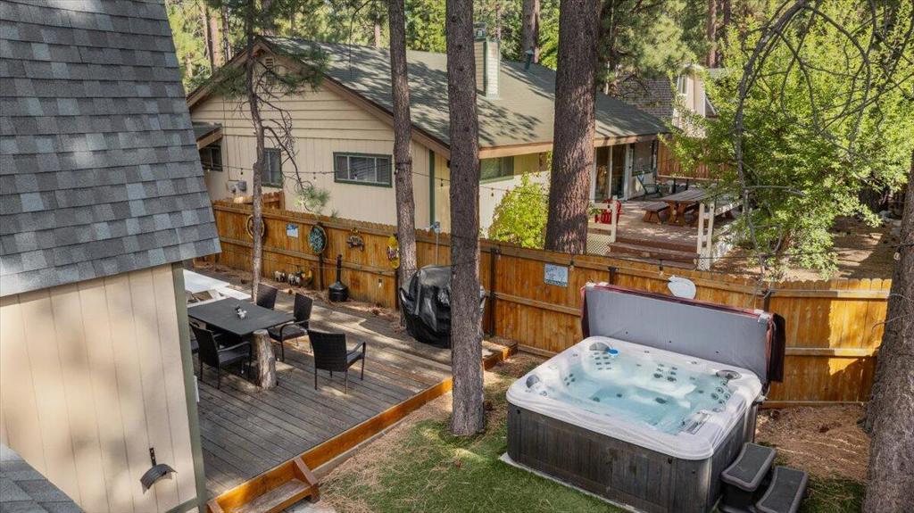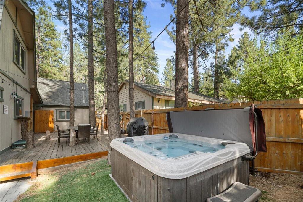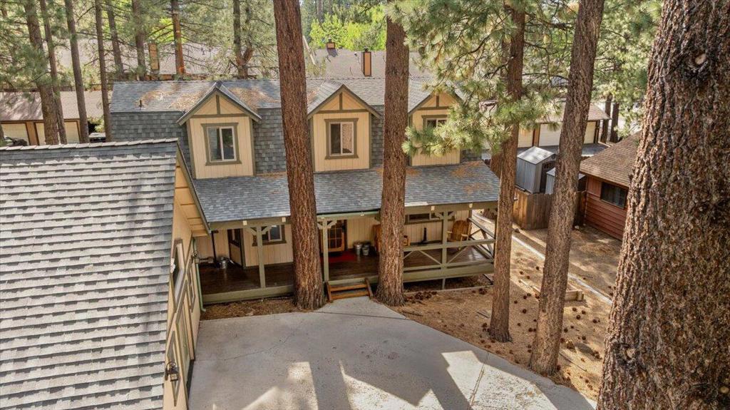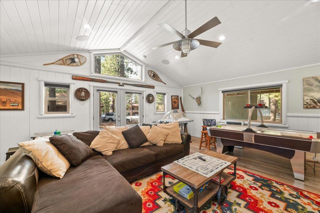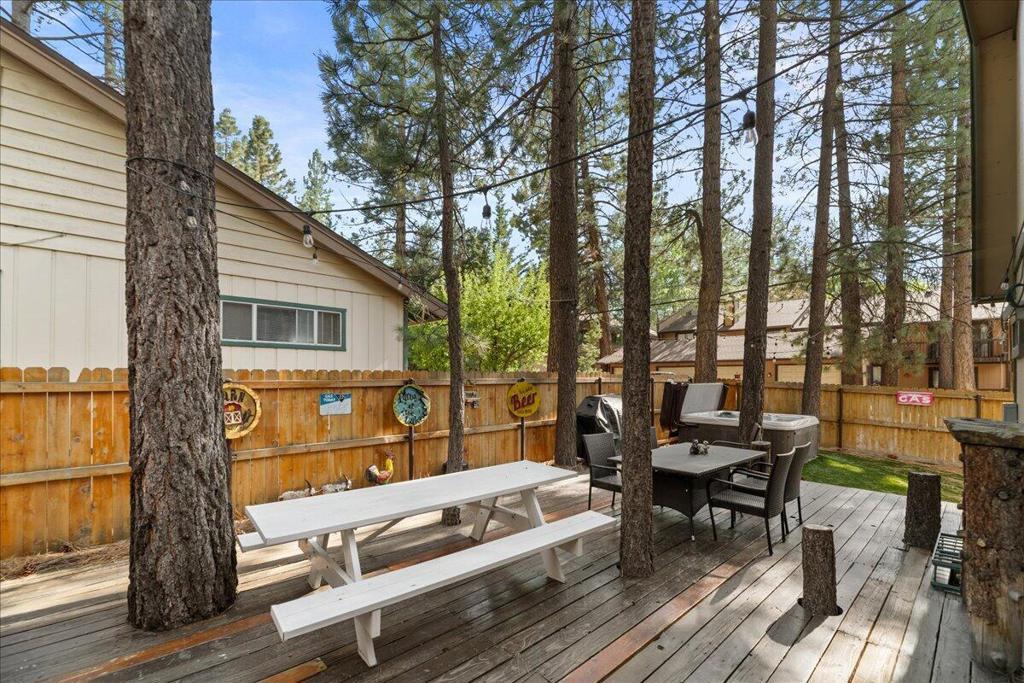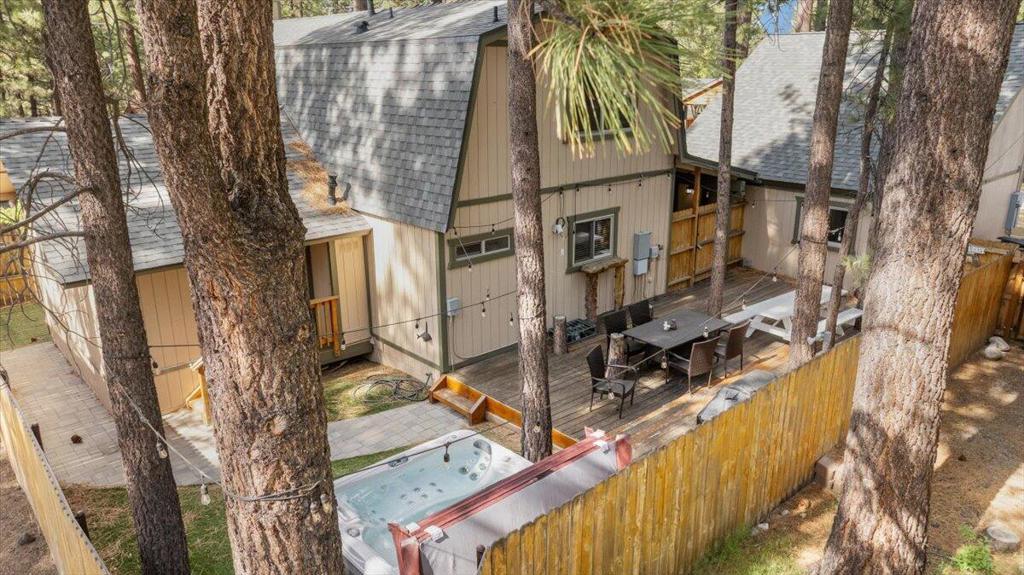 Beautifully updated mountain retreat in a prime location! This stunning mountain home offers the perfect blend of comfort and convenience, boasting 4 spacious bedrooms (including one on the main level), 3 well-appointed bathrooms (one on the main level), and a versatile game room with a fireplace in the converted two-car garage. The warm and welcoming living room boasts a stunning wood-burning fireplace, creating a cozy atmosphere for gatherings. The kitchen seamlessly flows with the dining area, offering an ideal space for entertaining and everyday comfort. Step outside to your peaceful covered front porch, or enjoy your fully fenced backyard, featuring an 8-person spa, horseshoe pit, BBQ area with a grill, and a putting green--ideal for relaxation or entertaining. Recent upgrades, including a new roof and fresh exterior paint, make this home move-in ready and primed for enjoyment. Located within walking distance to Snow Summit, this property provides unbeatable access to skiing, snowboarding, mountain biking, hiking, and year-round outdoor adventures. Whether you're seeking a primary residence, vacation getaway, or investment rental, this spacious and inviting mountain cabin is a rare find in the heart of Big Bear. Don't miss it!