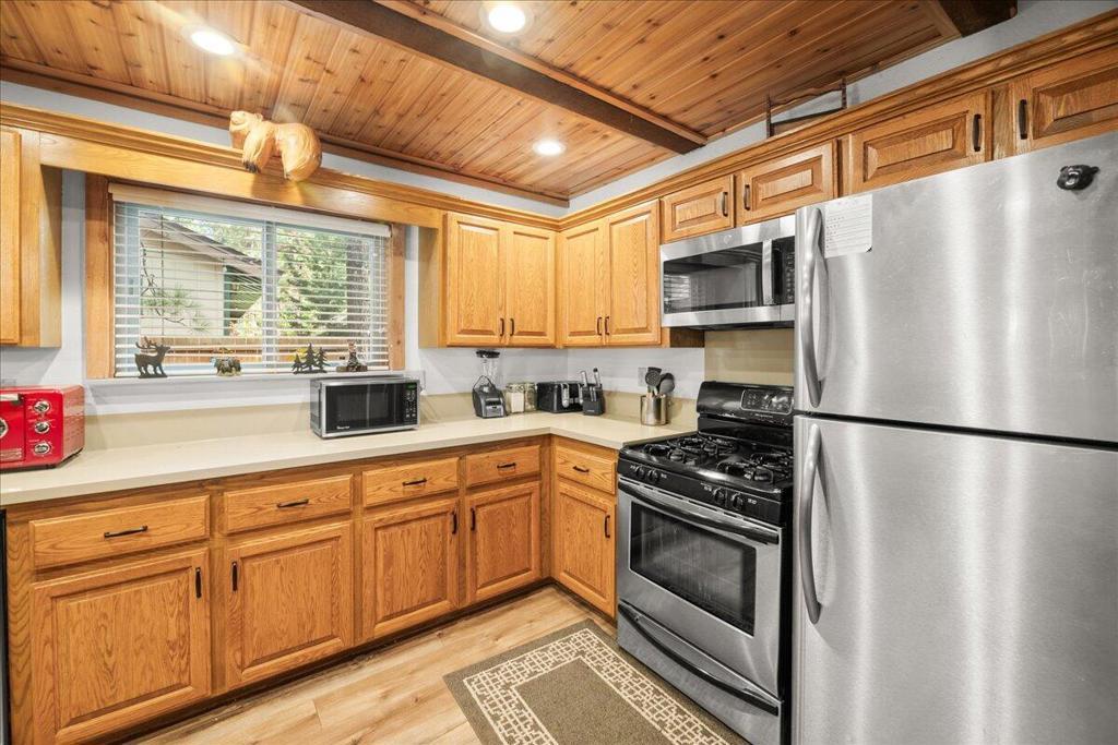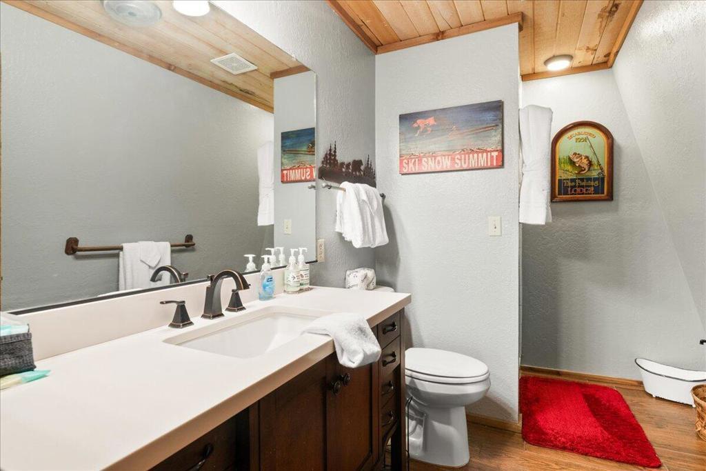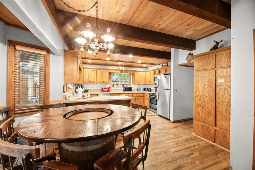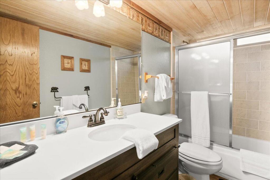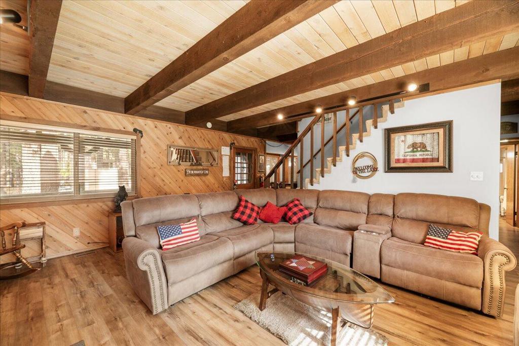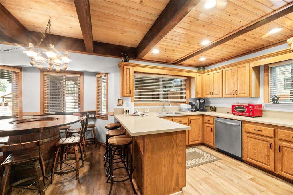 Beautifully updated mountain retreat in a prime location! This stunning mountain home offers the perfect blend of comfort and convenience, boasting 4 spacious bedrooms (including one on the main level), 3 well-appointed bathrooms (one on the main level), and a versatile game room with a fireplace in the converted two-car garage. The warm and welcoming living room boasts a stunning wood-burning fireplace, creating a cozy atmosphere for gatherings. The kitchen seamlessly flows with the dining area, offering an ideal space for entertaining and everyday comfort. Step outside to your peaceful covered front porch, or enjoy your fully fenced backyard, featuring an 8-person spa, horseshoe pit, BBQ area with a grill, and a putting green--ideal for relaxation or entertaining. Recent upgrades, including a new roof and fresh exterior paint, make this home move-in ready and primed for enjoyment. Located within walking distance to Snow Summit, this property provides unbeatable access to skiing, snowboarding, mountain biking, hiking, and year-round outdoor adventures. Whether you're seeking a primary residence, vacation getaway, or investment rental, this spacious and inviting mountain cabin is a rare find in the heart of Big Bear. Don't miss it!