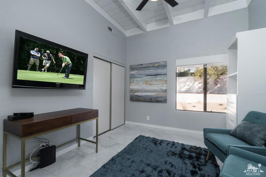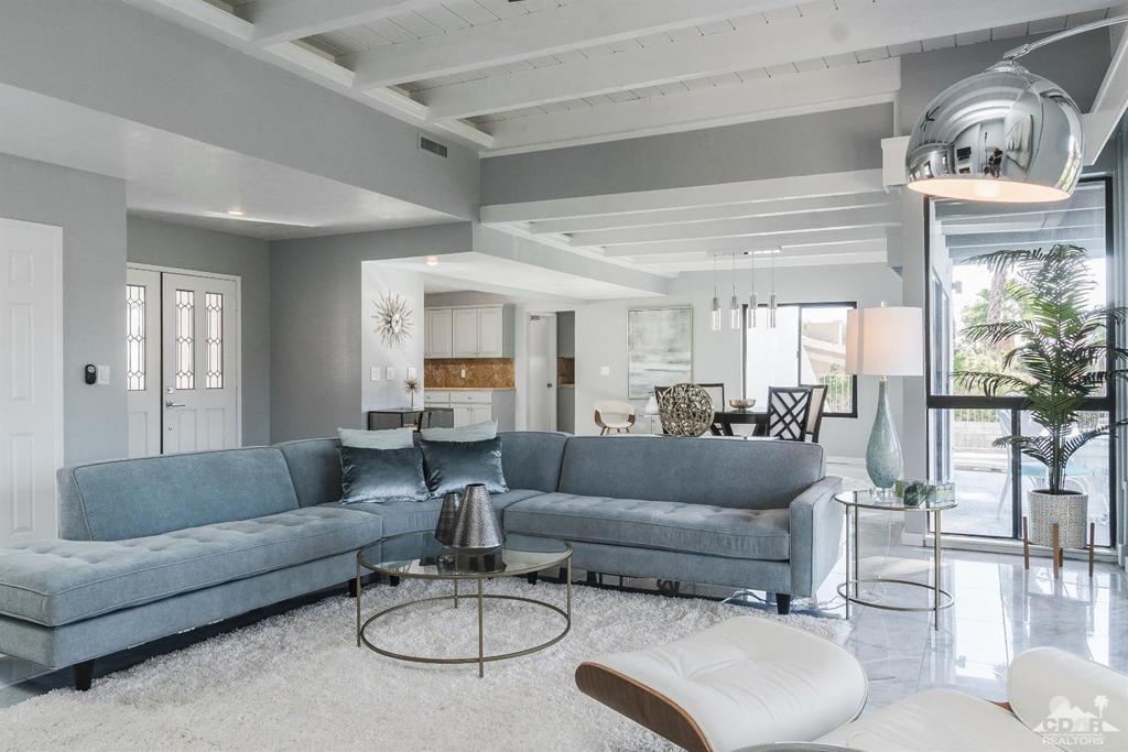 Currently rented Jan, Feb, March, 2026. LOCATION!! Views over two fairways of the Southern Mountains from elevated lot. This custom Mid-Century home has recently been remodeled inside and outside. Stunning marble flooring flows throughout the ENTIRE home - no carpet whatsoever. Gourmet kitchen with new appliances is open to the living area for a true GREAT ROOM!! Floor to ceiling windows afford forever views of the mountains and golf course; there is also a cozy fireplace for those cooler evenings. Because this home is on an elevated lot, you have lots of privacy, even though you are on the golf course. Three bedrooms, each equipped with a television. Separate laundry room with sink and convenient powder room off laundry room.$200 a month limit for gas & electric - any overage deducted from deposit. Dogs OK.