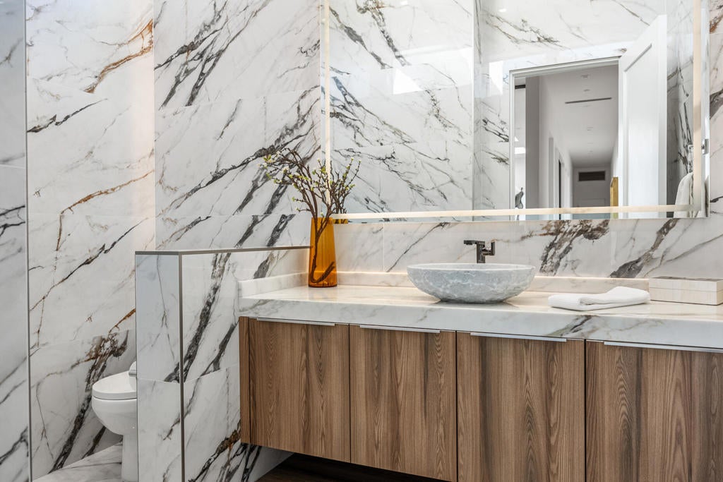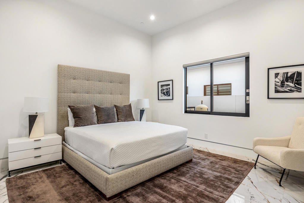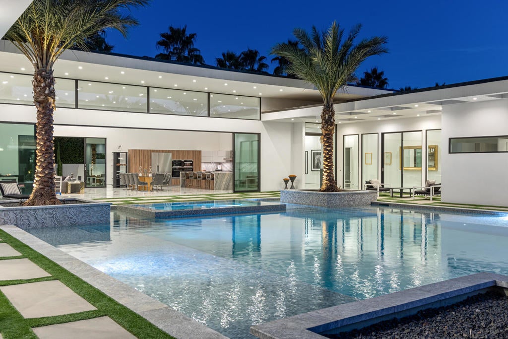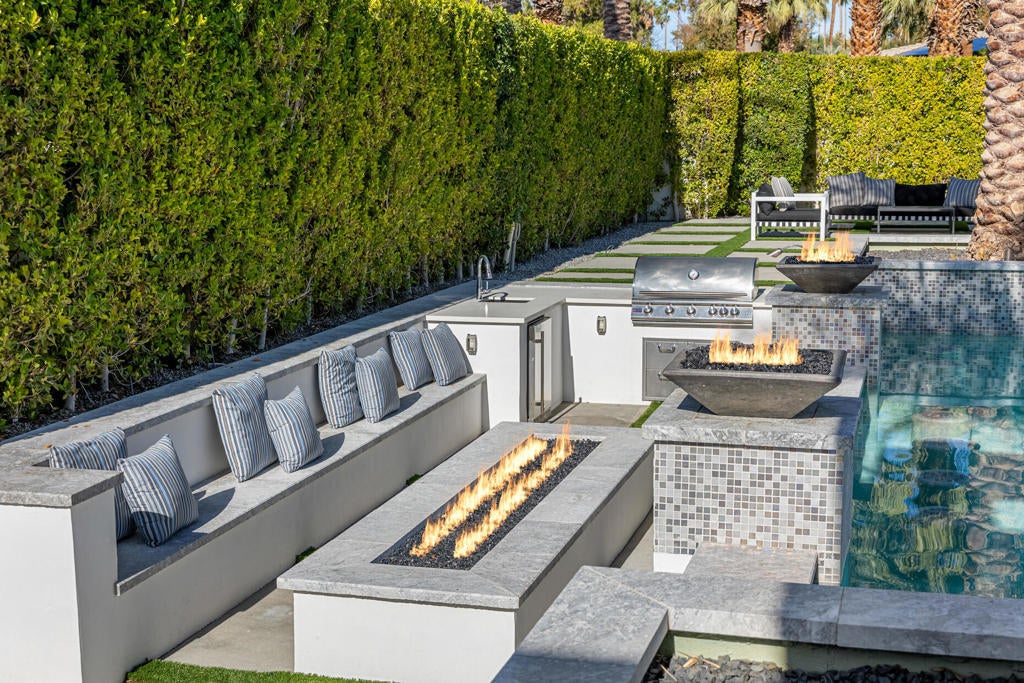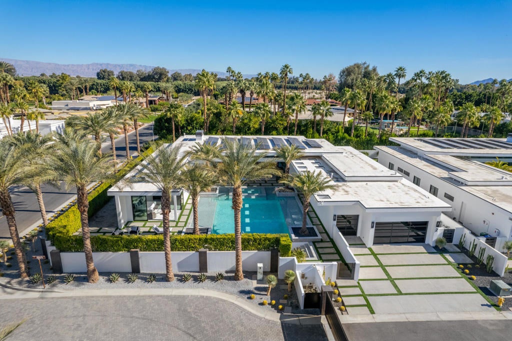 Welcome to Bravo 7, located in the heart of Tamarisk, in Rancho Mirage. This private enclave of seven curated luxury homes by architect James M. McEachern and Developer Bravo Development is now hitting the market for the first time. This luxury estate at Bravo 2 boasts an oversized pool with two tiled Baja shelves and a step-down bar area with a fire pit. Upon entering through the pivoting glass door, you will be greeted by an impressive interior featuring soaring ceilings, fold-away glass doors, imported polished marble from Spain, and sleek custom cabinetry imported from Germany. The bathrooms and kitchen are adorned with high-quality Hansgrohe fixtures. The spacious great room, complete with a linear fireplace, is perfect for hosting grand-scale gatherings and seamlessly connects to the kitchen, backyard, and pool area. The estate offers 5 ensuite bedrooms and 5.5 baths, equipped with Fleetwood doors and windows, Miele appliances, smart-home lighting and communication systems, and luxurious Italian cabinetry in the primary suite's walk-in closets. Other notable features include illuminated bath mirrors, solar power, and a 3-car garage with epoxy flooring. This prestigious residential collection is conveniently located near The Ritz-Carlton Resort & Spa, Sunnylands, Palm Springs International Airport, luxury shopping, and fine dining. It presents an unparalleled opportunity to live a grand lifestyle that many can only dream of