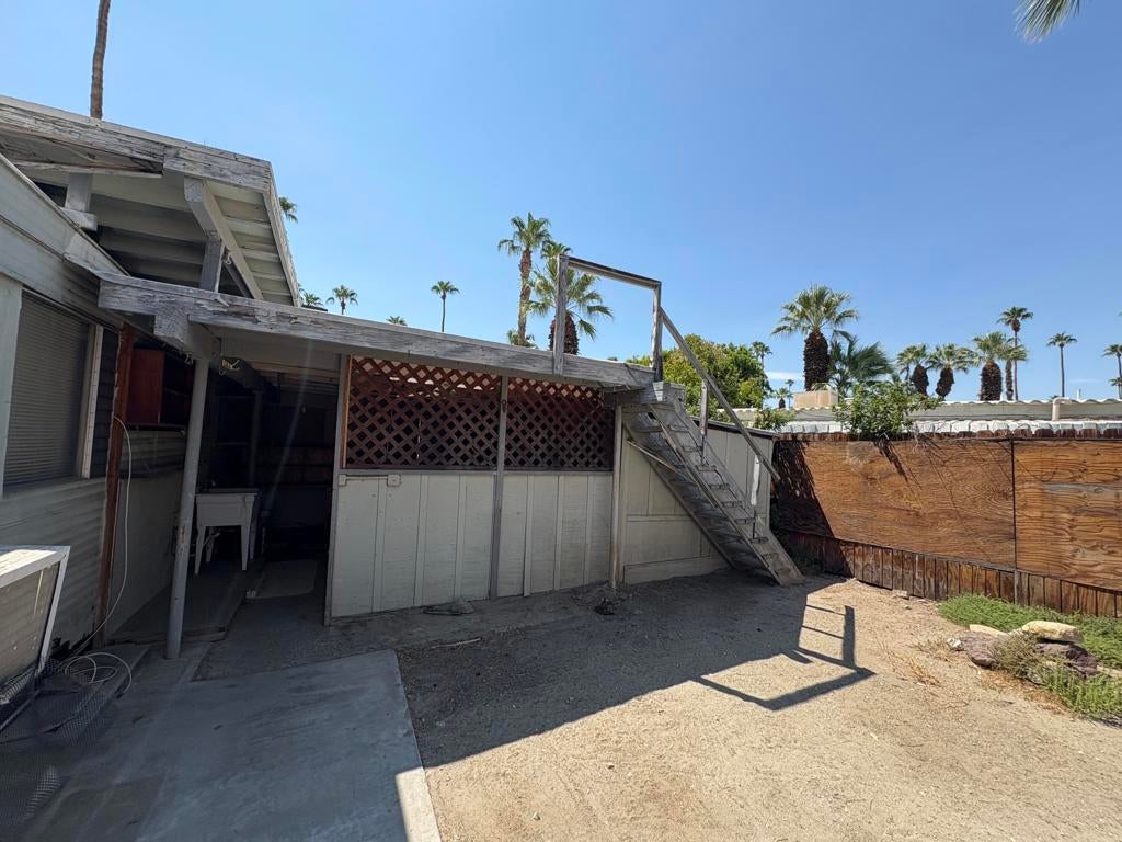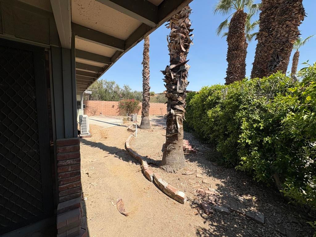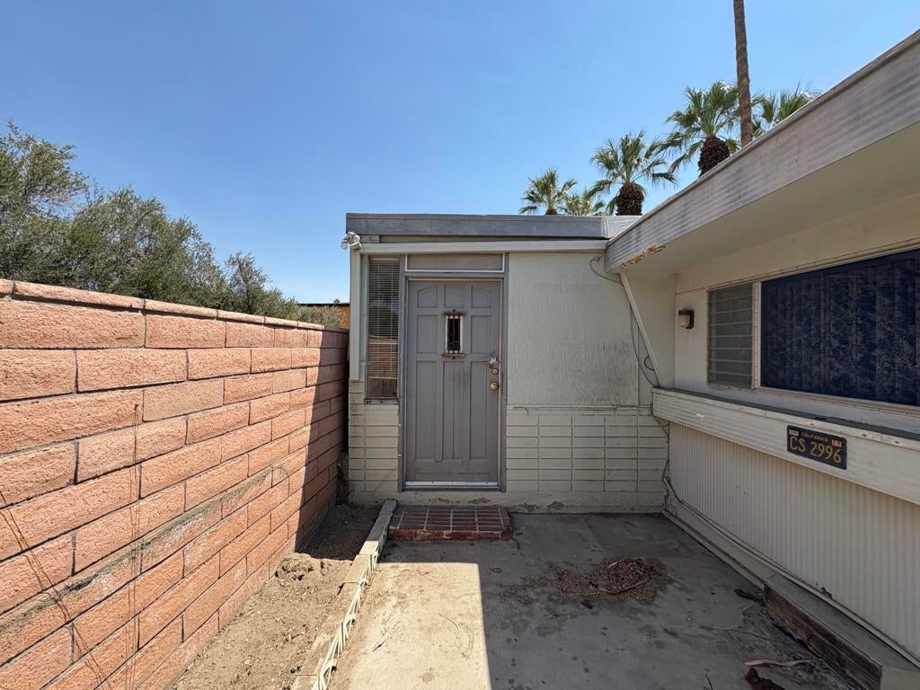 Rare Land Ownership Opportunity in Historic Blue Skies Village! Located on a peaceful cul-de-sac within this iconic 55+ gated community, this 1960 home offers a unique chance to own the land--one of the many benefits in Blue Skies. The existing structure is in need of extensive renovation or replacement, making it an ideal site for a new double-wide home customized to your taste. The lot is directly adjacent to the scenic Butler-Abrams Trail, perfect for morning walks or peaceful bike rides along the 2.14-mile loop between Frank Sinatra Dr. and Country Club Dr.Founded in the 1950s by Bing Crosby and a group of Hollywood luminaries, Blue Skies Village is steeped in history and charm. With only 141 homes, the community is intimate and well-maintained, featuring a saltwater pool and spa, billiard room, card room/library, exercise room, and the architecturally significant Tanner Hall, designed by mid-century master William F. Cody. The low $360 monthly HOA includes water, trash, cable TV, and internet. Whether you're ready to restore a classic or start fresh, this property offers unmatched potential in one of Rancho Mirage's most beloved enclaves.Take advantage of this blank canvas to create your own get-away or full-time residence in one of the most sought-after communities. Public transportation is available right outside the main gate, and you are minutes away from shopping, dining, entertainment and world-class medical facilities at Eisenhower Medical Center. Don't miss this exciting opportunity!