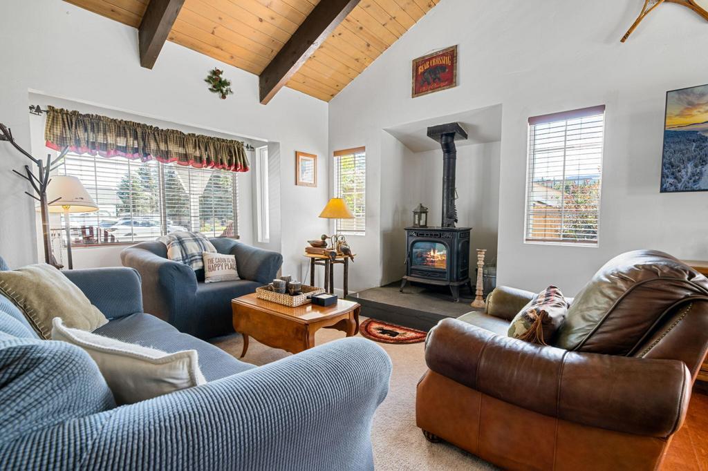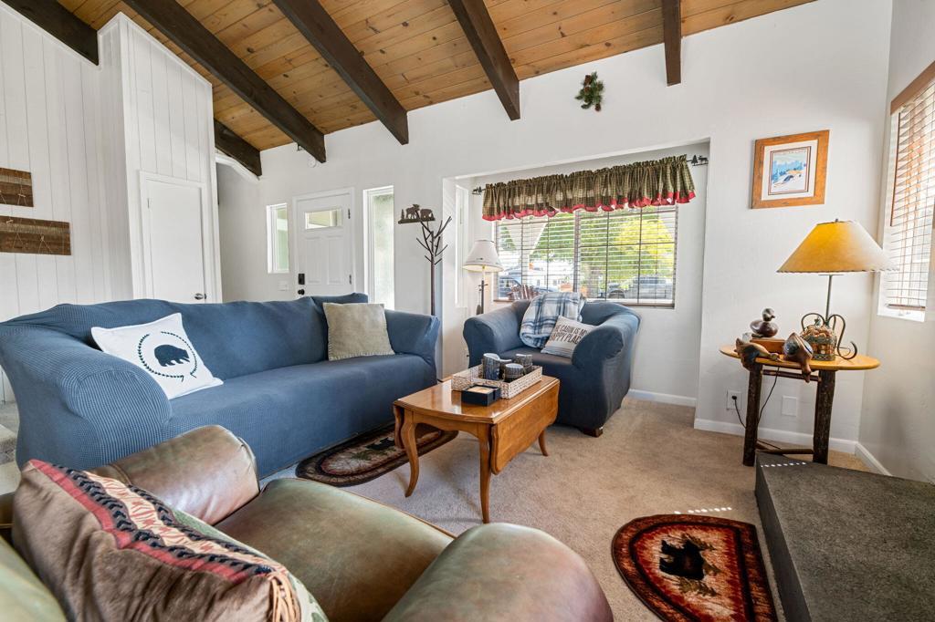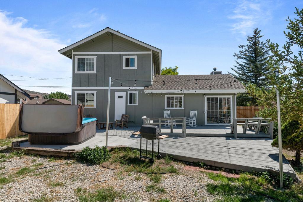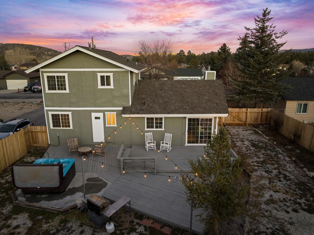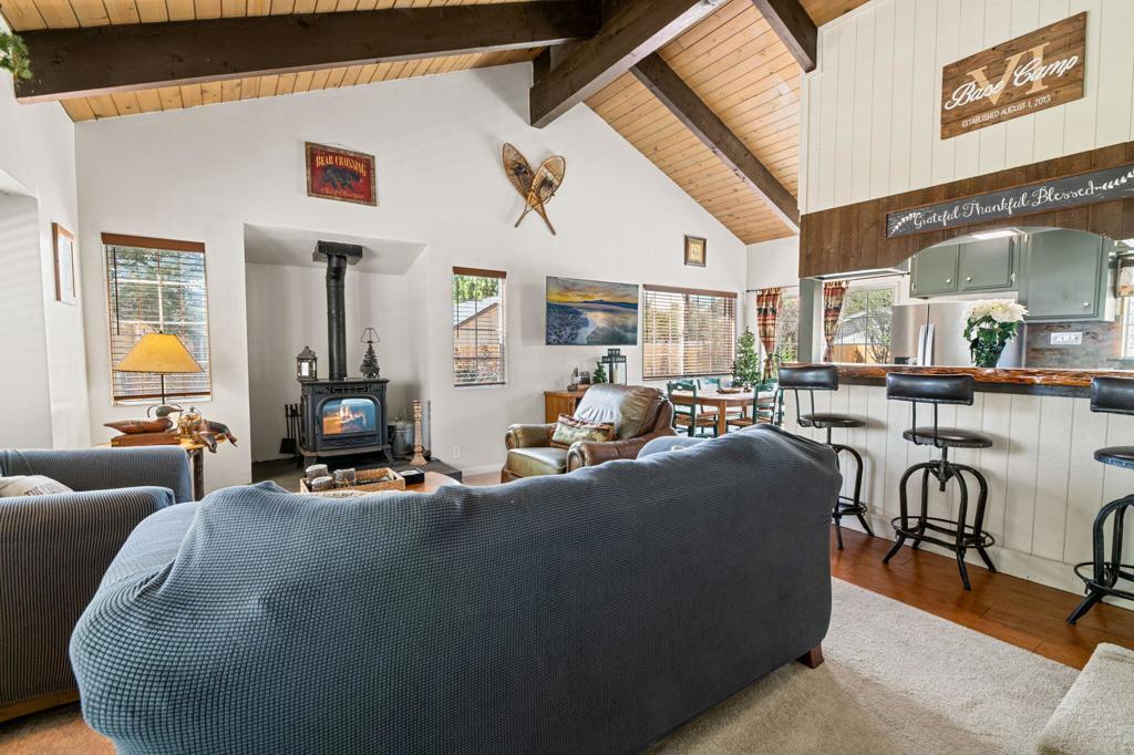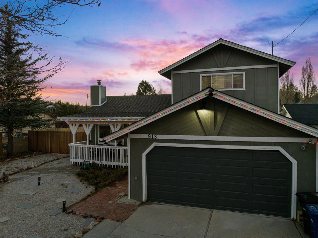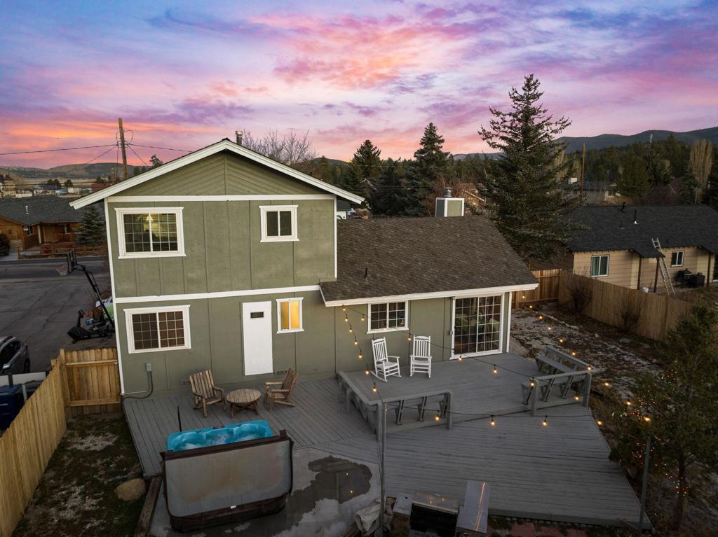 Awesomely Remodeled Bear City Home. Three bedrooms, two baths and a two car garage on an oversized, fully fenced triple lot. Master suite has amazing views of the mountains. Fresh painted inside and out. Kitchen is wide open to the living room with a breakfast bar, refinished cabinets, newcountertops, and metal sink. Wide open floorplan. Soaring ceilings with wood beams in the livingroom. Vinyl dual pane windows and slider. Totally updated bathrooms with new vanities, fixtures and mirrors. Ceiling fans in the bedrooms. Covered front porch and huge back deck. New hot tub. Garage has been converted to a game room. Fully fenced back yard with a large storage shed. Level lot with easy parking. Epic views of Gold Mountain. Fully furnished with nice pieces. Perfect for full time living or as a rental. Just a skip away from the national forest. Close to the main roads for easy access to thelake, skiing and shopping.