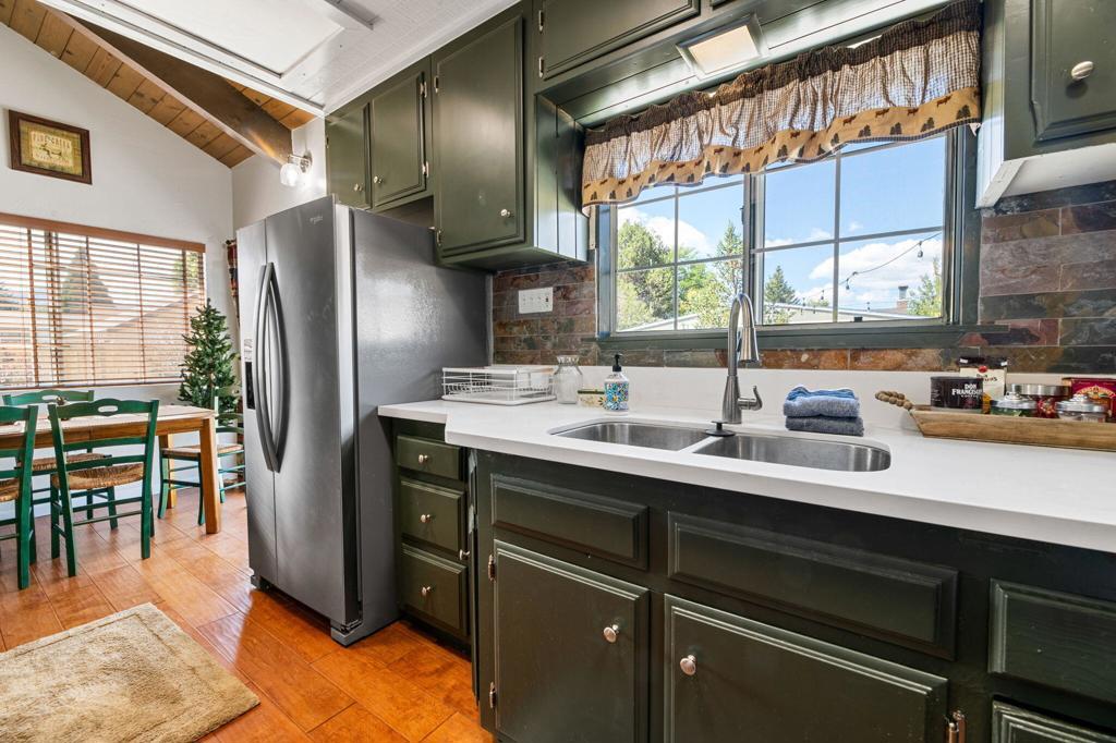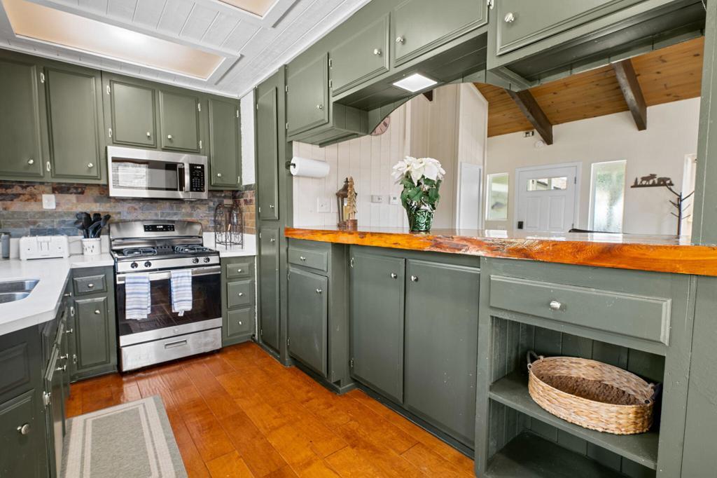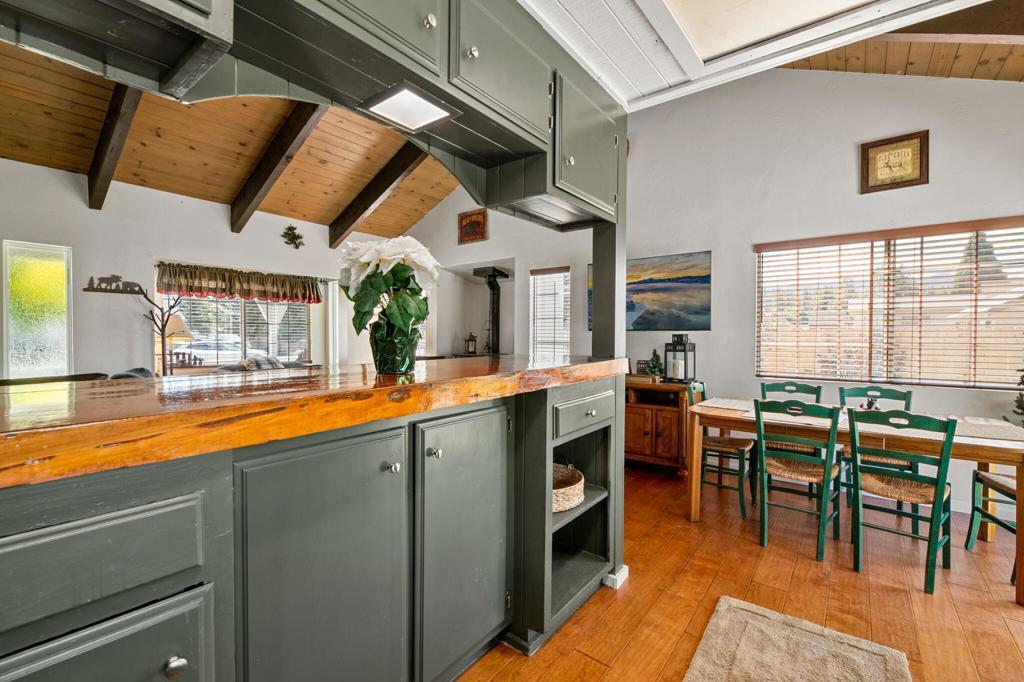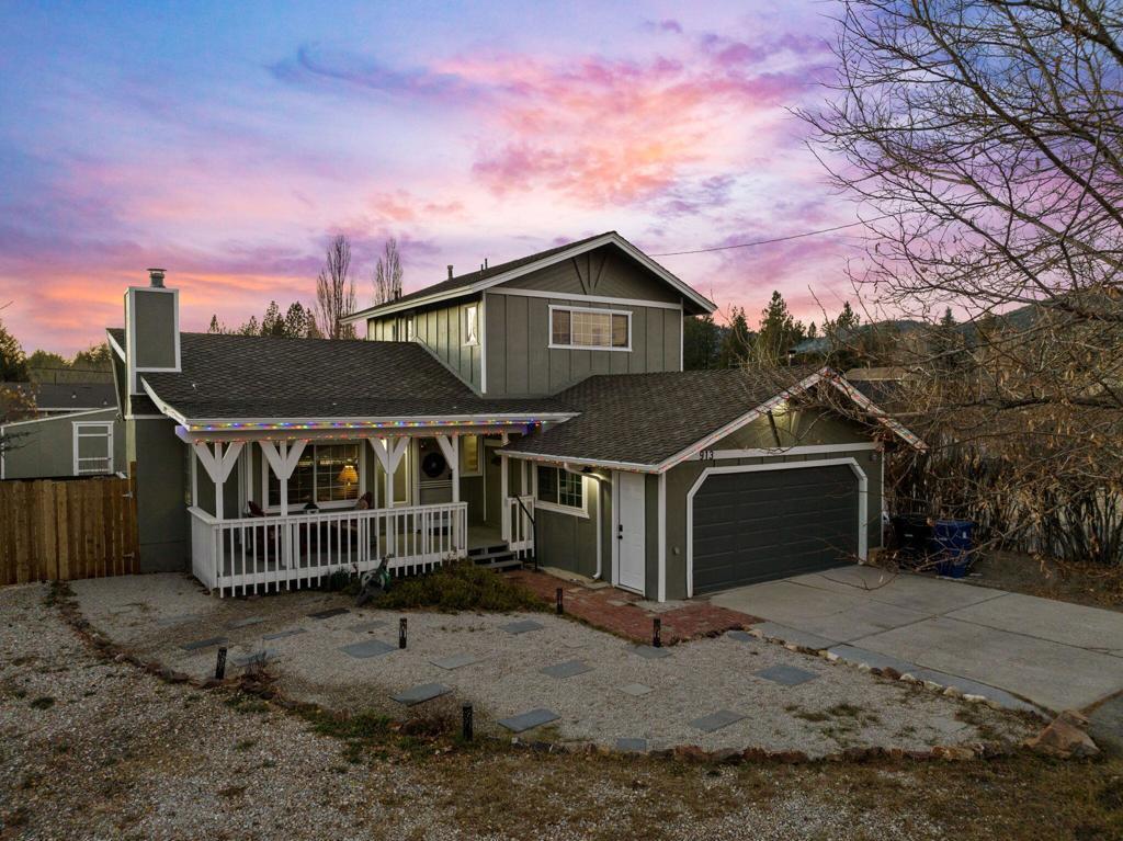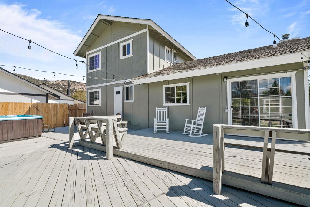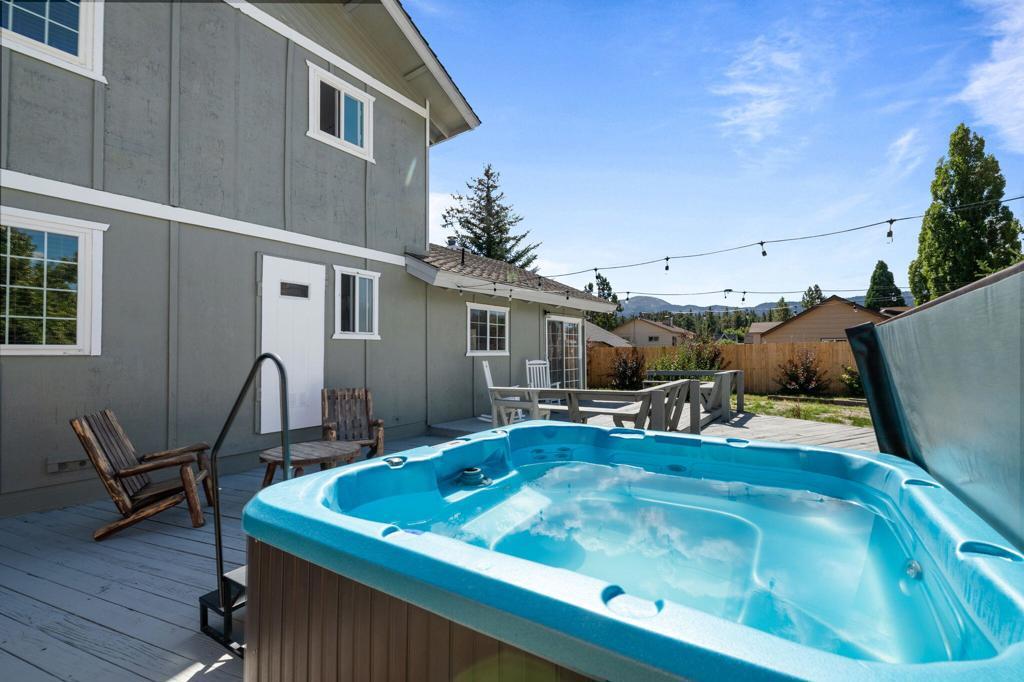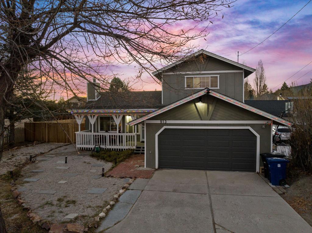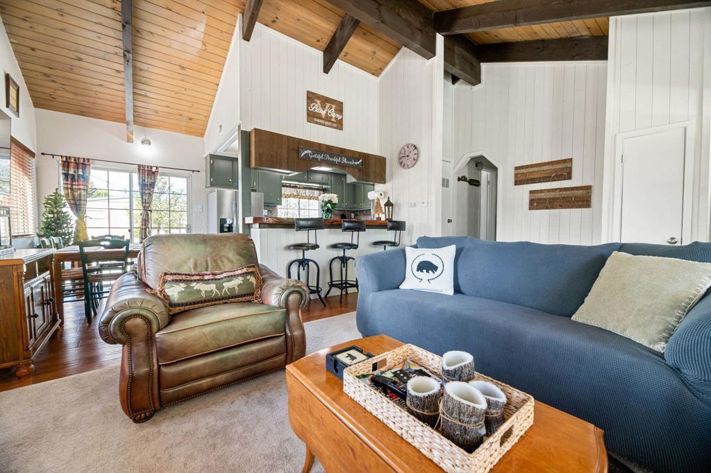 Awesomely Remodeled Bear City Home. Three bedrooms, two baths and a two car garage on an oversized, fully fenced triple lot. Master suite has amazing views of the mountains. Fresh painted inside and out. Kitchen is wide open to the living room with a breakfast bar, refinished cabinets, newcountertops, and metal sink. Wide open floorplan. Soaring ceilings with wood beams in the livingroom. Vinyl dual pane windows and slider. Totally updated bathrooms with new vanities, fixtures and mirrors. Ceiling fans in the bedrooms. Covered front porch and huge back deck. New hot tub. Garage has been converted to a game room. Fully fenced back yard with a large storage shed. Level lot with easy parking. Epic views of Gold Mountain. Fully furnished with nice pieces. Perfect for full time living or as a rental. Just a skip away from the national forest. Close to the main roads for easy access to thelake, skiing and shopping.
