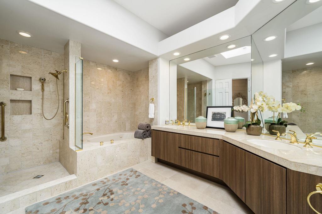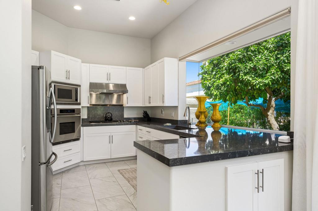 Available Beginning Nov. 2025 to Jan. 2026. This stunning home nestled on a tranquil, private cul-de-sac within Desert Horizons Country Club. From the moment you arrive, a private courtyard welcomes you into a spacious Open Floor plan designed for comfort and elegance. Step inside to soaring ceilings and skylit rooms that flood the space with natural light, highlighting beautiful 18x36 tile flooring throughout the main living areas. The Chef's Kitchen features Quartz Countertops, top-of-the-line Appliances, and a custom-built Pantry. Adjacent to the Kitchen, the cozy Breakfast Nook seats 4, perfect for casual meals. For entertaining, a stunning Granite Wet Bar with a Beveridge Refrigerator and a Game Table is ideally situated between the Kitchen and Living room with views of the lushly landscaped back patio terrace, bringing the beauty of the outdoors inside. The Primary Suite offers a luxurious retreat with a King-sized Bed and grasscloth wall coverings, Spa-like Bath, Shower and Walk in Closet. The 2nd Guest bedroom features a Queen-sized bed and an en-suite bath, while the 3rd bedroom has been converted into a versatile Den/TV room, perfect for relaxing or working from home. Spacious Terrace Patio & enjoy the serene Greenbelt, (patio furniture will be provided) A dedicated laundry room leads to a two-car garage with ample storage. Enjoy the community's amenities with a sparkling pool just steps from your door, making this home the ideal blend of privacy, luxury, and resort-style living.