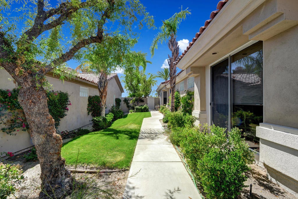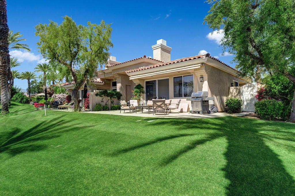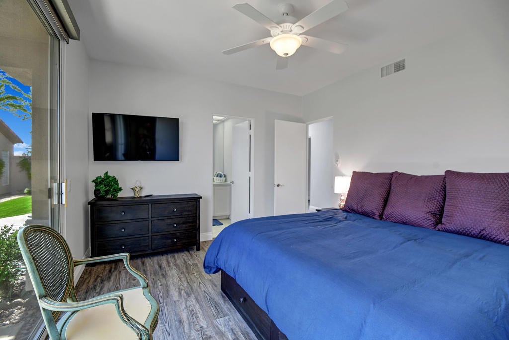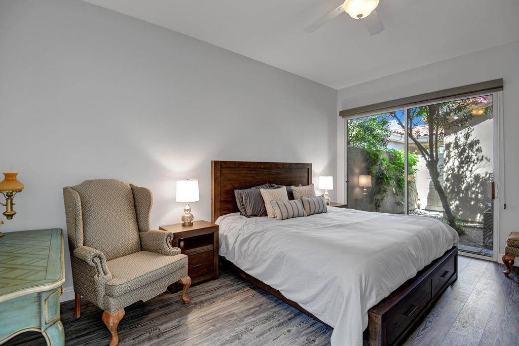 This fully furnished remodeled home is available for your seasonal vacation November 2025 - April 2026! South-facing condo boasts a spacious courtyard entry and radiates pride of ownership. The open layout includes a dining area overlooking the courtyard and a living room with impressive mountain and golf course views--perfect for entertaining. The remodeled kitchen, is bright and airy, featuring wine fridge, large windows and a breakfast nook for casual meals. The roomy primary bedroom has its own patio and an en-suite bath with dual vanities, step-in shower, separate tub, and a walk-in closet. The guest bedroom also includes a walk-in closet and a bathroom with dual sinks and a step-in shower. Relax on the back patio while watching golfers. Indian Ridge Country Club is one of the desert's premier private country club communities with a great central location in the Palm Springs area, close to Interstate 10, El Paseo and the airport.