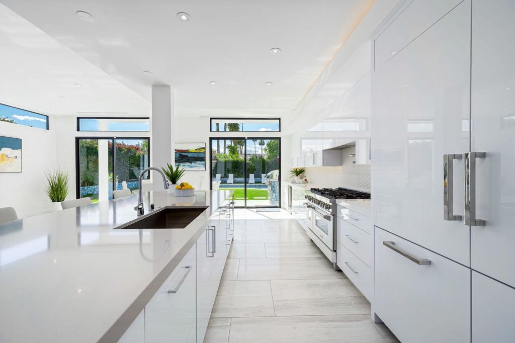 A Modern Sanctuary with Panoramic Views in Indian WellsOffered Fully Remodeled and Designer-FurnishedPerched along one of Indian Wells' most desirable streets, this architecturally reimagined residence offers uninterrupted vistas of Eisenhower Mountain and the surrounding ranges from nearly every room. The home presents a harmonious blend of clean-lined contemporary design and refined comfort, crafted through a meticulous collaboration between architect and interior designer.This four-bedroom, four-bathroom property features a seamless indoor-outdoor flow, where thoughtful design maximizes natural light, privacy, and tranquility. The gourmet kitchen is equipped with a premier appliance suite, complemented by white cabinetry and a generous walk-in pantry. Each bathroom is uniquely appointed with distinctive blue tilework, offering a cohesive yet individual aesthetic throughout.Outdoors, a lushly landscaped backyard sets the tone for elevated desert living--complete with a pristine pool and spa, built-in BBQ, and outdoor shower. The oversized garage with epoxy flooring and built-in storage enhances the property's practical appeal, while two solar systems contribute to sustainability and energy efficiency.Every space within the home is purposefully considered, from the elegantly appointed guest suites--each with a private bath--to the serene owner's suite, all oriented to capture breathtaking mountain views. Whether hosting guests or enjoying a quiet morning coffee, the atmosphere remains one of serene luxury and effortless sophistication.Offered with all new systems, furnishings, and finishes, this is a rare opportunity to own a turnkey property of architectural and aesthetic excellence in Indian Wells.