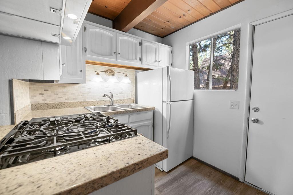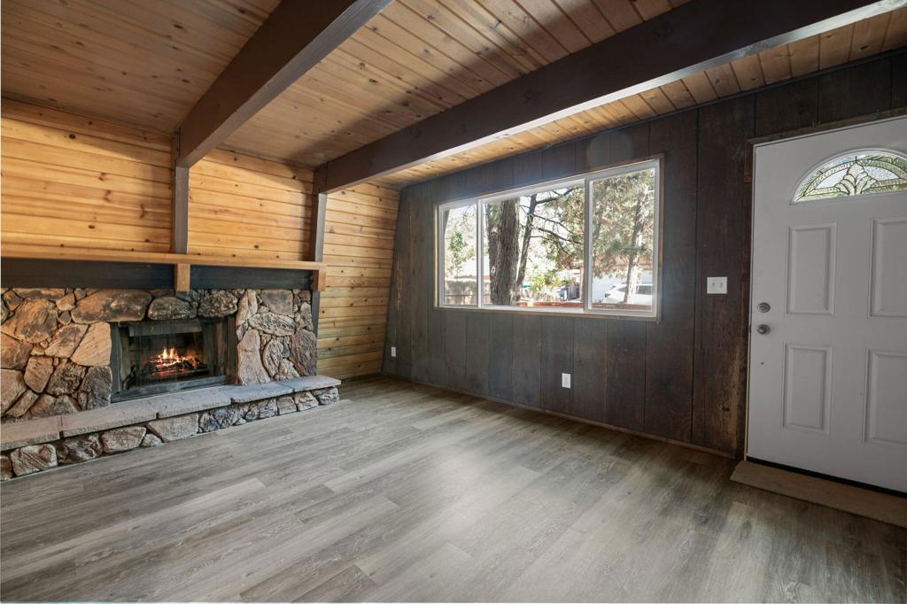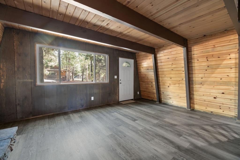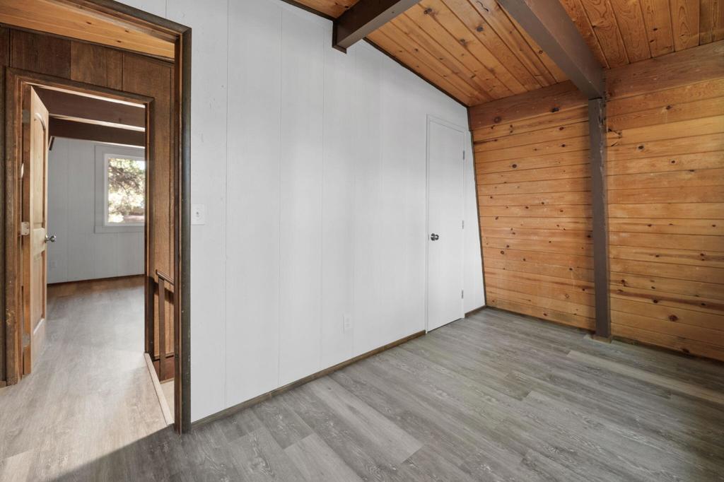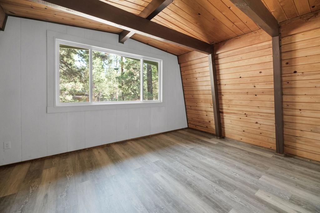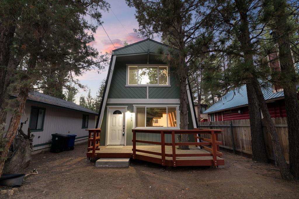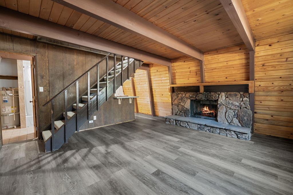Nicely Remodeled Gambrel on the Quiet Side of Town. This cute cabin has been gone over with a loving hand. New roof, exterior paint and redone deck. Inside boasts new laminate flooring, redone kitchen and bathroom with fresh paint and a new water heater. New vanity and tile and fixtures in the bathroom. High beamed wood ceilings. Good sized bedrooms. Close to the national forest and trails. Great price on a great cabin.