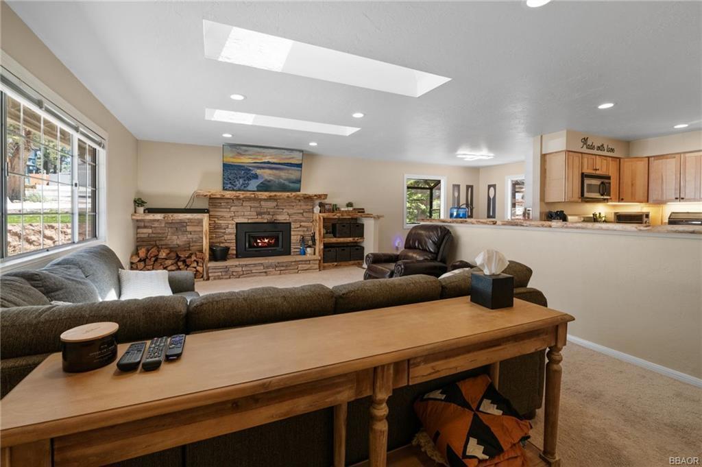 This beautiful home is located in the very desirable Fox Farm area of Big Bear Lake. Situated on a quiet cul-de-sac street, just a few minutes to shopping, both ski resorts and Big Bear Lake. The updated kitchen is equipped with stainless steel appliances, gorgeous granite counters, and an open floorpan to the living room. There is a lovely stone fireplace in the living room for those cold winter nights...or relax in the separate family room, also equipped with a stone fireplace. There are 3 large bedrooms and 3 bathrooms, plenty of room for family and friends to enjoy and have their own space. The living room has 2 skylights, letting in tons of natural light, and the wood mantel above the fireplace adds charm to the home. The back deck overlooks the spacious, all fenced in yard. There is also a dog-run out back for your furry friends to hang out in and stay safe. Other upgrades include fresh paint inside and out, a convenient workspace with barn door sliders in the downstairs family room and an Ikea wall-mounted storage area with glass doors in the dining area. This charming home is just waiting to be enjoyed by it's next owners...full-time, second home or AirBNB are all great possibilities!