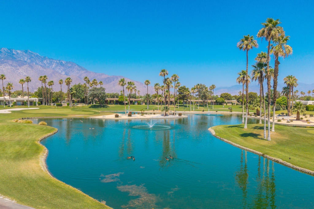 Fabulous Location.. View of the lakes, mountains & fairways, located on Lagos#3, you can enjoy living in this beautiful, super clean 1 bedroom, 2 full bath condo. Owners are meticulous in maintaining this condo. Super nice Tile thru-out, Shutters, Ceiling Fans, New Appliance, turnkey furnished. Has Glass Storm Drain front door, Extended back patio area.. Close to a pool/spa perfect to unwind. Single electric garage, New stackable washer/dryer in unit. This condo is Immaculate with excellent rental history.. Located at The Desert Princess Country Club! The Desert Princess has an affordable 27-hole PGA Championship golf course, no Tee-time lotteries, no initiation fees, rated among the best in the valley by GOLF DIGEST. HOA includes Highspeed wifi, cable TV, Tennis Courts, Pickleball courts, Racquetball courts, Indoor fitness Center, Ping Pong, Bocce Ball & basketball.. 34 pools/spas thru-out our community! The club house offers fabulous food.. Great ambience! This quiet community is away from the noise yet minutes from everything that is in Palm Springs,, restaurants, shopping, casinos, an international airport, the Tramway, Art Museums, Theaters, Acrisure Arena, hiking trails and the Street Fair! Easy to showLand lease expires 2069. Please read private remarks.