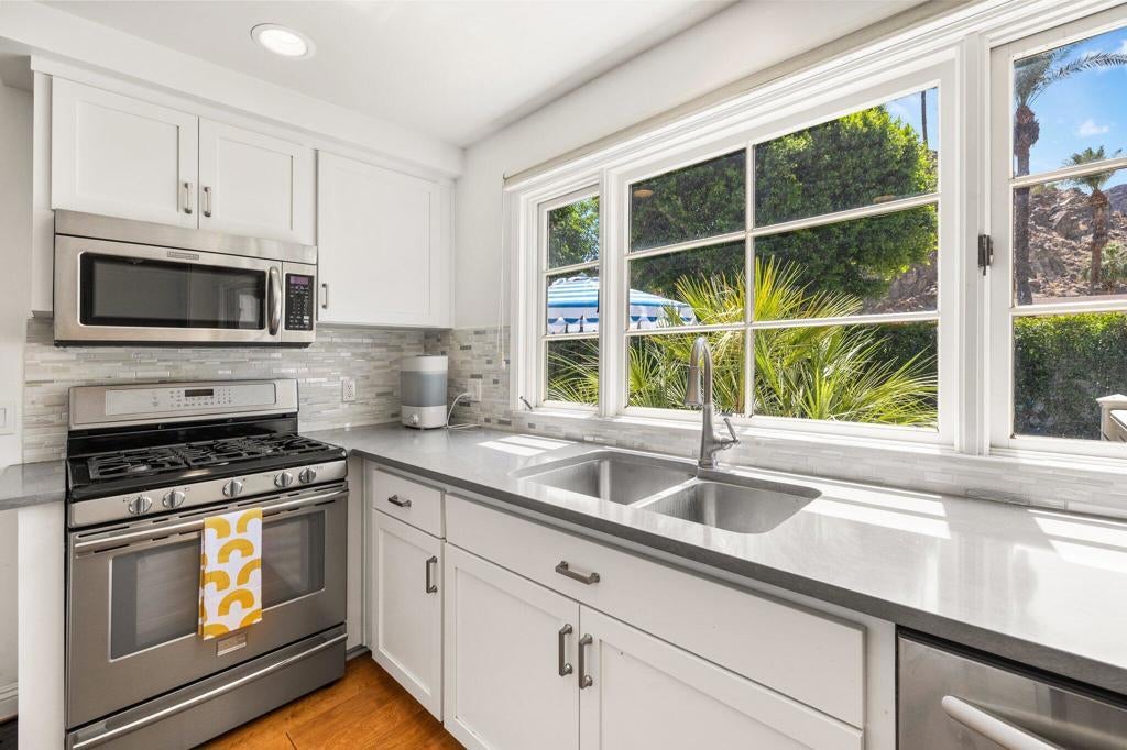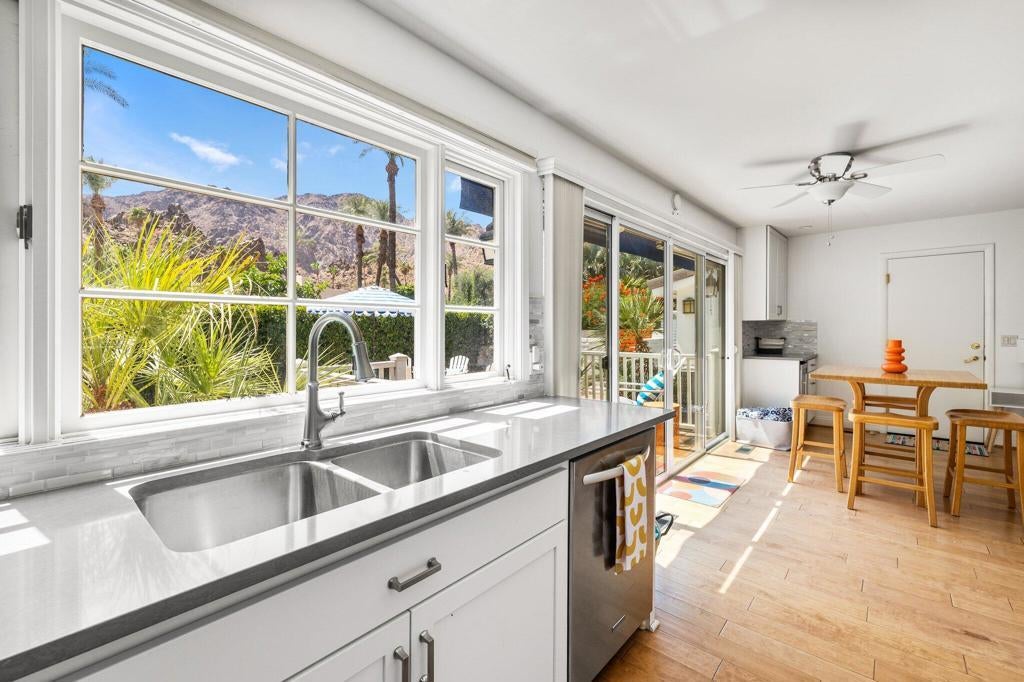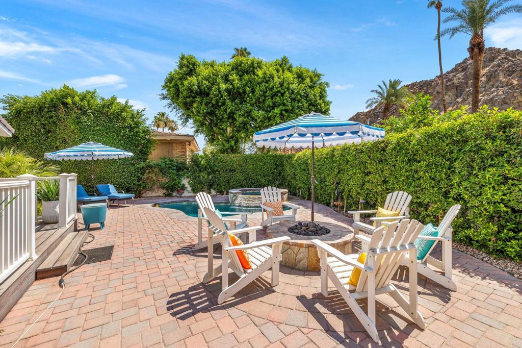 Welcome to your dream oasis at 77056 Desi Dr, Indian Wells, CA! This beautifully renovated single-family home offers a perfect blend of modern luxury and ultimate comfort. Spanning 1,916 square feet, this residence boasts three bedrooms and two elegant bathrooms, fully furnished to cater to your lifestyle needs. Behind the historic gates of Indian Wells Country Club, but without any HOA Dues!!Step inside to experience the allure of hardwood floors and the ambiance created by recessed lighting and exquisite chandeliers. The open floor plan seamlessly connects the living areas, making it ideal for both entertaining and everyday living. A dedicated home office provides a tranquil space for work or study.The kitchen, designed with modern conveniences in mind, flows effortlessly into the dining and living areas, creating a harmonious living experience. Each room is adorned with tasteful furnishings, ensuring you feel right at home from the moment you enter.Outside, your private retreat awaits. Relax by the pool or unwind in the spa, all set within a beautifully landscaped back yard. Enjoy alfresco dining on the expansive deck or cozy up by the fire pit on cool evenings. The private patio, enhanced with awnings, offers a serene escape for relaxation and leisure with unlimited mountain views.Discover the epitome of luxury living in a sought-after Indian Wells location. Don't miss this opportunity to own a piece of paradise, where every detail has been carefully curated for the discerning homeowner.