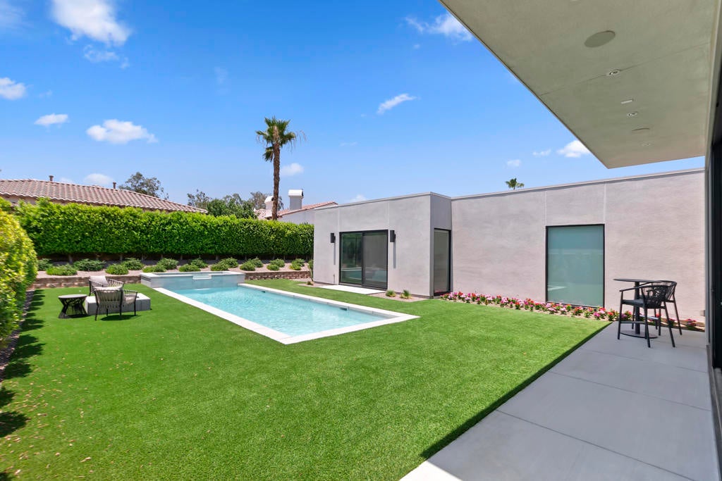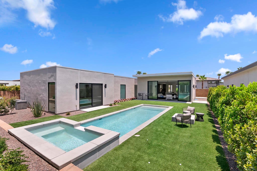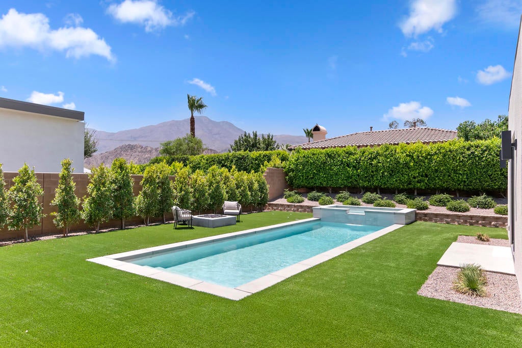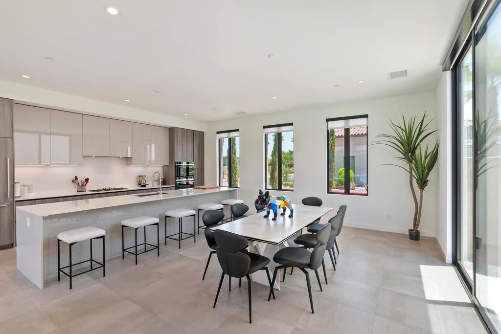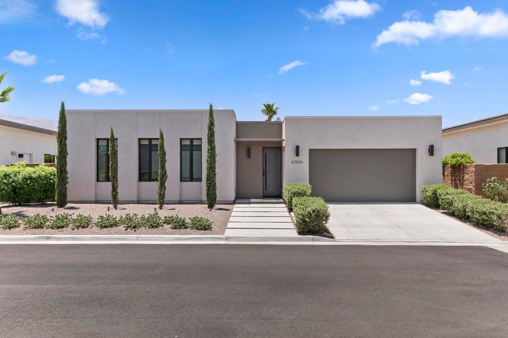 Discover contemporary desert living in this beauituflly furnished 3 bedroom, 3.5 bath home located in the exclusive gated community of Canterra at Coral Mountain. This modernism - inspired residence offers seamless indoor/outdoor living with abundant light and thoughtfully designed open spaces. Each bedroom comes with its own private ensuite bath creating comfort and privacy for residents and guests alike. The great room flows effortlessly into the chefs kitchen and out to the backyard oasis - perfect for entertaining or quiet relaxation. Enjoy breathtaking mountain views while lounging by your private pool and spa. Mulitple outdoor seating and dinning areas allow you to take full advantage of the desert lifestyle, wether its morning coffee with the sunrise or evening cocktails at sunset! Enjoy the proximety to the endless hiking trails that span the Quarry Golf Course! Now accepting appliations for the 2025/2026 season - available long term
