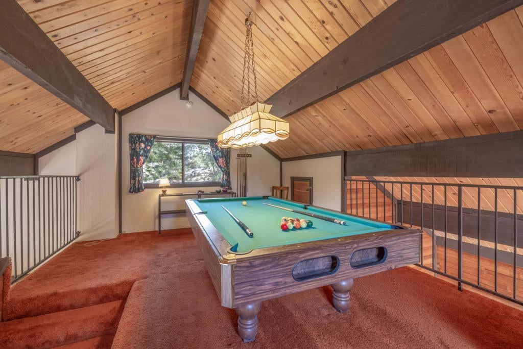 Nestled among the trees, this charming two-bedroom, two-bathroom home offers 1,832 square feet of inviting living space. The desirable reverse floorplan brings the main living area upstairs, creating a true ''treehouse'' feel--perfect for relaxing or entertaining with a view. A large loft adds flexibility, whether you're looking for a home office, guest space, or cozy den. The loft currently has a pool table, which is included in the sale. Plenty of windows throughout the home flood the space with natural light, making every room feel bright and airy. There is an extra room for storage off of the front porch. Surrounded by nature, this unique home combines comfort, functionality, and serene surroundings.