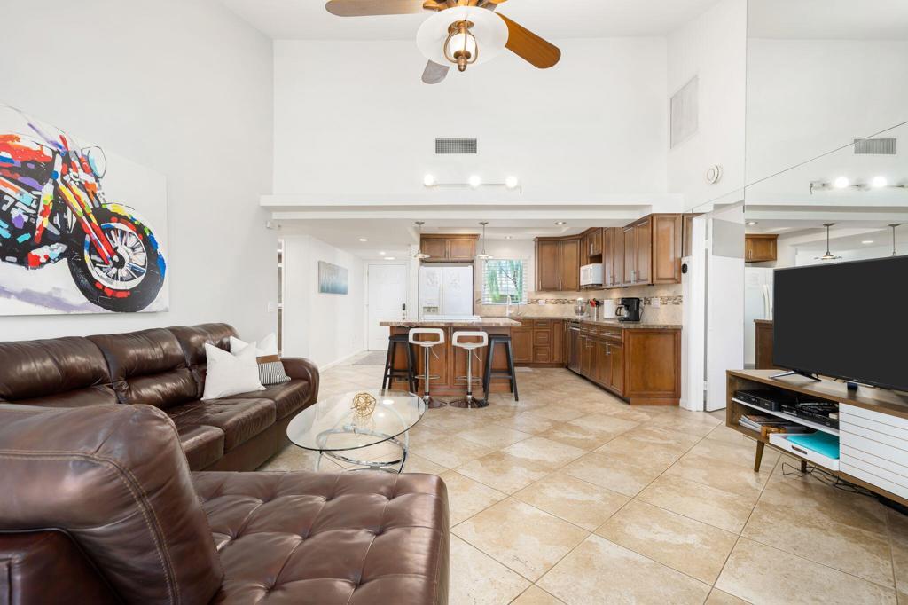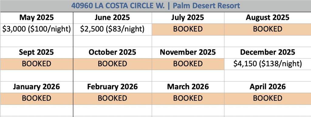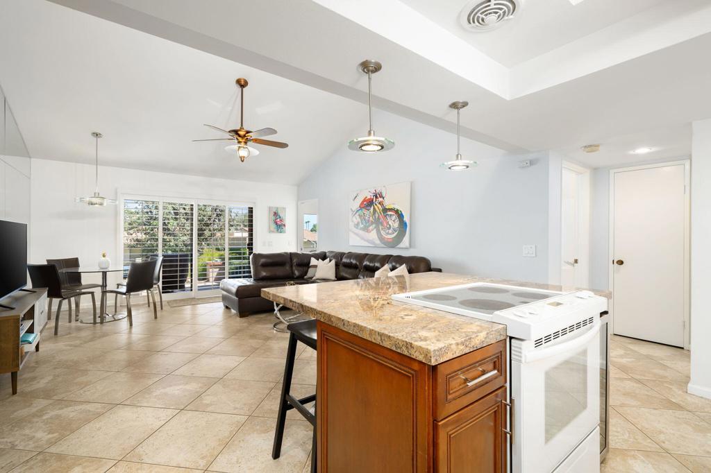 Available Dec 2025 only. FURNISHED MONTHLY RENTAL in Palm Desert Resort, Fully RENOVATED 3-bedroom, 2-full bath. Pricing varies by month see LAST photo for pricing- inquire for longer stays. Landlord pays all utilities, deluxe cable package, upgraded wifi, all appliances, full size W/D included! Single story home, no stairs, no unit above. King in Master, Queen in Guest, Queen memory foam sleeper sofa in 3BD/ office. NO carpet. Enjoy the security and luxury of Palm Desert Resort Country Club with SO many fun amenities! One of the LARGEST condos in the entire community, this home has been UPDATED top to bottom, OPEN FLOOR PLAN, kitchen with LARGE KITCHEN ISLAND, granite slab countertops and new paint throughout. Attached 2-car GARAGE with epoxy flooring and TONS of built in STORAGE. Two large bathrooms with WALK IN SHOWERS, plus a separate jacuzzi tub. EXTENDED PATIO with 180 degree mountain views and steps from the pool! As a tenant, you can enjoy the 18-hole golf course, clubhouse, bar/dining, pro shop, 14 lighted tennis courts, 20 community pools, pickle ball. Come enjoy the sunshine in Palm Desert. Turnkey furnished, ALL APPLIANCES & FURNITURE INCLUDED, private BBQ. No pets or smoking.
