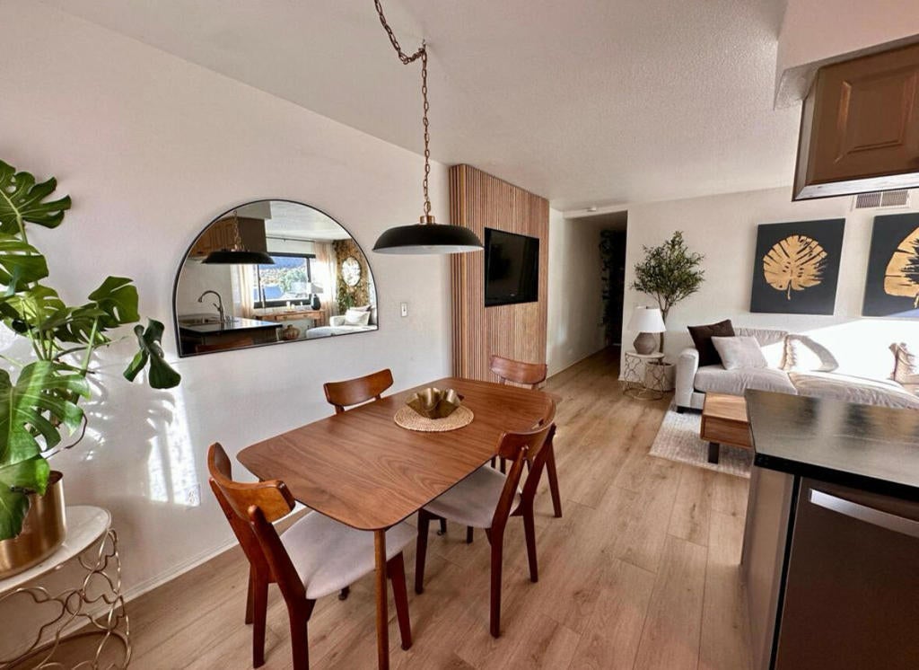 Don't miss this limited-time offer! Move in before July 15th, 2025, and enjoy your first month of rent completely FREE! Located in a serene neighborhood, this 2-bedroom,1-bathroom apartment offers breathtaking mountain views. Situated on the upper floor, this 924 sq. ft offers comfort and convenience and is being offered fully furnished. Inside, you will discover a recently remodeled interior with plenty of storage and natural light in all the rooms. The kitchen is equipped with essential appliances including a dishwasher, freezer, refrigerator, microwave, and a convenient walk-in pantry. The apartment comes with a shared 2-car garage that provides secure parking for your vehicle, and a washer & dryer located downstairs of the unit. The community includes 2 pools and spas, additionally, residents can enjoy easy access to nearby amenities such as the Cross Trail Hike, The Living Desert, great school district and El Paseo shopping district and fine dining.