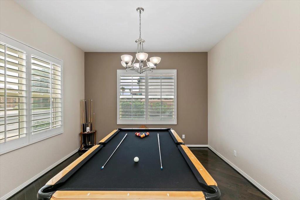 Welcome to this beautifully upgraded 4 bedroom, 3 bathroom Palazzo home that truly checks all the boxes! Step inside to find rich wood flooring throughout and a spacious, open-concept layout perfect for entertaining. The gourmet kitchen features granite countertops, a full tile backsplash, stainless steel appliances, and ample cabinet space.Retreat to the expansive backyard, your private oasis, complete with a sparkling pool, raised spa, and plenty of room for outdoor living. Granite surfaces continue into the bathrooms, adding a touch of luxury to every corner of the home. This home is a must-see! Schedule your private tour today and fall in love with everything it has to offer. VA Loan is assumable by New Buyer.