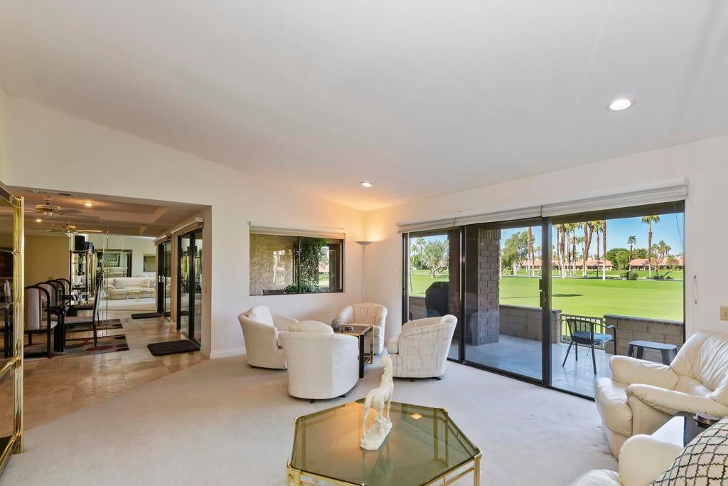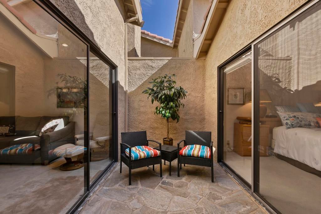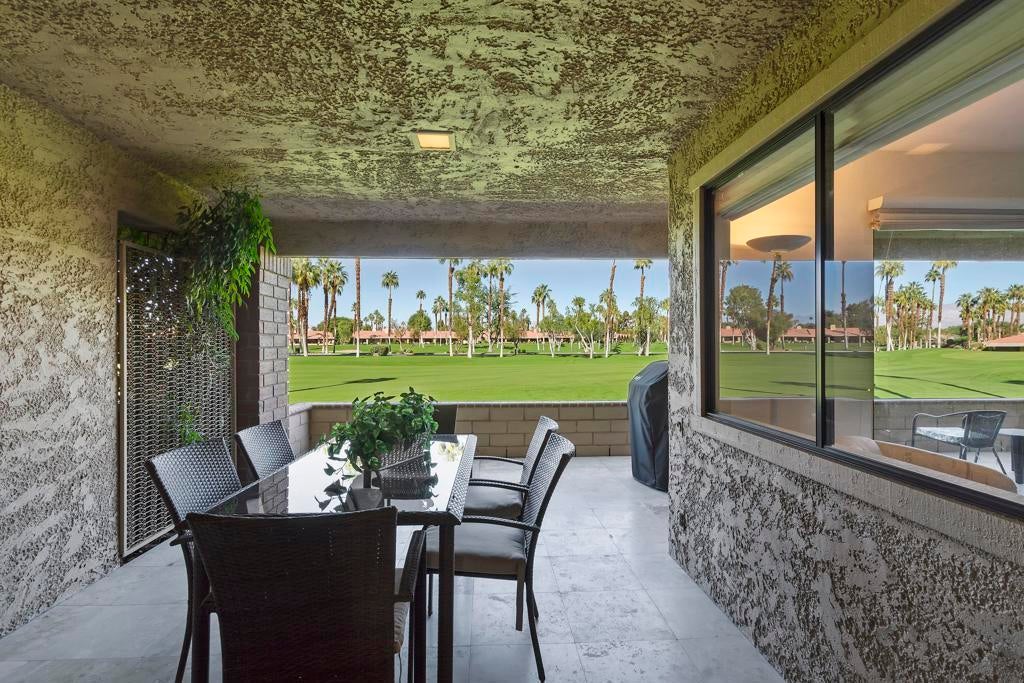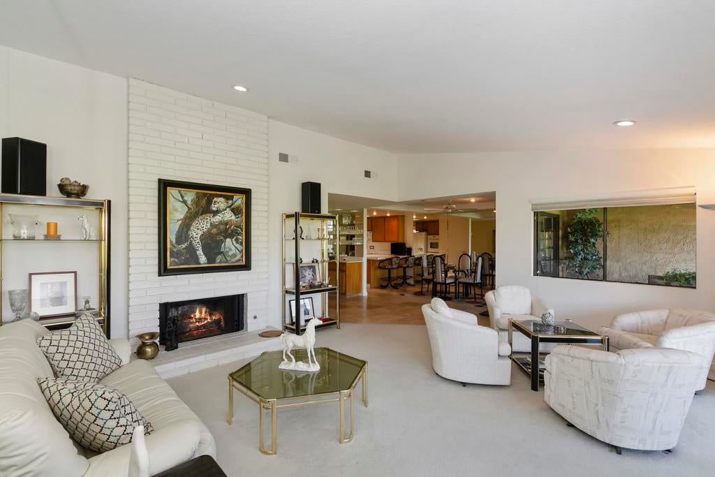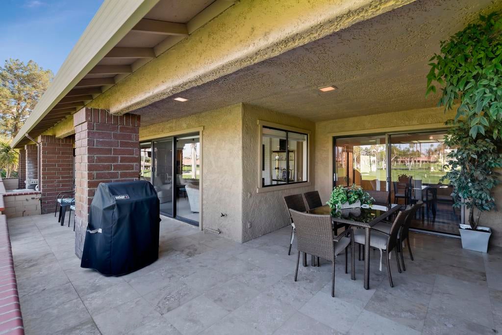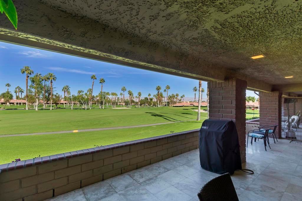 LOCATION, LOCATION! This home has a beautiful location on a quiet street in Chaparral Country Club with panoramic views of mountains and two fairways. Upon entering this 3 bedroom, 2 bath home you are captured by the upgraded travertine floors, beautiful plush carpeting and gorgeous golf course view. High end window treatments complement the vaulted ceilings, recessed lighting and crown molding in the bedrooms. The appliances are updated Jenn-Air units and include 2 built in microwaves, double ovens and a custom stove top. The extended travertine floor patio with privacy wall also has recessed lighting plus two plumbed gas lines and a natural gas BBQ. The atrium has flagstone flooring for low maintenance and new toilets throughout. Owner to pay first $75 of monthly gas and first $100 of monthly electricity, Tenant to pay any balance. UPDATE: The home is rented thru April 2027.