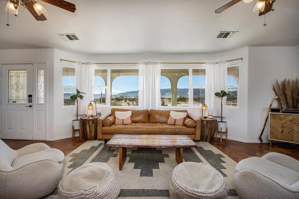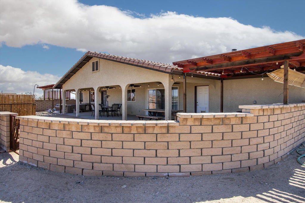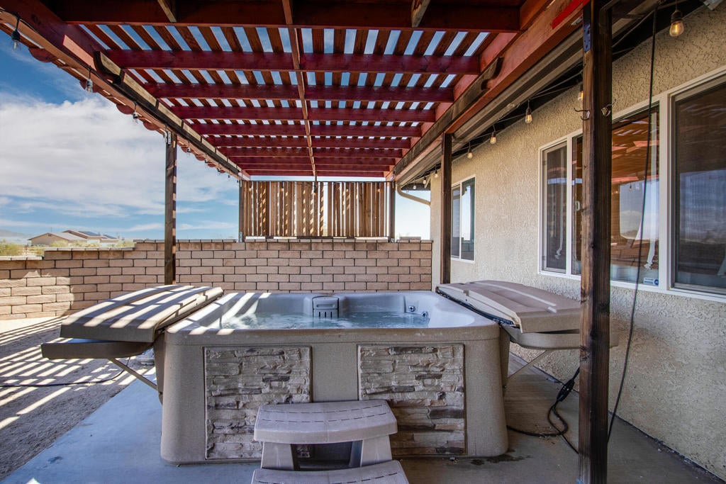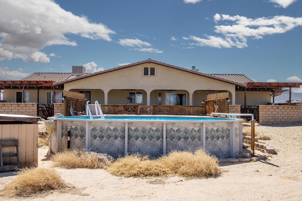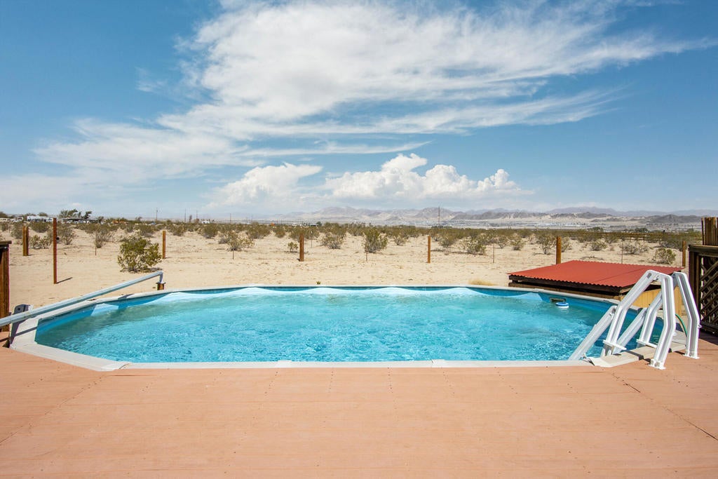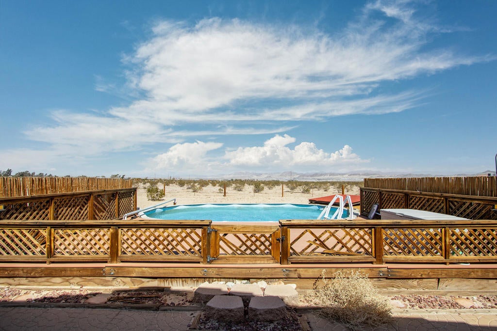 Profitable Desert Oasis, Turnkey Short-Term Rental or Private RetreatWelcome to 72772 Nandina Street, Twentynine Palms, a thriving short-term rental and peaceful desert haven nestled in the heart of the High Desert. Whether you're an investor seeking a high-performing income property or a nature lover looking for a private retreat near Joshua Tree National Park, this home offers the ideal blend of comfort, style, and seclusion.Property Highlights:3 Bedrooms | 2 BathroomsNearly $70,000 in Annual Short-Term Rental IncomeTurnkey Opportunity - Fully Furnished & Guest-ReadyPrivate Well with Water Filtration System - No Water BillAbove-Ground Pool, Hot Tub, Fire Pit & Hammocks2-Car Attached Garage with Built-In StorageSet in an unincorporated area of Twentynine Palms, this spacious home is just 10 minutes from the Marine Corps base making it a great candidate for both short- and long-term rentals.Inside, you'll find warm Saltillo tile flooring throughout the main living spaces, paired with durable luxury vinyl plank (LVP) in the bedrooms for both style and practicality. The open-concept layout is enhanced by elevated ceilings and expansive windows, flooding the home with natural light and breathtaking desert views.The primary suite is a true retreat with a large walk-in closet, private patio access, and a luxurious en suite bath featuring dual vanities, a soaking tub, and a beautifully tiled shower.Outdoor living is a dream with multiple relaxation zones: soak in the hot tub, cool off in the pool, sway in a hammock, or gather around the fire pit under the stars. The covered patio is perfect for morning coffee or evening entertaining.For year-round comfort, the home includes both a central HVAC system and energy-efficient evaporative cooling, offering flexible climate control and energy savings.With a quiet, less-traveled entrance to Joshua Tree National Park just minutes away, this home strikes the perfect balance between accessibility and peaceful seclusion.