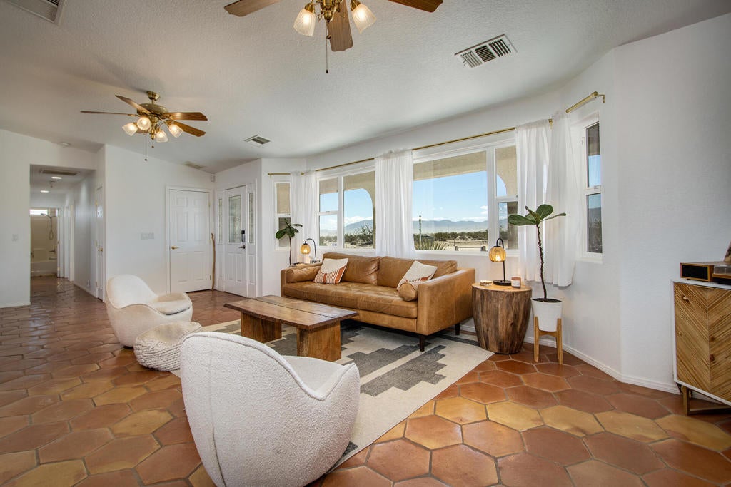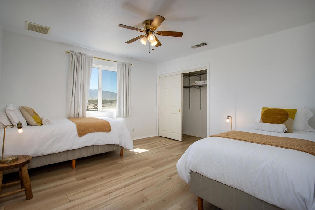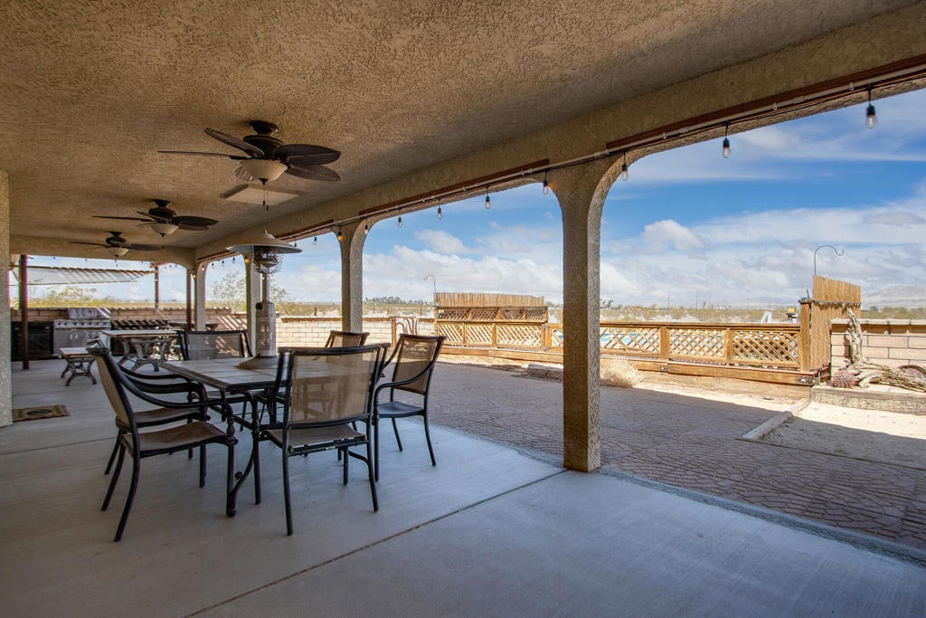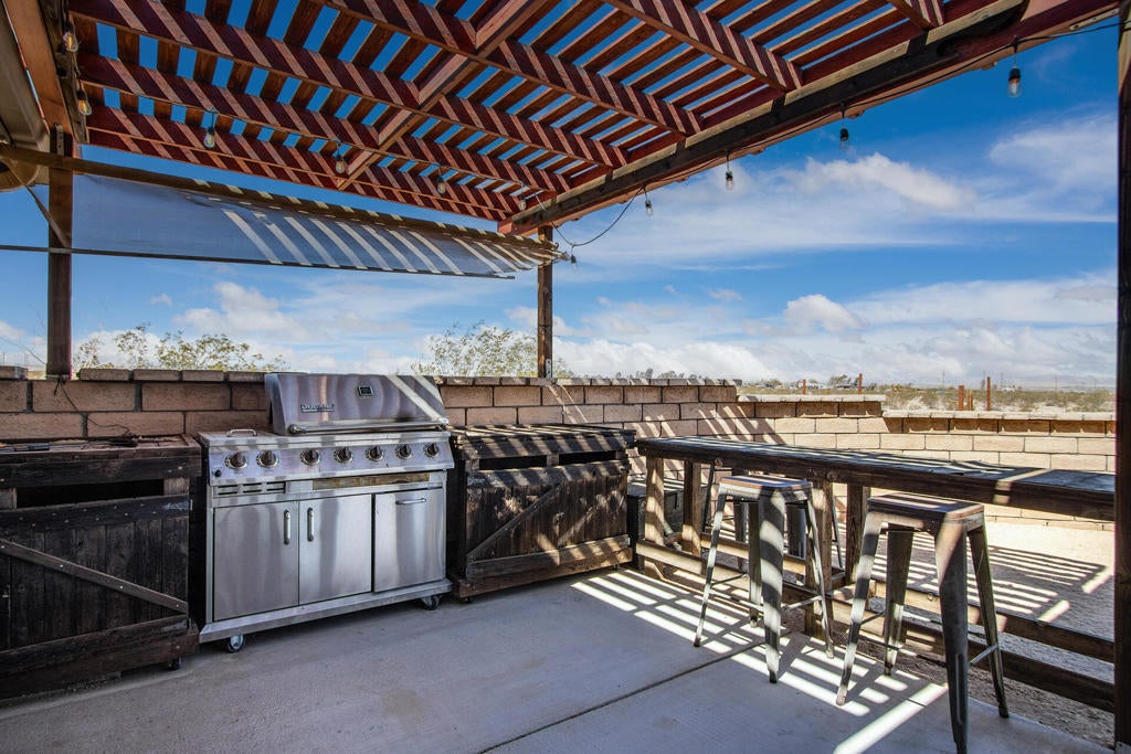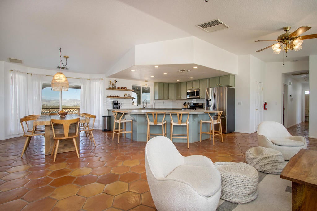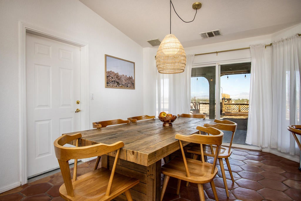 Profitable Desert Oasis, Turnkey Short-Term Rental or Private RetreatWelcome to 72772 Nandina Street, Twentynine Palms, a thriving short-term rental and peaceful desert haven nestled in the heart of the High Desert. Whether you're an investor seeking a high-performing income property or a nature lover looking for a private retreat near Joshua Tree National Park, this home offers the ideal blend of comfort, style, and seclusion.Property Highlights:3 Bedrooms | 2 BathroomsNearly $70,000 in Annual Short-Term Rental IncomeTurnkey Opportunity - Fully Furnished & Guest-ReadyPrivate Well with Water Filtration System - No Water BillAbove-Ground Pool, Hot Tub, Fire Pit & Hammocks2-Car Attached Garage with Built-In StorageSet in an unincorporated area of Twentynine Palms, this spacious home is just 10 minutes from the Marine Corps base making it a great candidate for both short- and long-term rentals.Inside, you'll find warm Saltillo tile flooring throughout the main living spaces, paired with durable luxury vinyl plank (LVP) in the bedrooms for both style and practicality. The open-concept layout is enhanced by elevated ceilings and expansive windows, flooding the home with natural light and breathtaking desert views.The primary suite is a true retreat with a large walk-in closet, private patio access, and a luxurious en suite bath featuring dual vanities, a soaking tub, and a beautifully tiled shower.Outdoor living is a dream with multiple relaxation zones: soak in the hot tub, cool off in the pool, sway in a hammock, or gather around the fire pit under the stars. The covered patio is perfect for morning coffee or evening entertaining.For year-round comfort, the home includes both a central HVAC system and energy-efficient evaporative cooling, offering flexible climate control and energy savings.With a quiet, less-traveled entrance to Joshua Tree National Park just minutes away, this home strikes the perfect balance between accessibility and peaceful seclusion.
