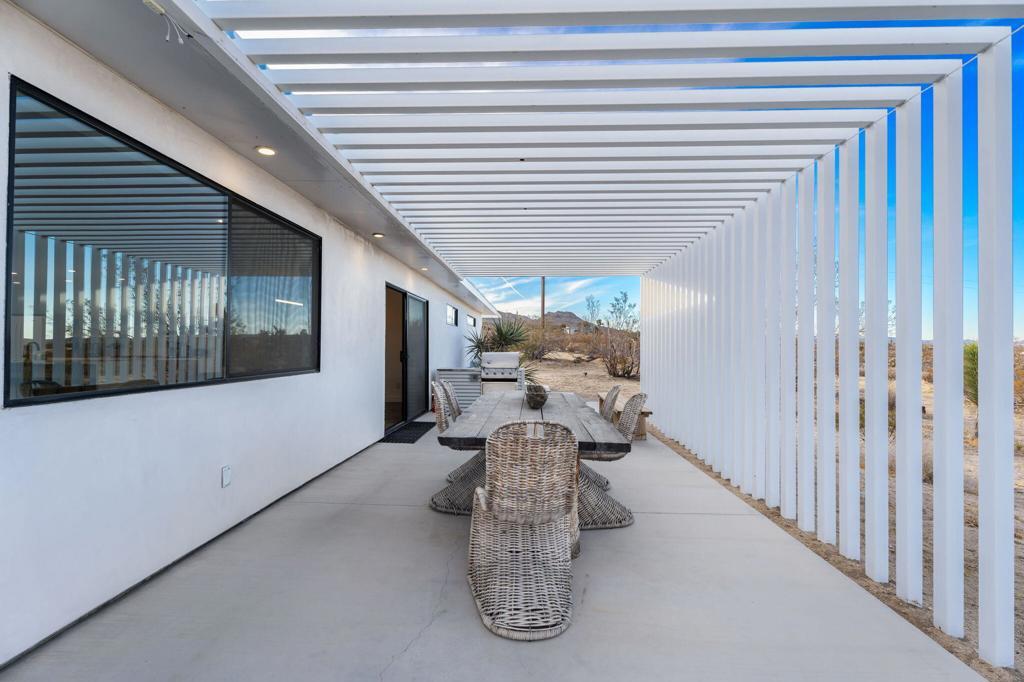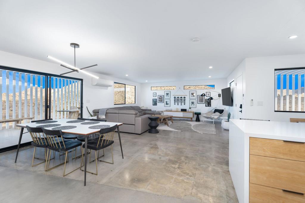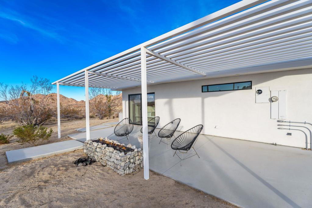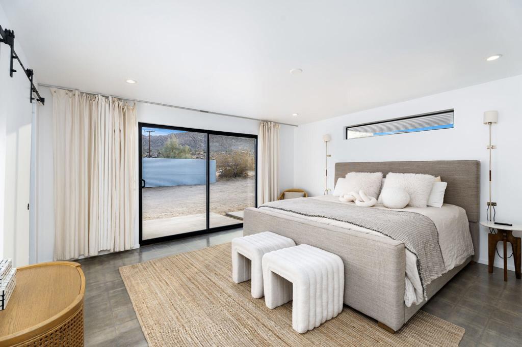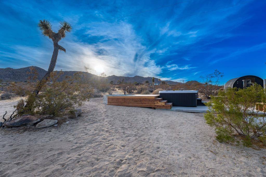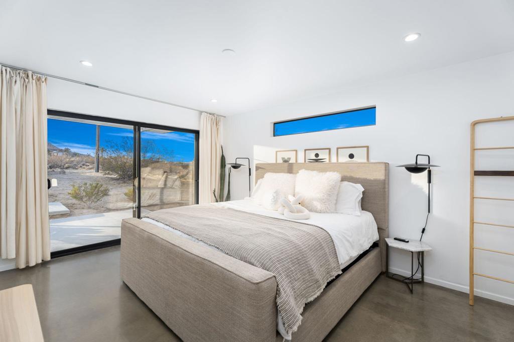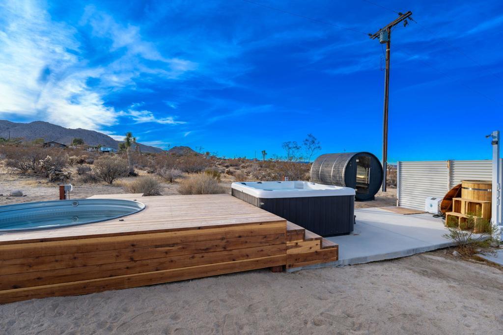 Tucked away on 3.5 private acres (two parcels), just minutes from Joshua Tree National Park, Zebra Shadow offers the perfect blend of modern luxury and serene desert beauty. This stunning home is designed for those who crave privacy, style, and connection to nature while still being close to everything Joshua Tree has to offer.With minimalist interiors, floor-to-ceiling windows, and an open-concept layout, the home is bathed in natural light, creating a peaceful and airy atmosphere. The two-bedroom, two-bathroom design provides a comfortable retreat, complete with spa-like rain showers and contemporary finishes. Outside, the spacious patio with a fire pit, dining area, and grill invites you to relax under the vast desert sky. A few short steps away is your relaxation station with a cold plunge, hot tub, sauna and cowboy tub/pool.Ideally located just one minute from Joshua Tree Village and three minutes from the park entrance, Zebra Shadow also offers easy access to local hotspots like Pappy & Harriet's, Pioneertown, and La Copine. Fully equipped with AC, heating, washer/dryer, and modern appliances, this home is move-in ready and perfect as a private retreat or high-demand short-term rental.Whether you're looking for a weekend escape or an investment opportunity, Zebra Shadow is a rare gem in the heart of the desert. Schedule your private tour today!