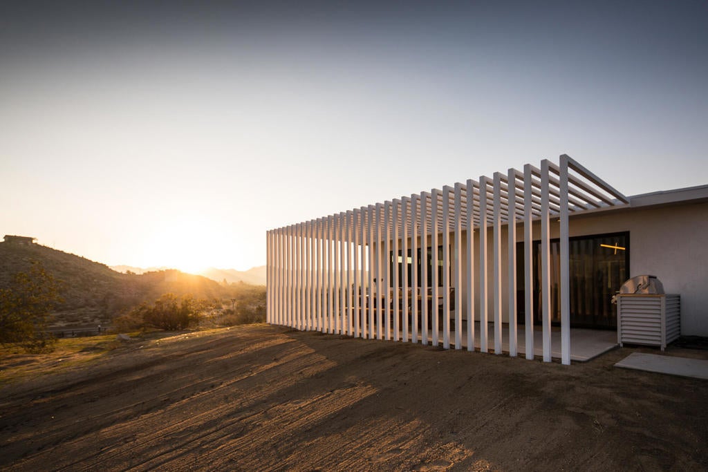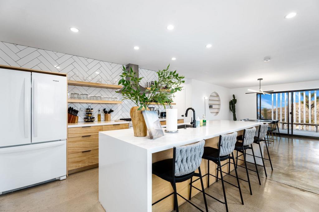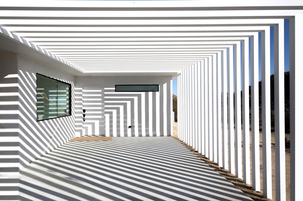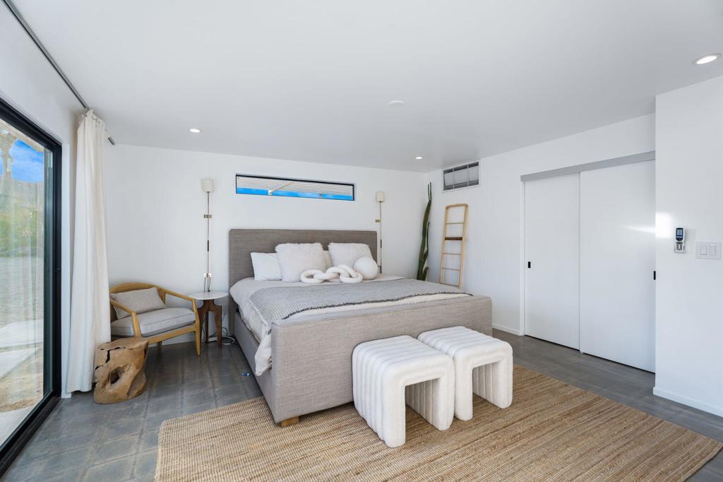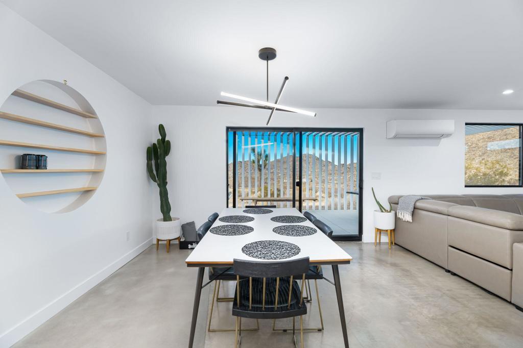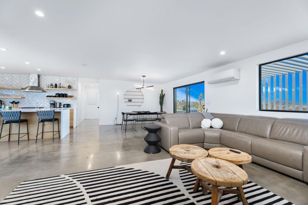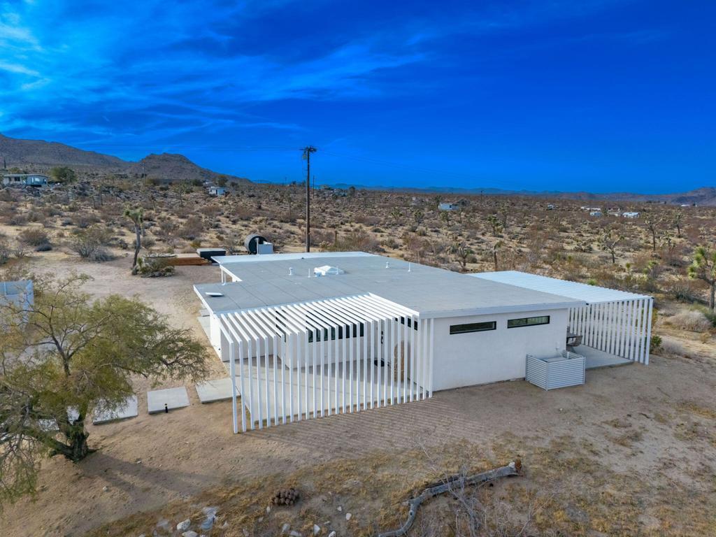 Tucked away on 3.5 private acres (two parcels), just minutes from Joshua Tree National Park, Zebra Shadow offers the perfect blend of modern luxury and serene desert beauty. This stunning home is designed for those who crave privacy, style, and connection to nature while still being close to everything Joshua Tree has to offer.With minimalist interiors, floor-to-ceiling windows, and an open-concept layout, the home is bathed in natural light, creating a peaceful and airy atmosphere. The two-bedroom, two-bathroom design provides a comfortable retreat, complete with spa-like rain showers and contemporary finishes. Outside, the spacious patio with a fire pit, dining area, and grill invites you to relax under the vast desert sky. A few short steps away is your relaxation station with a cold plunge, hot tub, sauna and cowboy tub/pool.Ideally located just one minute from Joshua Tree Village and three minutes from the park entrance, Zebra Shadow also offers easy access to local hotspots like Pappy & Harriet's, Pioneertown, and La Copine. Fully equipped with AC, heating, washer/dryer, and modern appliances, this home is move-in ready and perfect as a private retreat or high-demand short-term rental.Whether you're looking for a weekend escape or an investment opportunity, Zebra Shadow is a rare gem in the heart of the desert. Schedule your private tour today!