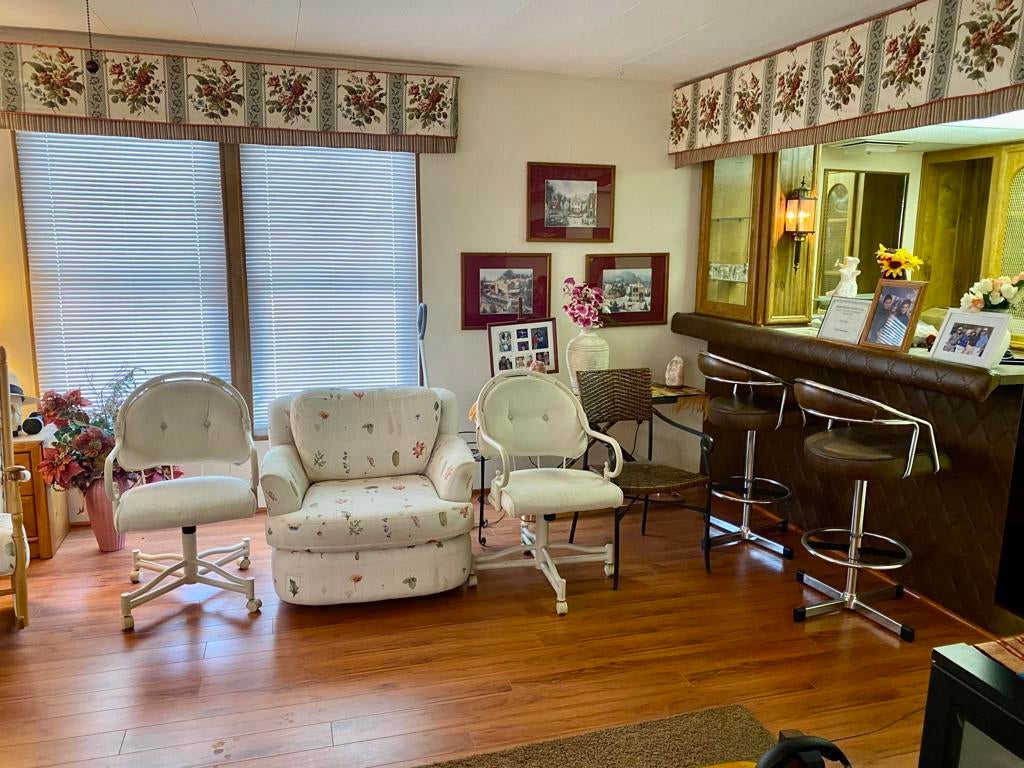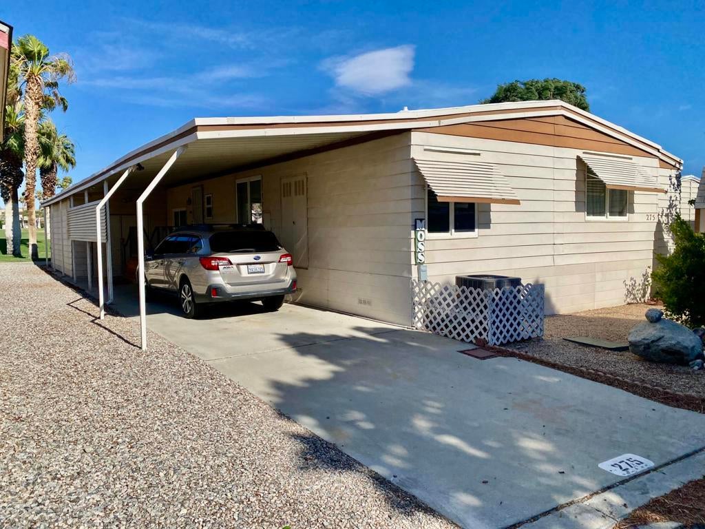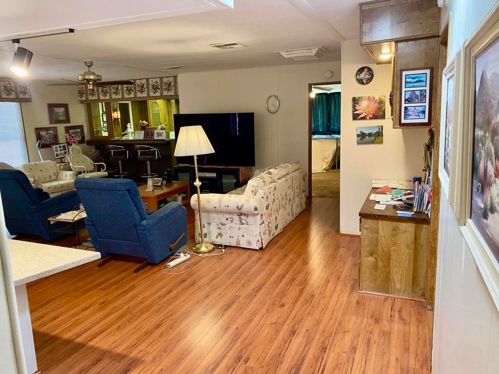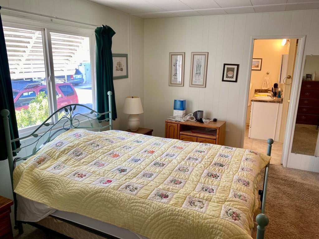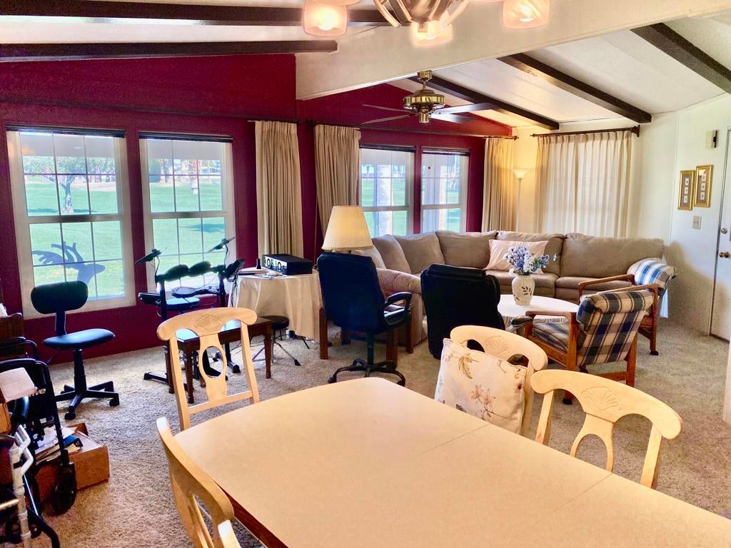 Discover serene resort living in the Hidden Springs golf course community. Large and well maintained 3 bed, 2 bath manufactured home boasting over eighteen hundred square feet of comfortable living space. Living room with vaulted ceilings adorned with English Tudor inspirited beams and views of the manicured fairway. Formal dining area. Long front deck for hosting friends and family at the edge of the golf course. Spacious family room that comes with a wet bar alcove. Kitchen with breakfast bar, stove, stainless steel refrigerator, dual basin sink, pantry, & ample cupboards. Master bedroom with walk-in closet, master bath with raindrop shower, two basin vanity and plenty of cabinets space. Guest bedroom with private door access to the second bathroom. Third bedroom converted to a work shop. Laundry room with office. Storage shed. Carport with two parking spaces. Indoor parking is available for your golf cart. Drive your golf cart to the clubhouse to enjoy the full fitness center, jacuzzi/spa, and pool, all on site. There's more: a community kitchen, picnic and BBQ areas, dog park, garden plots, RV storage, and sport courts including pickleball, tennis, bocce, and shuffleboard. Thoughtfully curated events bring the neighborhood together. Schedule your private tour today to experience firsthand the engaging lifestyle this community provide, you deserve a place that feels like home. (Most of the furniture and furnishings may stay or may be available for negotiation.)