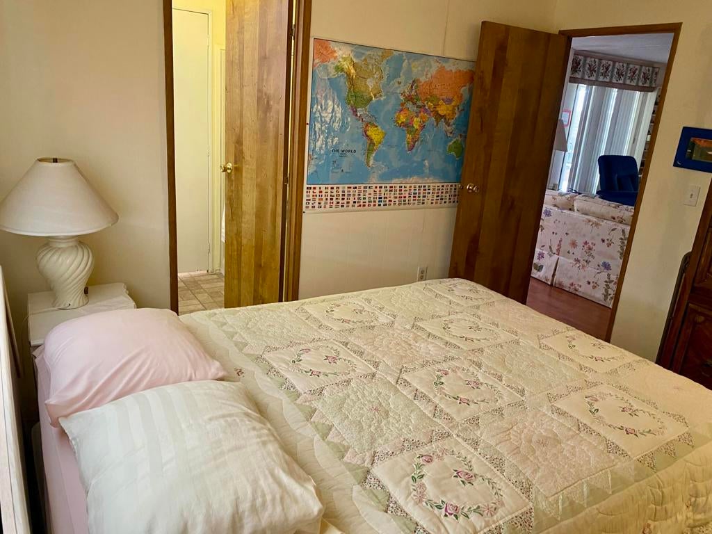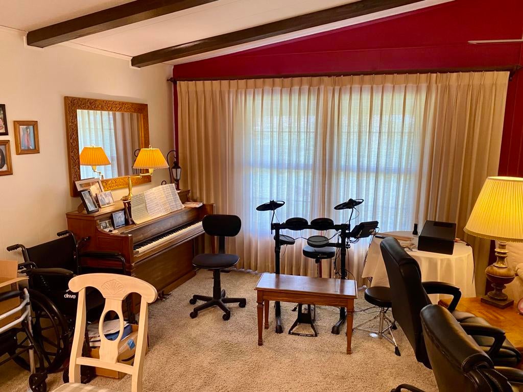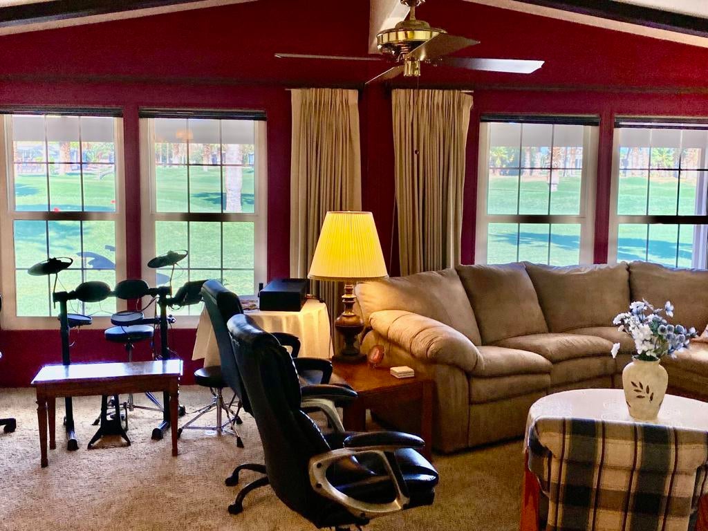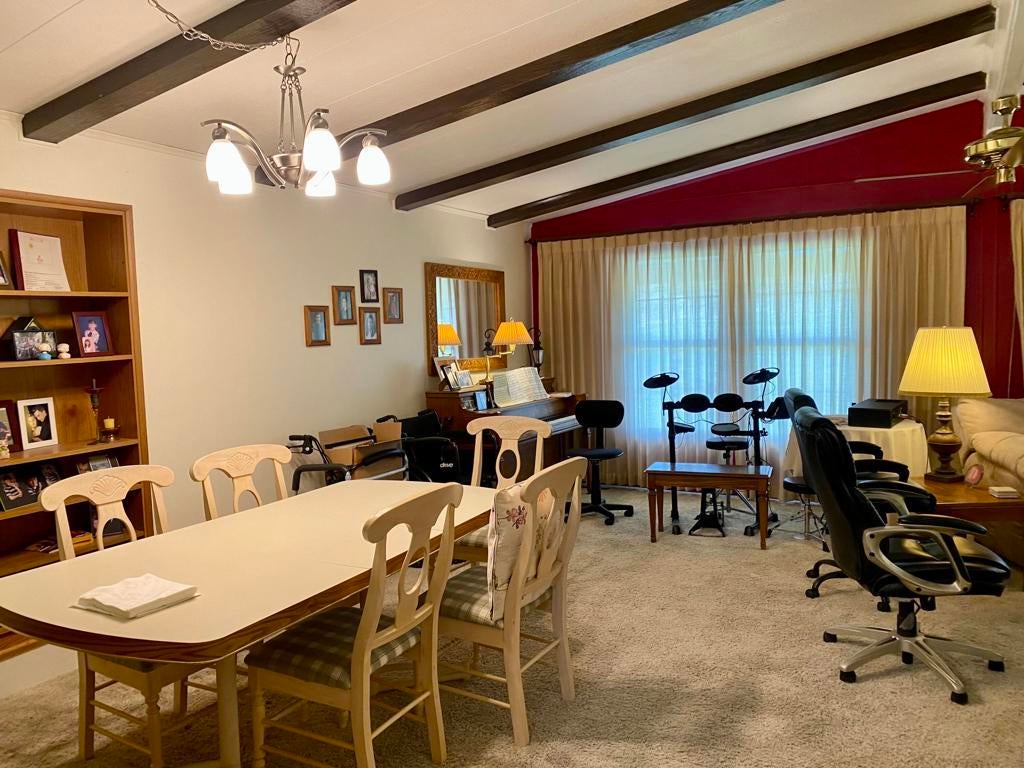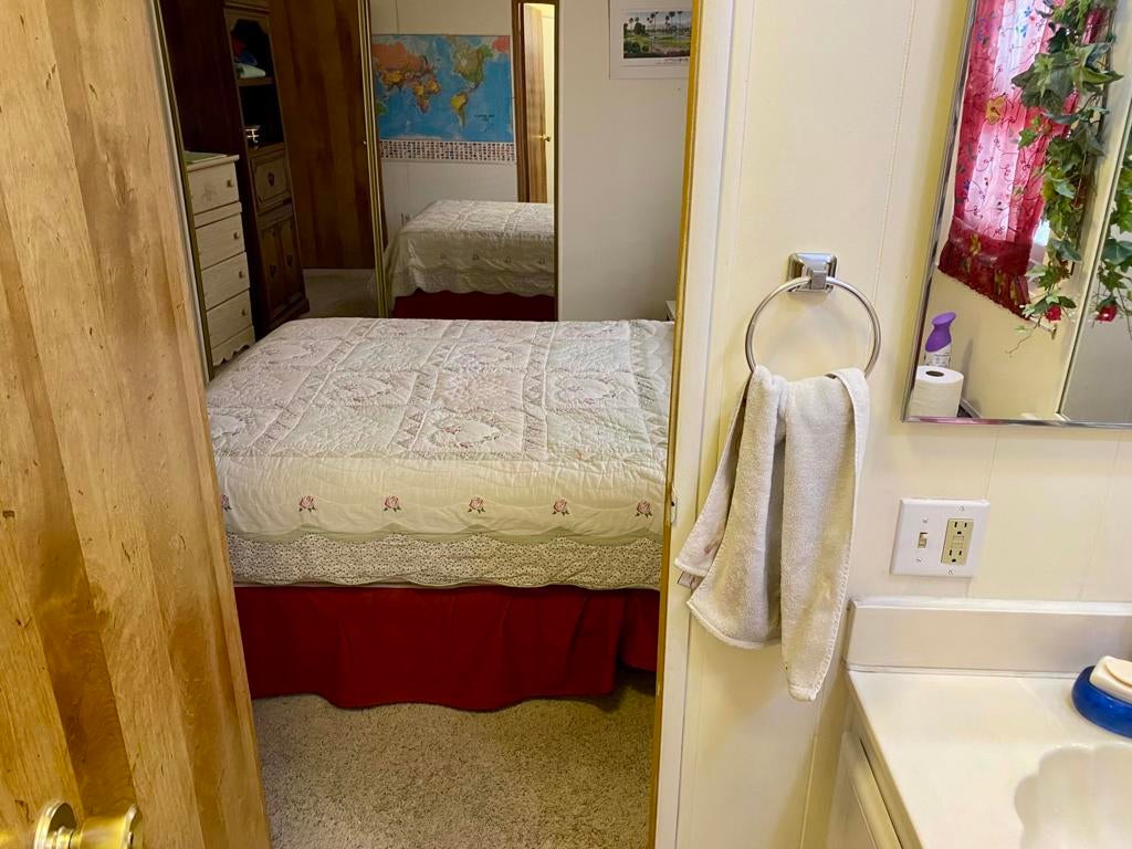 Discover serene resort living in the Hidden Springs golf course community. Large and well maintained 3 bed, 2 bath manufactured home boasting over eighteen hundred square feet of comfortable living space. Living room with vaulted ceilings adorned with English Tudor inspirited beams and views of the manicured fairway. Formal dining area. Long front deck for hosting friends and family at the edge of the golf course. Spacious family room that comes with a wet bar alcove. Kitchen with breakfast bar, stove, stainless steel refrigerator, dual basin sink, pantry, & ample cupboards. Master bedroom with walk-in closet, master bath with raindrop shower, two basin vanity and plenty of cabinets space. Guest bedroom with private door access to the second bathroom. Third bedroom converted to a work shop. Laundry room with office. Storage shed. Carport with two parking spaces. Indoor parking is available for your golf cart. Drive your golf cart to the clubhouse to enjoy the full fitness center, jacuzzi/spa, and pool, all on site. There's more: a community kitchen, picnic and BBQ areas, dog park, garden plots, RV storage, and sport courts including pickleball, tennis, bocce, and shuffleboard. Thoughtfully curated events bring the neighborhood together. Schedule your private tour today to experience firsthand the engaging lifestyle this community provide, you deserve a place that feels like home. (Most of the furniture and furnishings may stay or may be available for negotiation.)