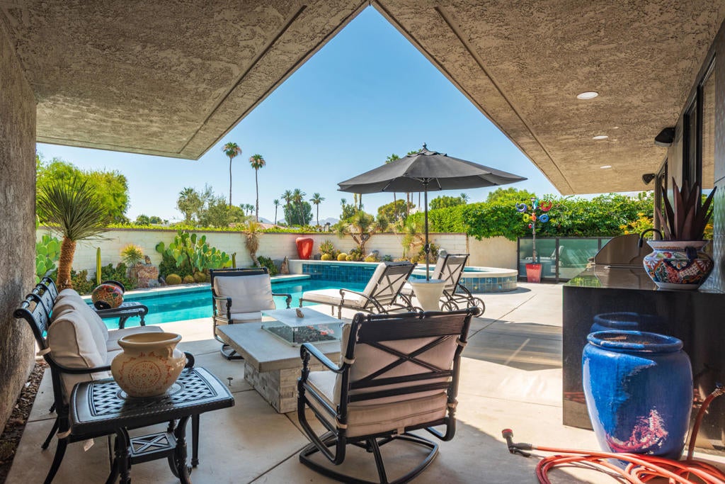 **LEASED 2026**Completely updated stunning home with 3 master suites plus a 4th bedroom with bath; perfect vacation home for families to enjoy the desert with country club living and the private pool. This residence epitomizes the best by blending the indoors & out to create an idyllic desert retreat with a lovely Santa Rosa Mountains view to the South and lush Greenbelt views to the west. Enjoy a private outdoor kitchen, firepit and amazing views. Home has solar to help keep the cost to a minimum. For a small fee, tenant can enjoy the clubhouse, Oasis Cafe, tennis courts, pickle ball courts, fitness center, spa, classes and much more! There are 46 community pools/spas. Golf is not included. Minutes to fine dining & shopping, museums, galleries, world-class hospital, & El Paseo. The Springs Country Club Rancho Mirage, It's Where You Belong!