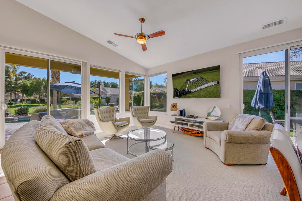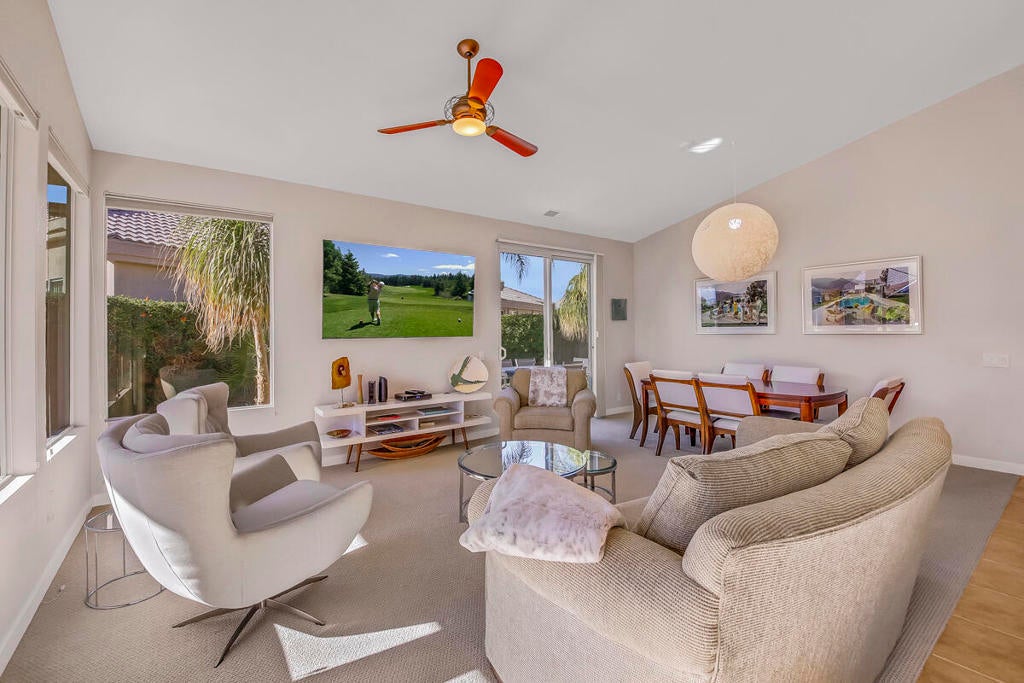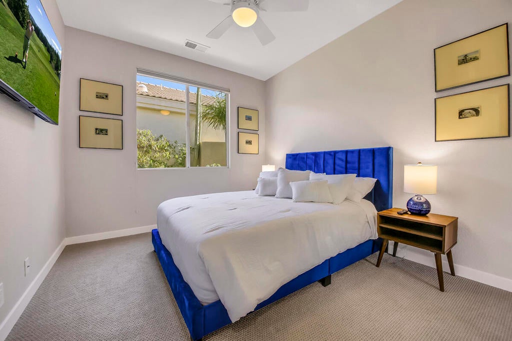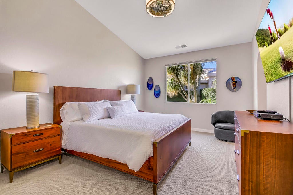 This spectacular golf course view is nothing but WOW on this beautiful vacation home. You can enjoy this breathtaking view from the living/dining area also. This 3-bed/3-bath home is recently updated with new paint and also re-decorated throughout. The third bedroom has an office so you can bring your work if you must. The backyard with a beautiful pool/spa overlooks this picture perfect golf/mountain view and is equipped with BBQ, outdoor furniture for breakfast/lunch and tea time. The good size side yard has a dining table and an umbrella for you to fully enjoy our gorgeous desert weather and outdoor dining. This popular Desert Princess C.C. has a dining area, golf course with a wide area of practice facilities, tennis courts and a gym has been renovated. Tenants to inquire about the discounts for the facility. A golf cart can be available with a tenant's insurance and a liability release. Turn-key-furnished, fully equipped ready for your arrival. $6,000/mo for 4-month, $6,500/mo for 3-month, $7,000/mo for 2-month. Summer rate (May through October) is $3,500/mo.