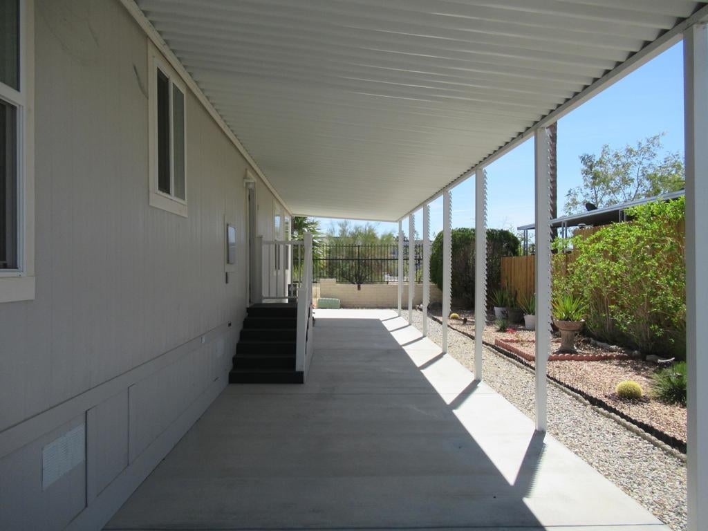2021 Champion model in the 55+ gated community of Skys Haven. Open floor plan with 2 spacious bedrooms, 2 full bathrooms, Carpet and wood laminate flooring throughout the unit. Kitchen equipped with Whirlpool appliances, granite countertops, and plenty of storage space. Ceiling fans in every room along with a fireplace in the living room. Desert landscaping for easy maintenance. The community features a clubhouse, swimming pool, and spa. Close to Palm Springs, shopping, dining and entertainment.
