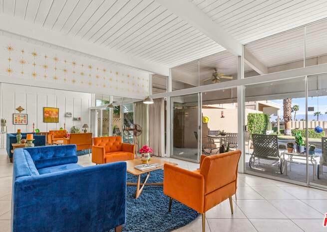 Live in iconic style in this beautifully preserved 2BD/2BA turnkey furnished unit located in the highly sought-after Sandpiper community, designed by renowned architect William Krisel. Nestled directly off El Paseo--Palm Desert's premier shopping and dining destination--this post-and-beam Mid-Century Modern home offers the perfect blend of architectural significance, comfort, and location.This special unit features one of the few original circular kitchens still intact, clerestory windows, and Krisel's signature 3D concrete block walls. Enjoy stunning views from both the front and rear patios, providing a perfect balance of privacy and community.Recent updates include a new hot water heater, upgraded electrical sub-panel, new garbage disposal, and an eye-catching MCM-style refrigerator that captures the retro aesthetic. Stylish modern wallpaper and thoughtfully curated decor add to the home's unique charm.Sandpiper offers a classic desert lifestyle with multiple community pools, lush landscaping, and mountain views--ideal for seasonal living or full-time enjoyment. Don't miss this rare opportunity to lease a truly iconic desert home in one of Palm Desert's most walkable and desirable neighborhoods.Available for seasonal or long-term lease. Contact for availability and terms.