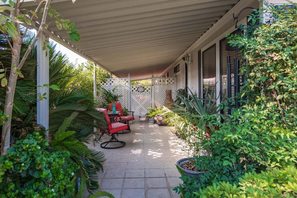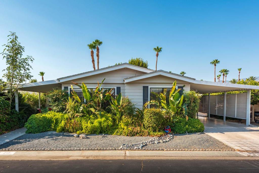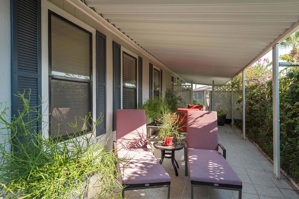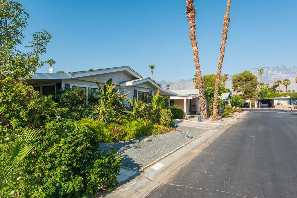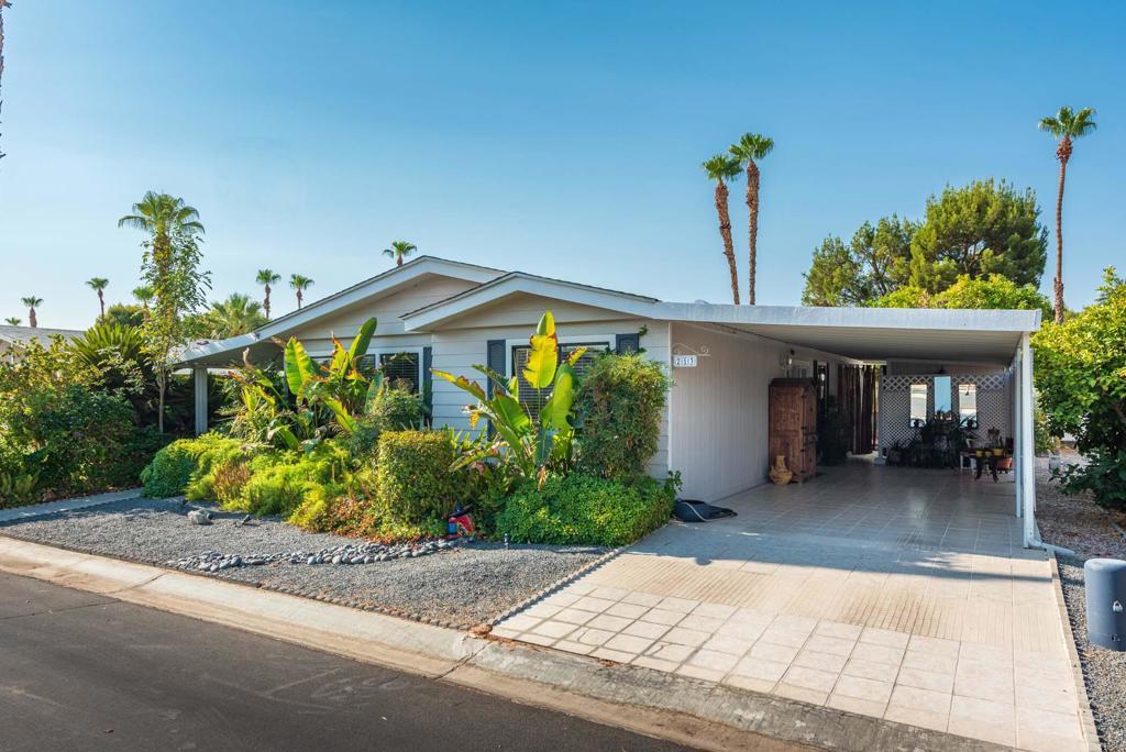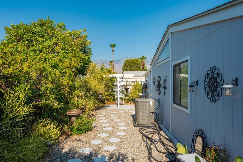 This home is truly one of a kind, as you enter through the tiled patio, you get a flavor of the inside by the Wooden Front Door, as you enter you notice the warmth of the wooden crown molding throughout the entire home. The Spanish style true wooden furniture and decorative festive pottery will have you ready for Margarita's and Relaxation. This 2BD/2BA home has 1140 sq feet. The front living room and front loaded kitchen look out onto the lush tropical landscape. This home is sold completely furnished and ready for move in. The Hallway Bath has a step in shower and is convenient to the guest bedroom. There is a full sized Washer/Dryer behind folding closet doors. The Large Primary Suite has a full wall closet and dual sinks with both soaking tub and step in shower. The Kitchen features white appliances with Stove, Refrigerator and counter-top Microwave. The Dining Room table is Solid Wood and has 6 chairs for serving dinner with guests. The upgraded Dual Pane Sliding Door with built in blinds leads you to the carport sitting area with green plants and warm decorative art. The opposite side patio is private with mature landscaping and a wonderful fountain for entertainment or afternoon reading enjoyment. There is a large walk in storage shed, with tile floor and hot & cold water. This home has a newer A/C System, and has been well maintained and updated nicely. The Canyon is centrally located in the Valley and has easy Freeway access on Gene Autry Trail or Date Palm Dr. We are near shopping, entertainment, PS Int'l Airport and 10-12 Min. to Downtown Palm Springs! The Canyon features only Full-Time Residence or Second Homes. We have wonderful park like greenbelt grounds with Tennis & Pickleball. Our clubhouse boasts an upgraded Banquet Hall, Gym, Card Room and Library along with 4 Enclosed Heated and Cooled Shuffleboard Lanes, Two pools and a Spa. You will need to qualify as a resident with 3 times space rent $950 = $2850 along with a FICO score of 750. One domestic animal of 20 lbs unless it is a Service Dog. The Canyon is the place to be for 55+ Adult Lifestyle Living. Make an OFFER Today!!
