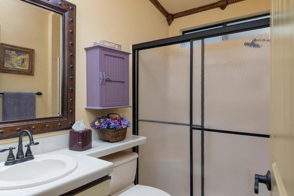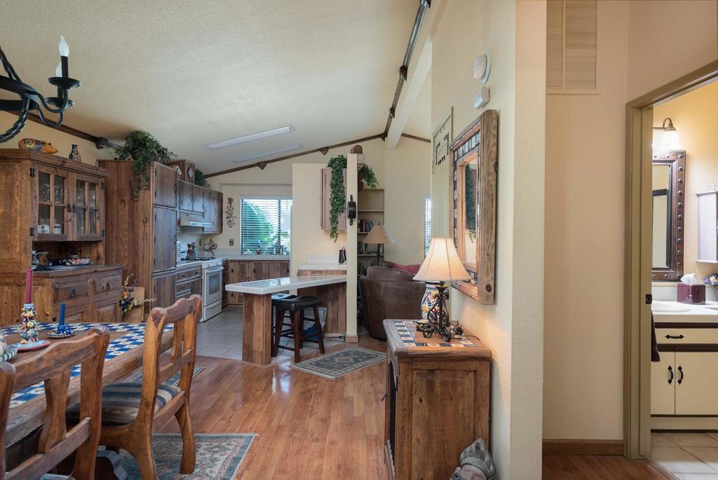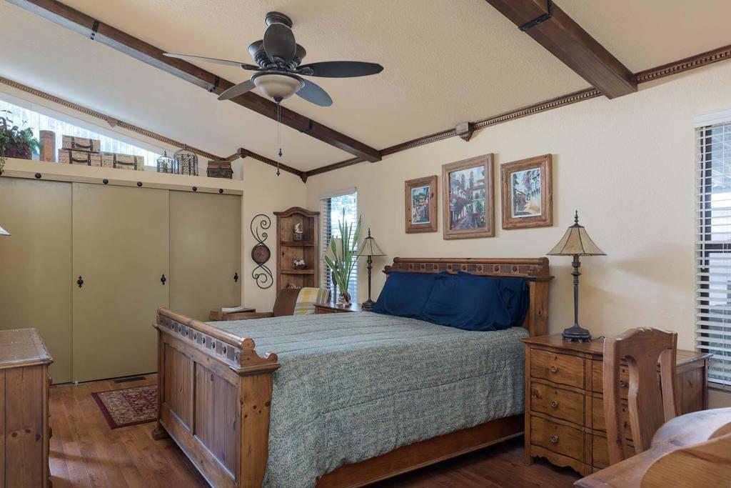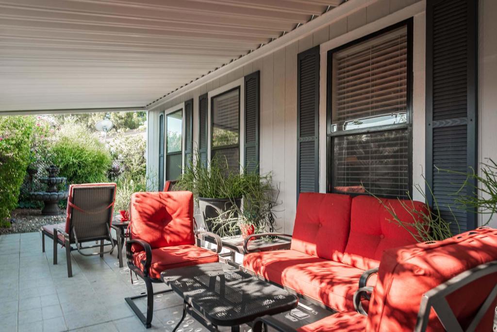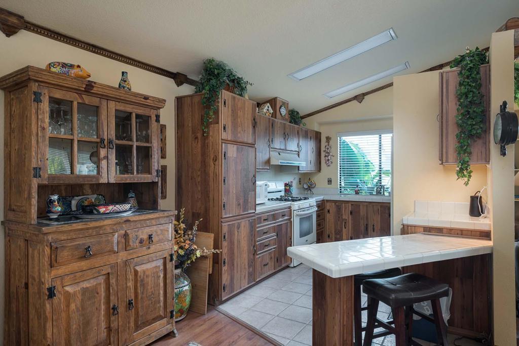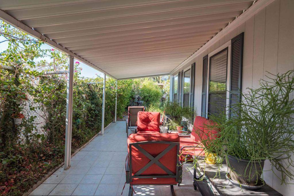 This home is truly one of a kind, as you enter through the tiled patio, you get a flavor of the inside by the Wooden Front Door, as you enter you notice the warmth of the wooden crown molding throughout the entire home. The Spanish style true wooden furniture and decorative festive pottery will have you ready for Margarita's and Relaxation. This 2BD/2BA home has 1140 sq feet. The front living room and front loaded kitchen look out onto the lush tropical landscape. This home is sold completely furnished and ready for move in. The Hallway Bath has a step in shower and is convenient to the guest bedroom. There is a full sized Washer/Dryer behind folding closet doors. The Large Primary Suite has a full wall closet and dual sinks with both soaking tub and step in shower. The Kitchen features white appliances with Stove, Refrigerator and counter-top Microwave. The Dining Room table is Solid Wood and has 6 chairs for serving dinner with guests. The upgraded Dual Pane Sliding Door with built in blinds leads you to the carport sitting area with green plants and warm decorative art. The opposite side patio is private with mature landscaping and a wonderful fountain for entertainment or afternoon reading enjoyment. There is a large walk in storage shed, with tile floor and hot & cold water. This home has a newer A/C System, and has been well maintained and updated nicely. The Canyon is centrally located in the Valley and has easy Freeway access on Gene Autry Trail or Date Palm Dr. We are near shopping, entertainment, PS Int'l Airport and 10-12 Min. to Downtown Palm Springs! The Canyon features only Full-Time Residence or Second Homes. We have wonderful park like greenbelt grounds with Tennis & Pickleball. Our clubhouse boasts an upgraded Banquet Hall, Gym, Card Room and Library along with 4 Enclosed Heated and Cooled Shuffleboard Lanes, Two pools and a Spa. You will need to qualify as a resident with 3 times space rent $950 = $2850 along with a FICO score of 750. One domestic animal of 20 lbs unless it is a Service Dog. The Canyon is the place to be for 55+ Adult Lifestyle Living. Make an OFFER Today!!