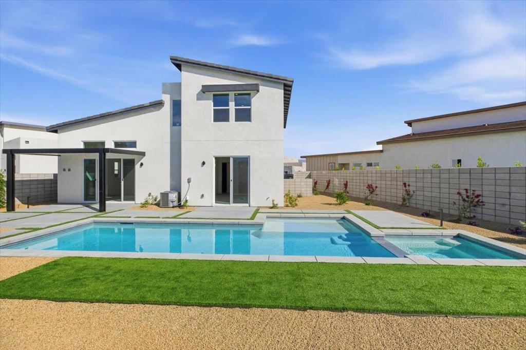 Under Construction.This Modern sleek Floorplan is 4 Bedrooms , 3 Baths, Two Story with upstairs viewing deck! Great views as far as the eye can see. South facing and with a cul-de-sac Lot with large Rear Yard. Gourmet Kitchen with LG Built-In Stainless Steel Appliances. Porcelain Tile Flooring, Carpeting ONLY in the Bedrooms, Slider in Primary Suite leading out to Landscaped Rear Yard and Swimming Pool & Spa, Extended Covered Patio, Solar is included and owned by Buyer. Property on a Detached Condo on a Condo Map. Call for your private showing today! STR Welcome.